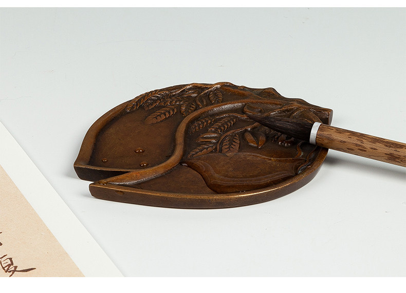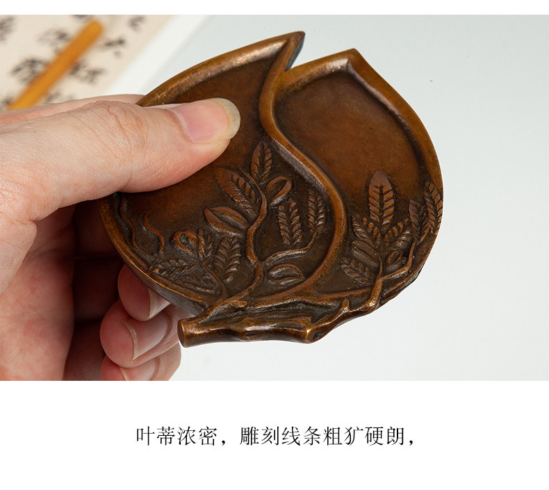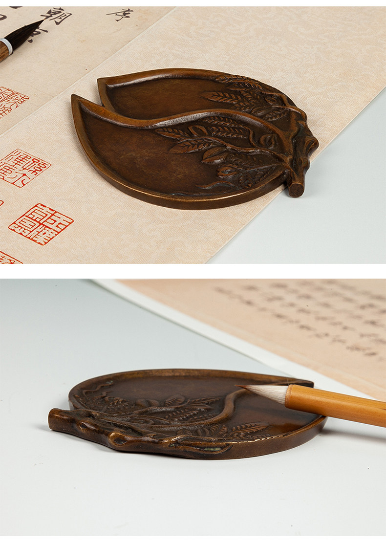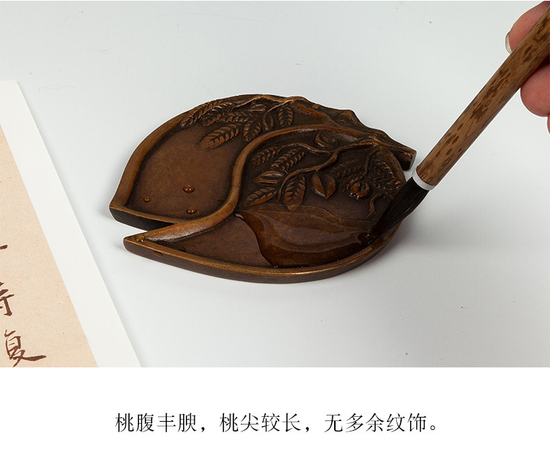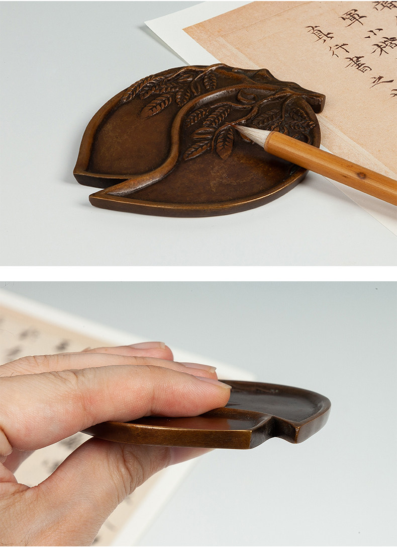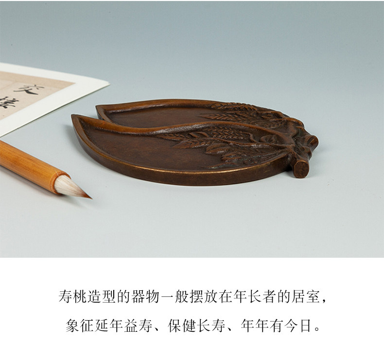 Imitation Bronze Calligraphy Tools from the Imperial Palace: Peach-Shaped Inkstone, Four Treasures of the Study, for Collection, Gift, Antique-Style Copper Ornaments, Vintage Calligraphy and Painting Supplies, Ink Dish, Inkstone