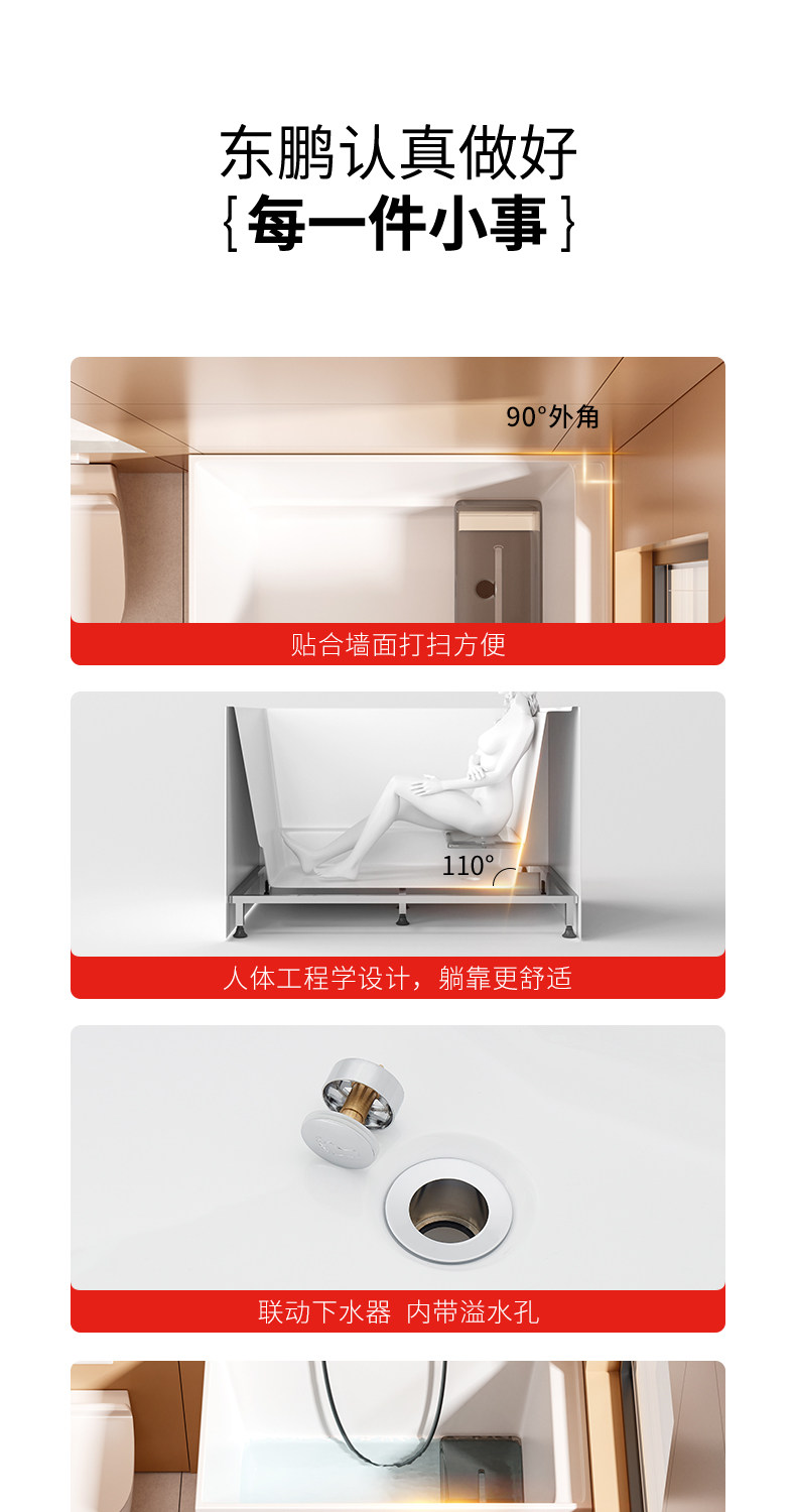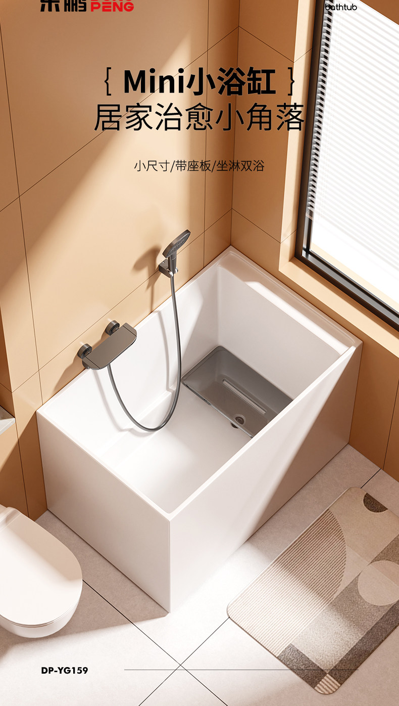 Dongpeng Constant Temperature Deep Soaking Mini Japanese-Style Small Bathtub for Small Apartments, Home Use, Sitting Massage, Acrylic Integrated Mobile