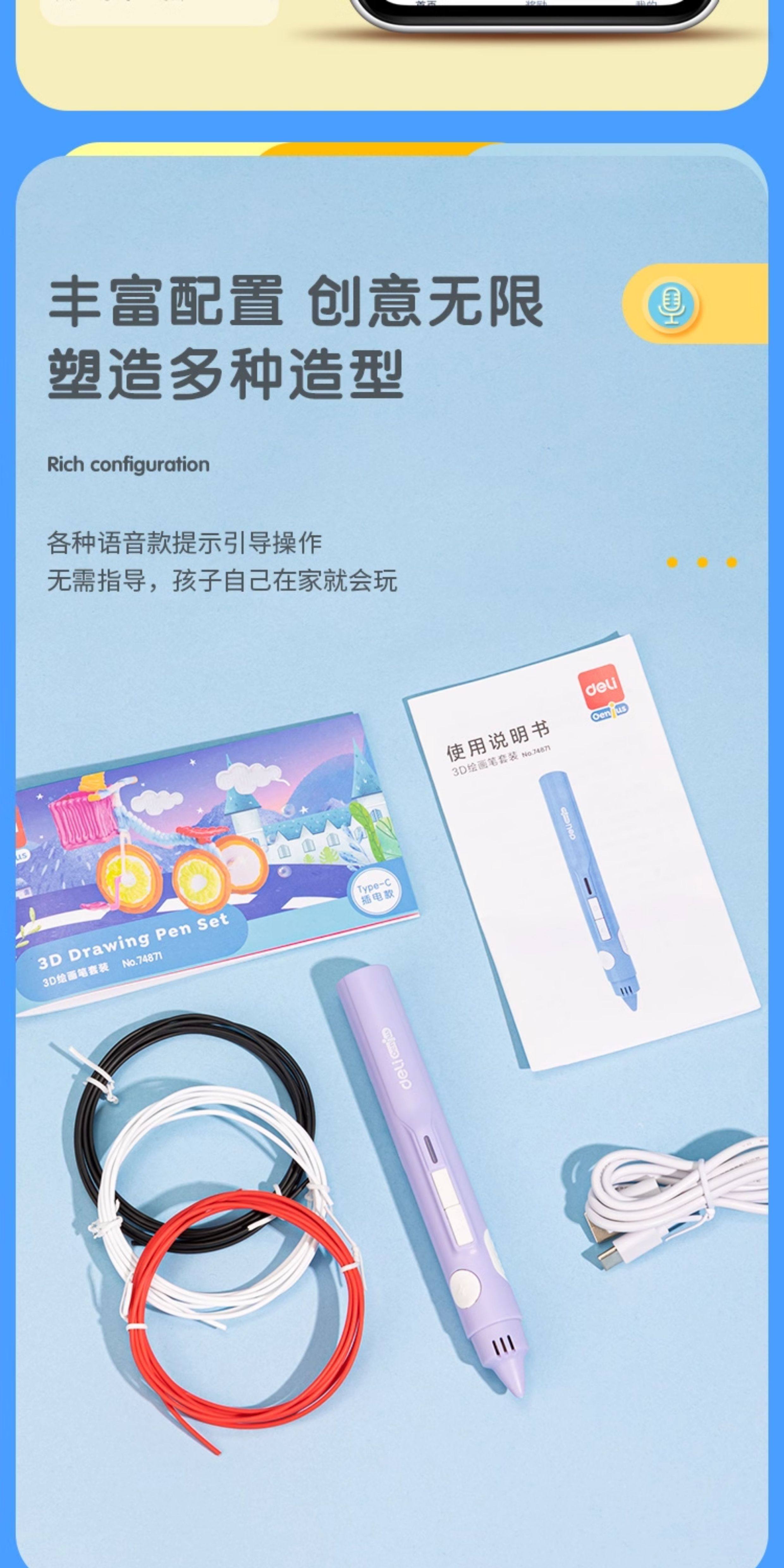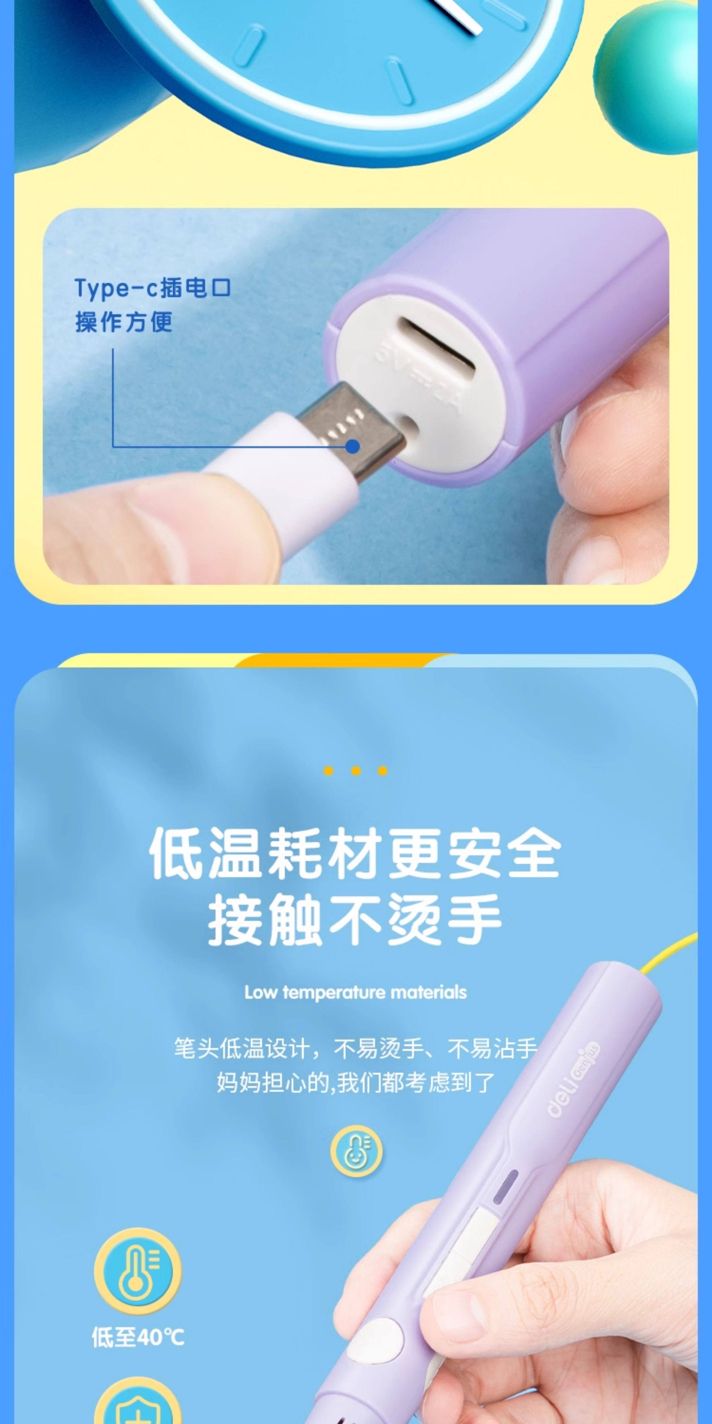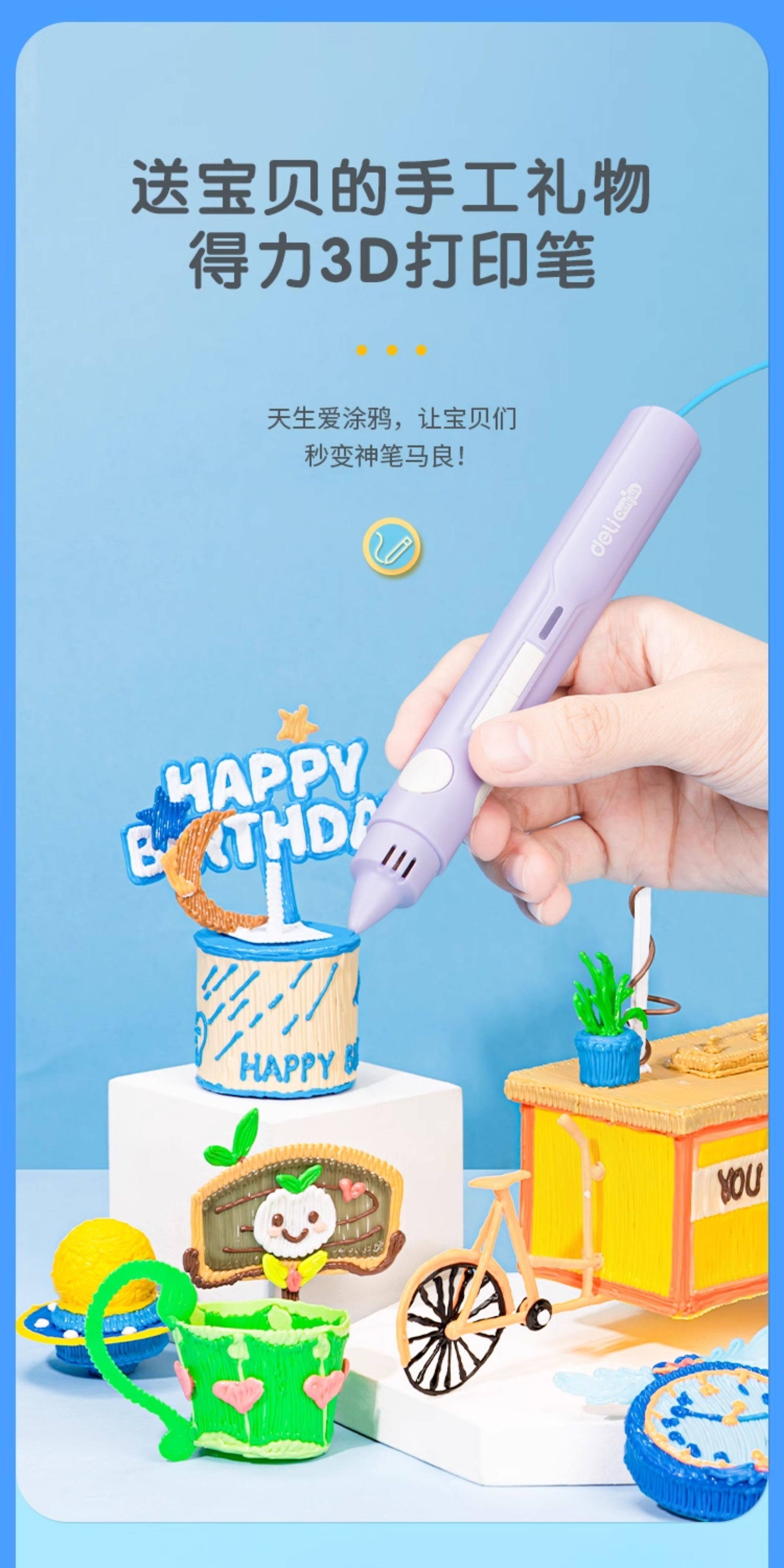 Deli 3D Printing Pen Children's Model 3D Graffiti Pen Set Children's Birthday Gift 3D Low-Temperature Model Genuine Multi-Functional Magic Pen 3D Drawing Pen First Grade Back-To-School Gift Pack