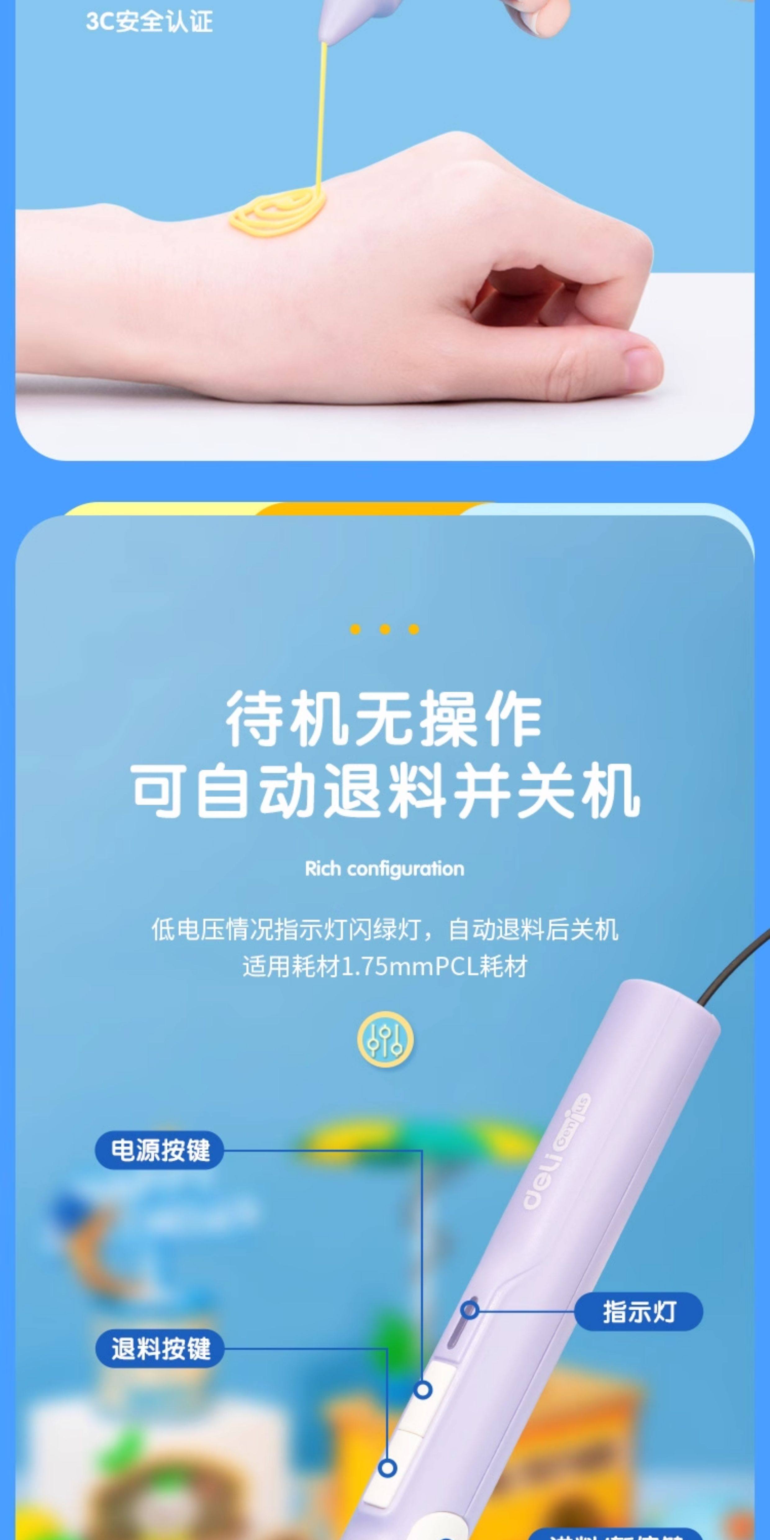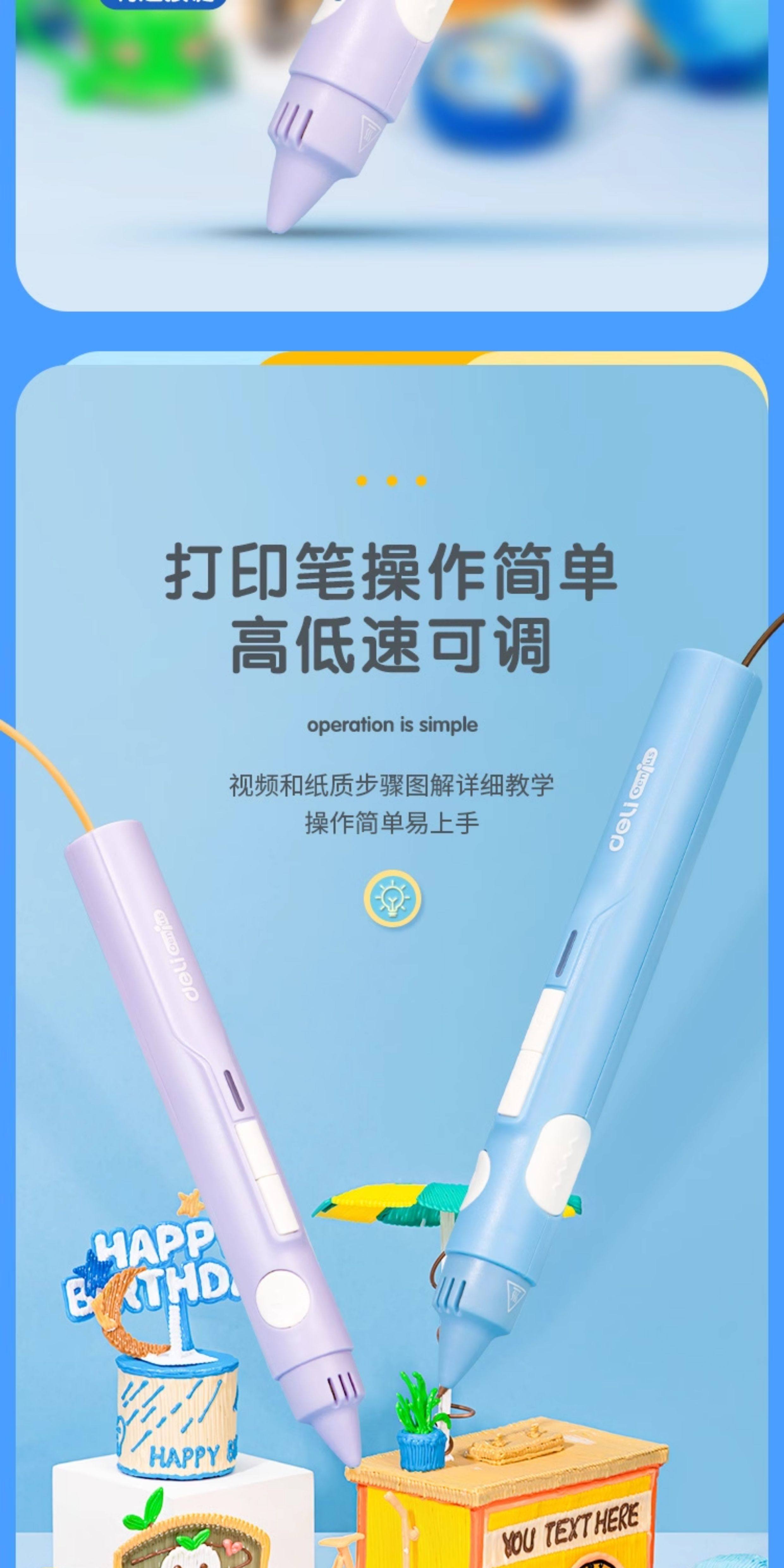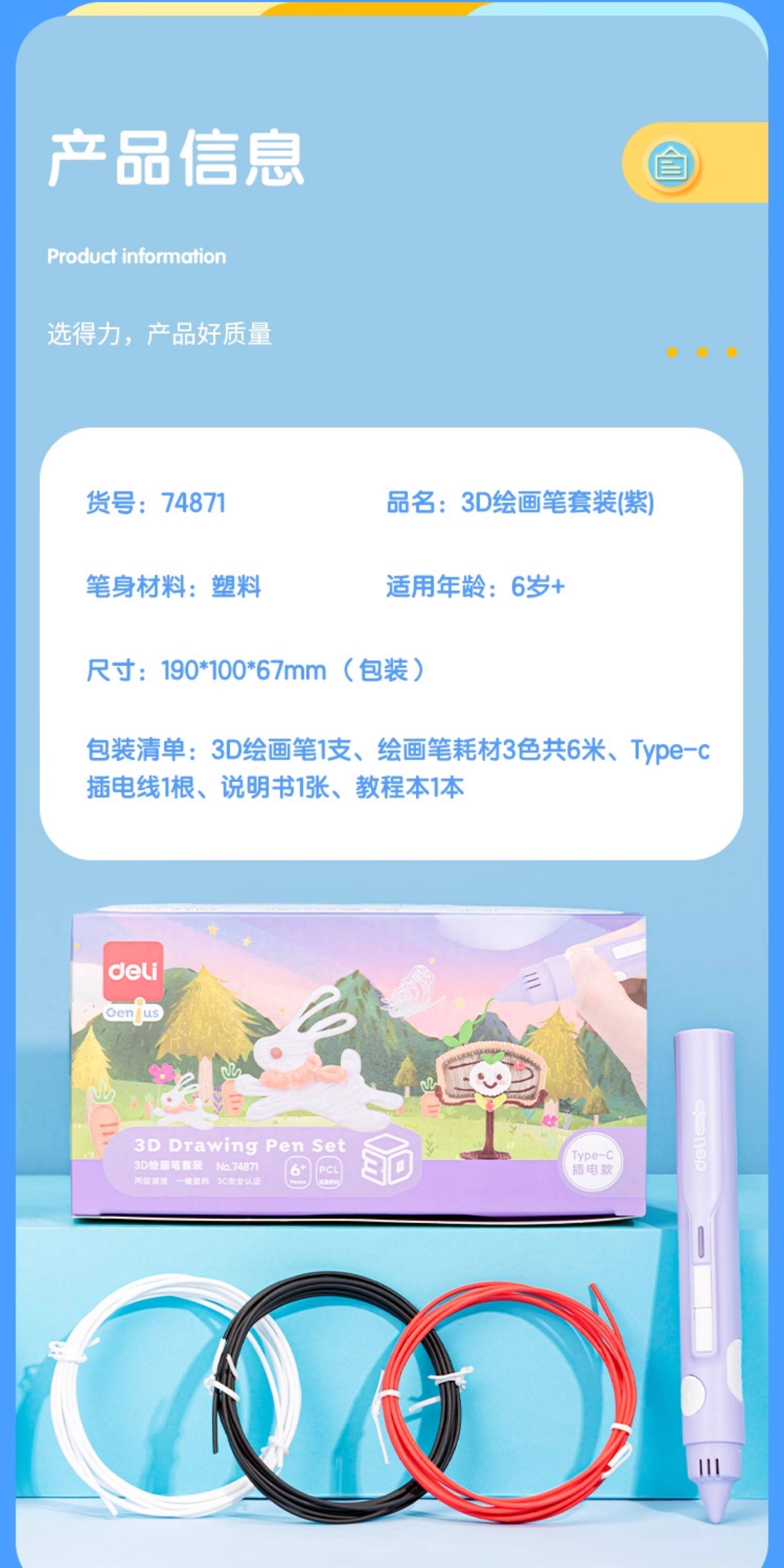 Deli 3D Printing Pen Children's Model 3D Graffiti Pen Set Children's Birthday Gift 3D Low-Temperature Model Genuine Multi-Functional Magic Pen 3D Drawing Pen First Grade Back-To-School Gift Pack