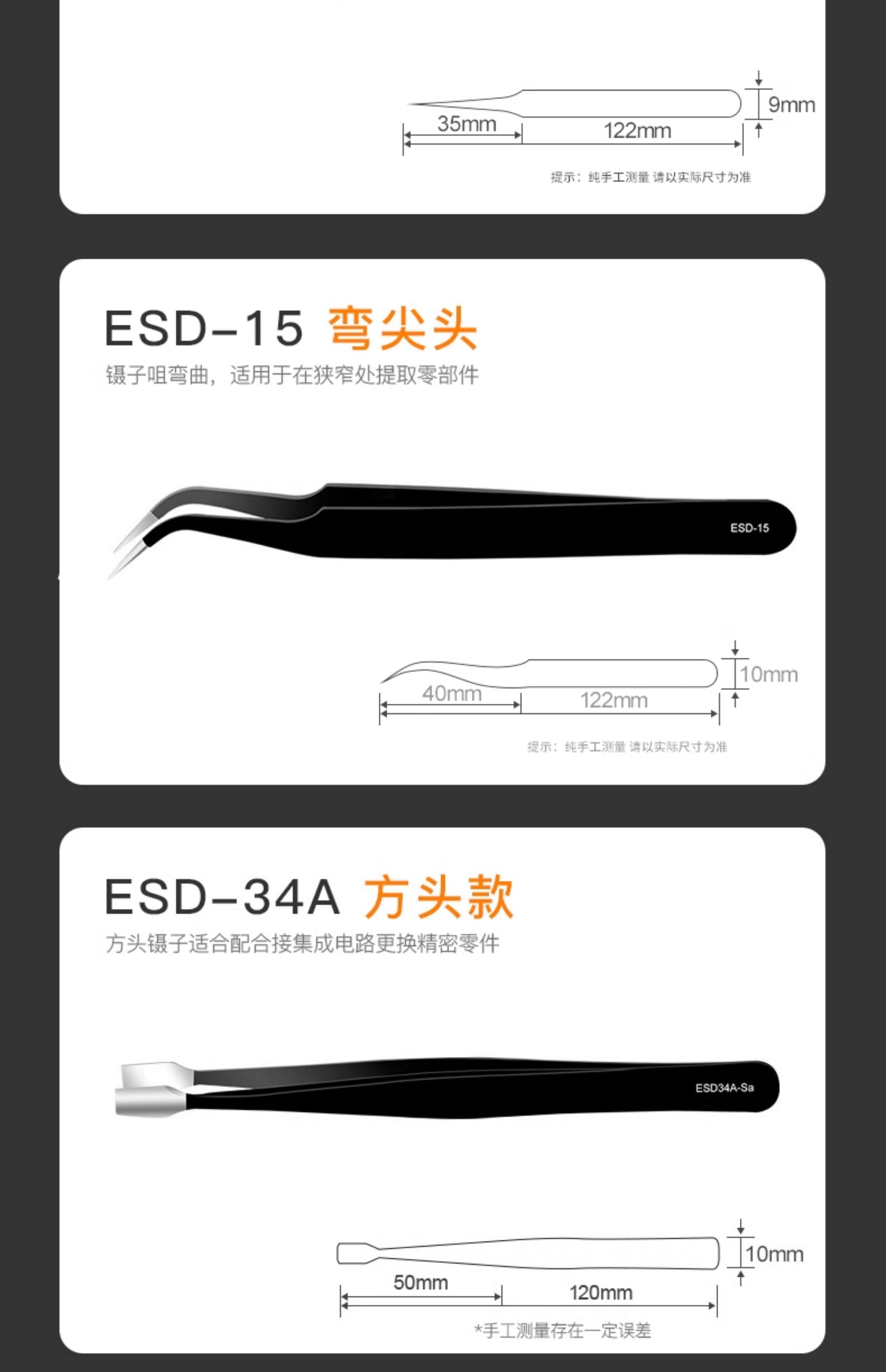 | Color Classification | Stainless Steel-Esd-14[Straight Tip],Stainless Steel-Esd-15[Curved Tip],Stainless Steel-Esd-34A[Square Toe Style],Stainless Steel-Esd-13[Round Head Style],Stainless Steel Tweezers 9-Piece Set |