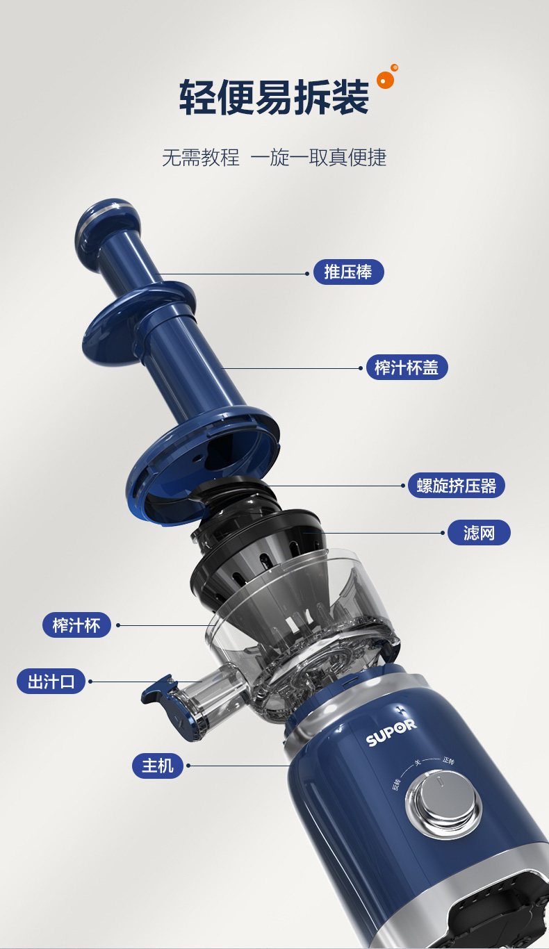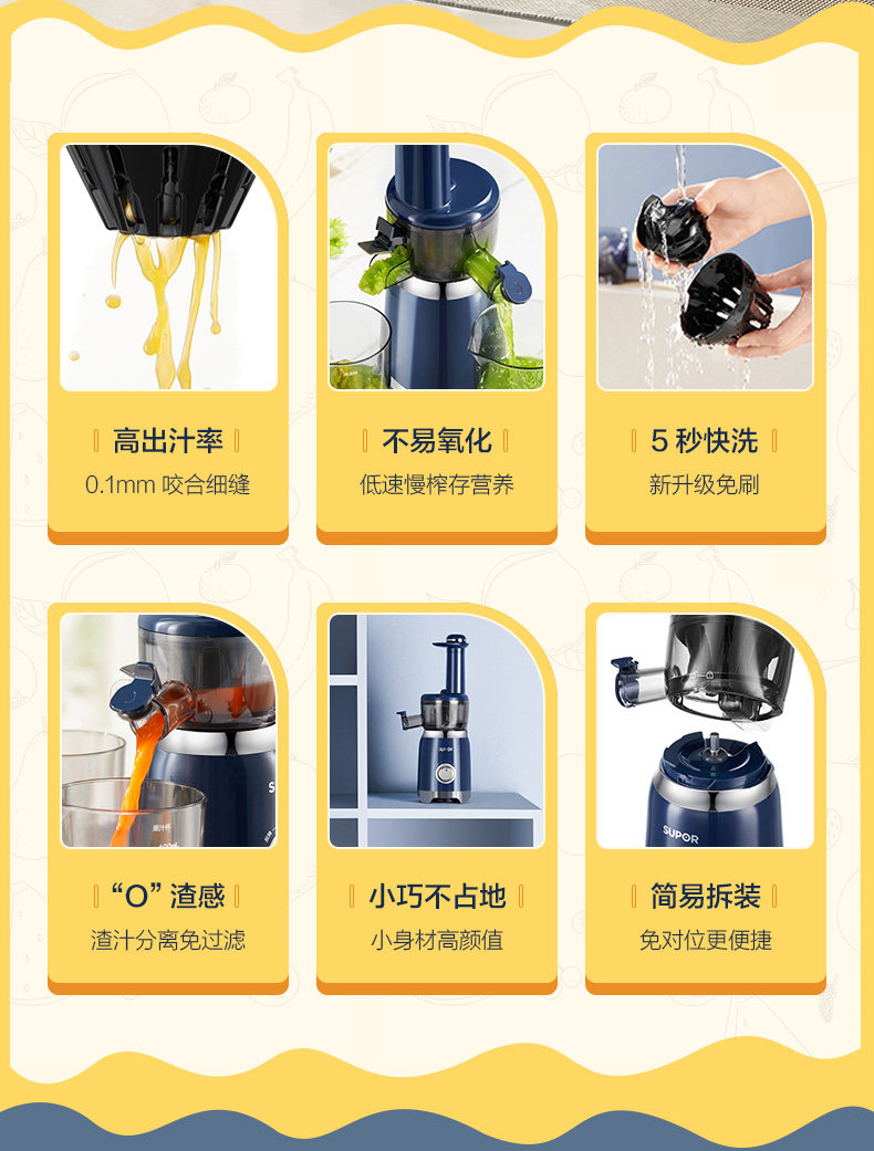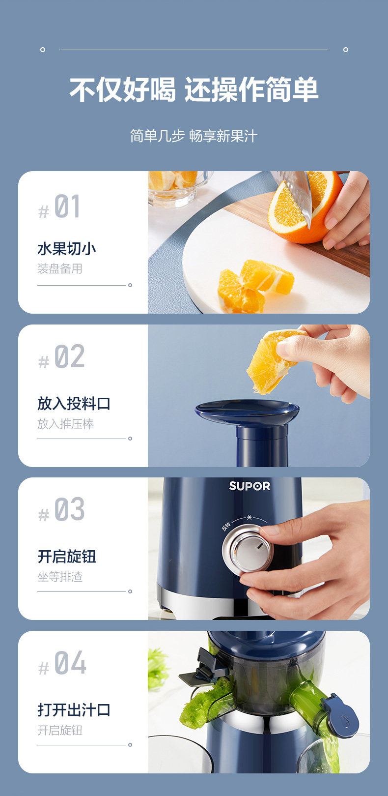 Supor Juicer with Pulp Separation, Household Juicer, Multifunctional Juicer, Small Automatic Juicer Without Filtering
