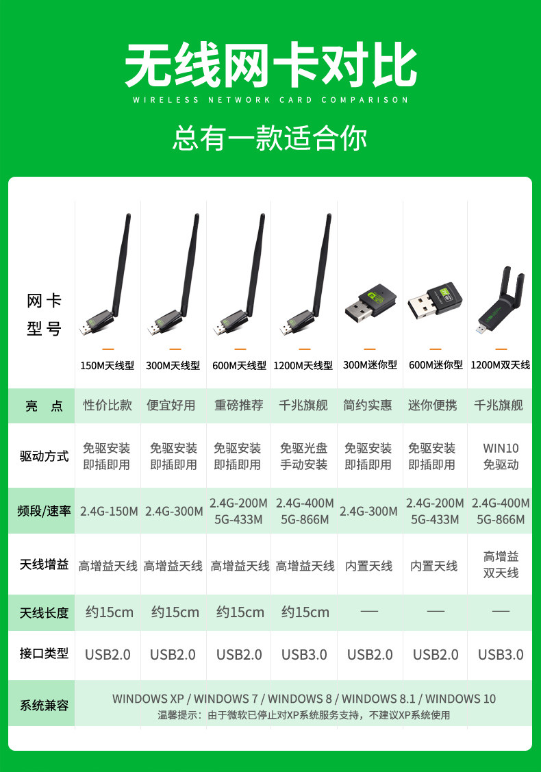 | Color Classification | 150m Mini Type[Driver-Free Version],150m High Gain Antenna[Driver-Free Version]★Strong Signal★,300m Mini Type[Driver-Free Version],300m High Gain Antenna[Driver-Free Version]★Strong Signal, Faster Transmission★,Sku_5_600M Mini Type[Driver-Free Version]★5g Dual-Band High-Speed Transmission★,600m High Gain Antenna[Driver-Free Version]★5g Dual-Band High-Speed Transmission★,1200m High Gain Antenna[Win10 Driver-Free Version]★5g Dual-Band High-Speed Transmission★,★1200m Dual Antenna[Win10 Driver-Free Version]★5g Dual-Band High-Speed Transmission★,Driverless 150m Mini - Promotional Model (Accepts Orders Only),Does Not Support Launch) |