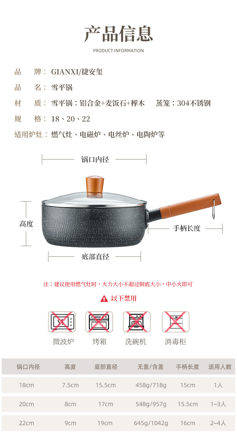 | Color Classification | [Thickened Aluminum Alloy Composite Pot Bottom]18cm Small Size Thickened,[Recommended by 2-3 People]18cm Small Size Thickened + Visible Transparent Glass Lid,[Thickened Aluminum Alloy Composite Pot Bottom]20cm Large Size Thickened,[Value for Money Recommendation]20cm Large Thickened + Visible Transparent Glass Lid,[Thickened Aluminum Alloy Composite Pot Bottom]22cm Extra Large and Thick,[Recommended for 4-6 People]22cm Extra Large Thickened + Visible Transparent Glass Lid,[Value Set]18cm Small Size Thickened + Pot Lid + 304 Stainless Steel Steamer,[Value Set]20cm Large Thickened + Pot Lid + 304 Stainless Steel Steamer,[Value Set]22cm Extra Large Thickened + Pot Lid + 304 Stainless Steel Steamer,[Exclusive Combination]18cm Classic Black + Pot Lid + Steamer + Silicone Spatula - Red,[Exclusive Combination]20cm Classic Black + Pot Lid + Steamer + Silicone Spatula - Red,[Exclusive Combination]22cm Classic Black + Pot Lid + Steamer + Silicone Spatula - Red,[Exclusive Combination]18cm Classic Black + Pot Lid + Steamer + Large Wooden Spoon Kemu Style,[Exclusive Combination]20cm Classic Black + Pot Lid + Steamer + Large Wooden Spoon Kemu Style,[Exclusive Combination]22cm Classic Black + Pot Lid + Steamer + Large Wooden Spoon Kemu Style,[Exclusive Combination]18cm Classic Black + Pot Lid + Steamer + Chicken Wing Wooden Spatula - Medium Size,[Exclusive Combination]20cm Classic Black + Pot Lid + Steamer + Chicken Wing Wooden Spatula - Medium Size,[Exclusive Combination]22cm Classic Black + Pot Lid + Steamer + Chicken Wing Wooden Spatula - Medium Size,[Exclusive Combination]22cm Classic Black + Pot Lid + Steamer + Chicken Wing Wooden Spoon - Large Size,[Thickened Aluminum Alloy Composite Pot Bottom]18cm Small Size Thickened.,[Recommended by 2-3 People]18cm Small Size Thickened + Visible Transparent Glass Lid.,[Upgraded Anti-Overflow Kit]Gold 18cm Small Thickened + Pot Lid + 304 Stainless Steel Steamer |
