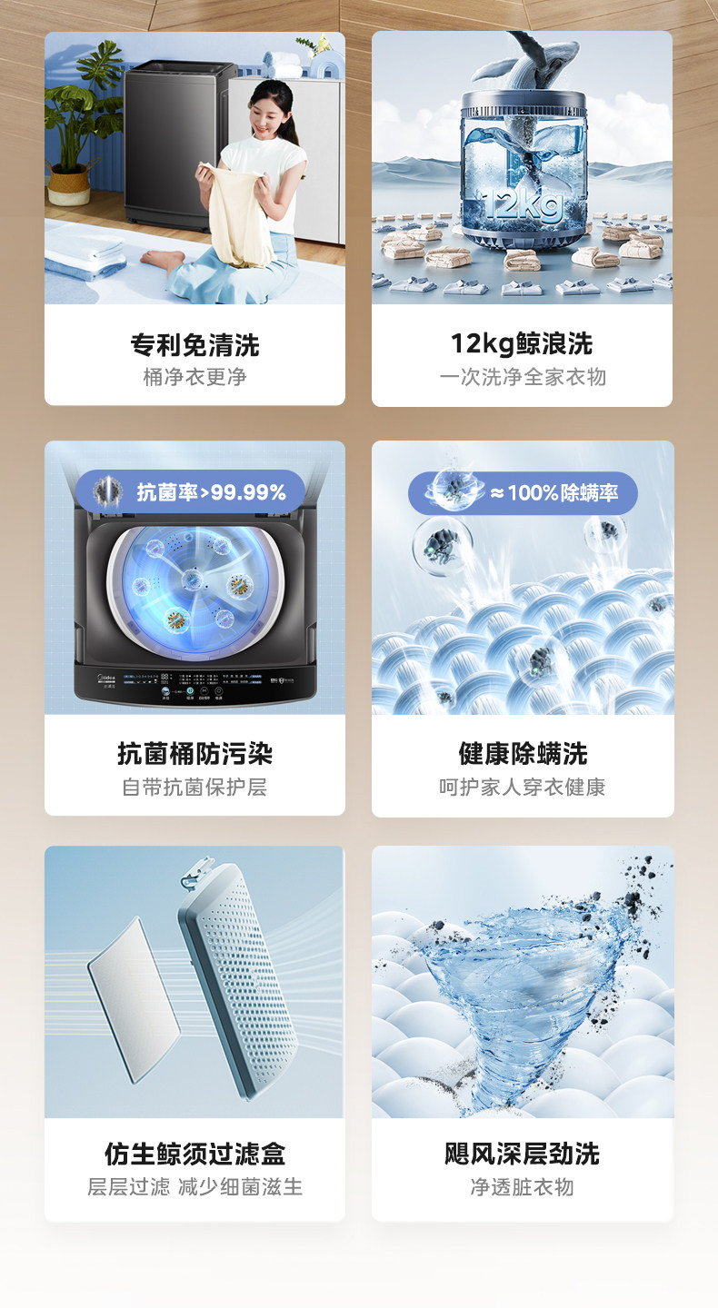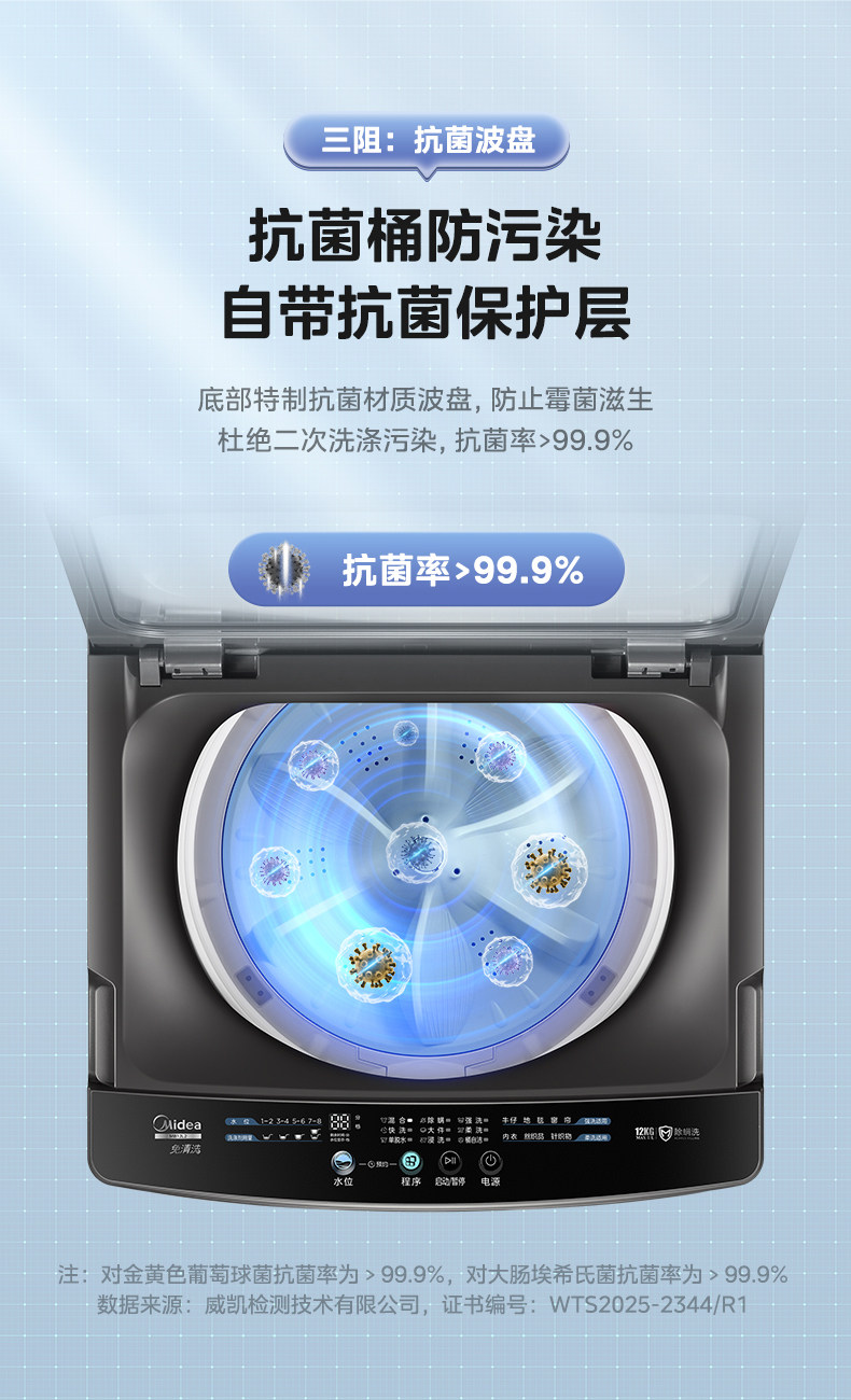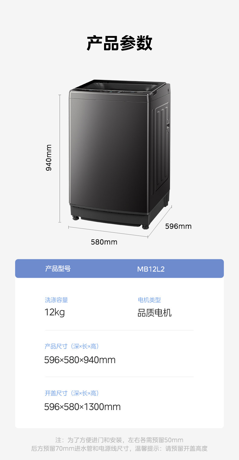 [Universal Subsidy] Midea 12/10/9/8kg Large-Capacity Pulsator Washing Machine for Home and Dormitory Use, Fully Automatic L2