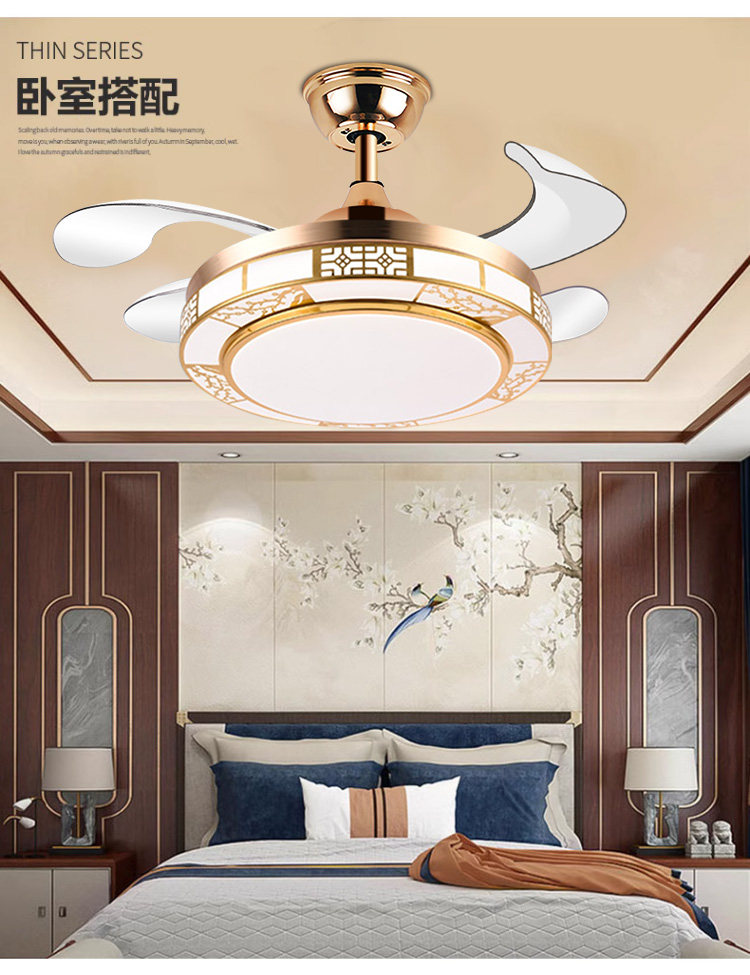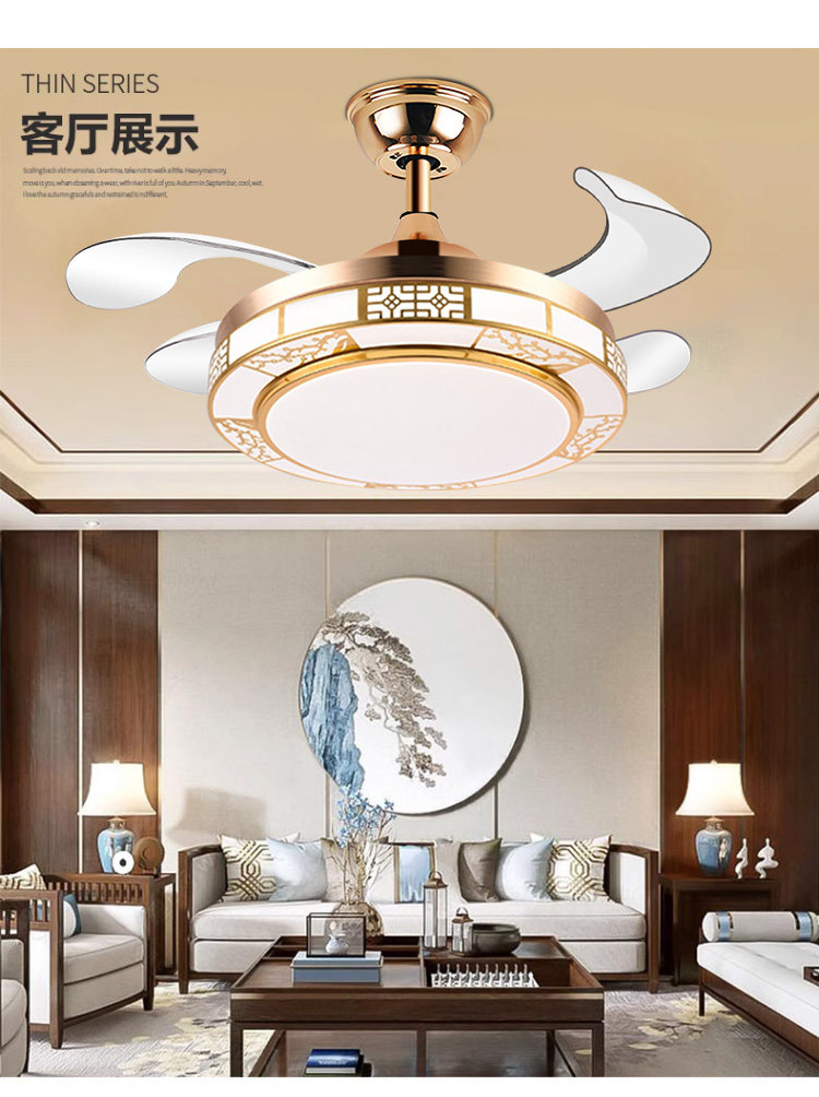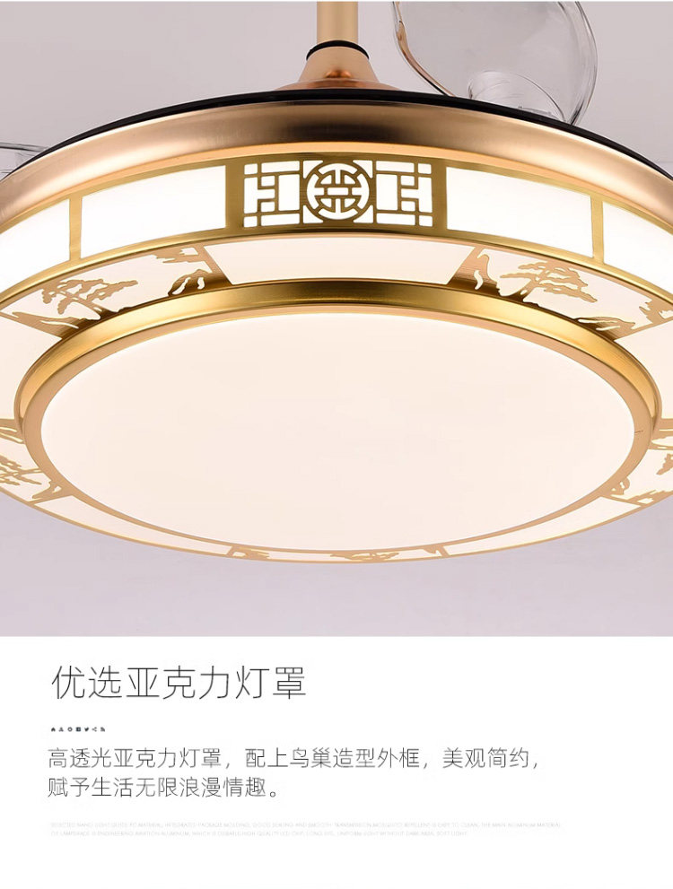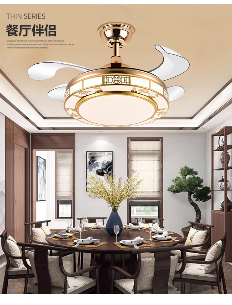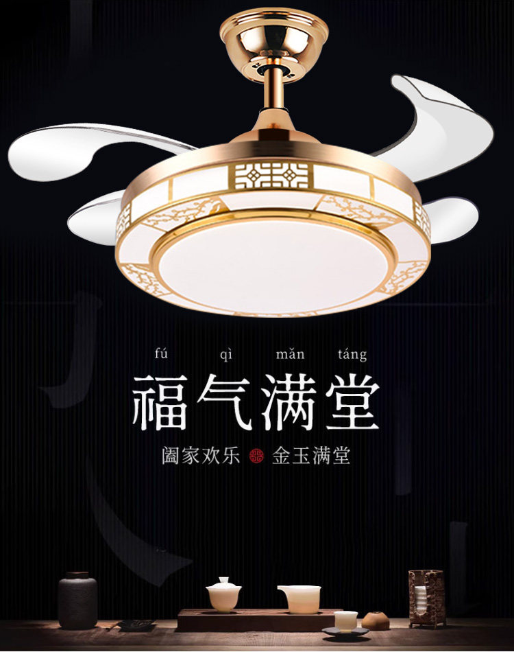 Chigo New Chinese Style Invisible Fan Light Antique Living Room Dining Room Bedroom Tmall Genie Smart Home Electric Fan Chandelier