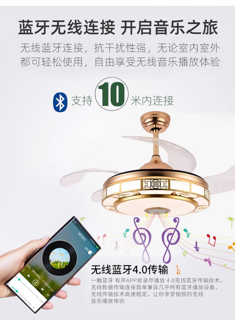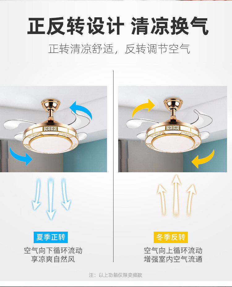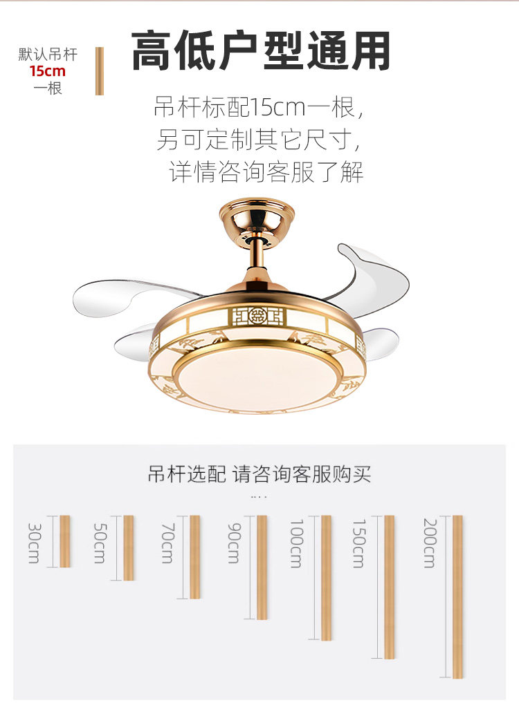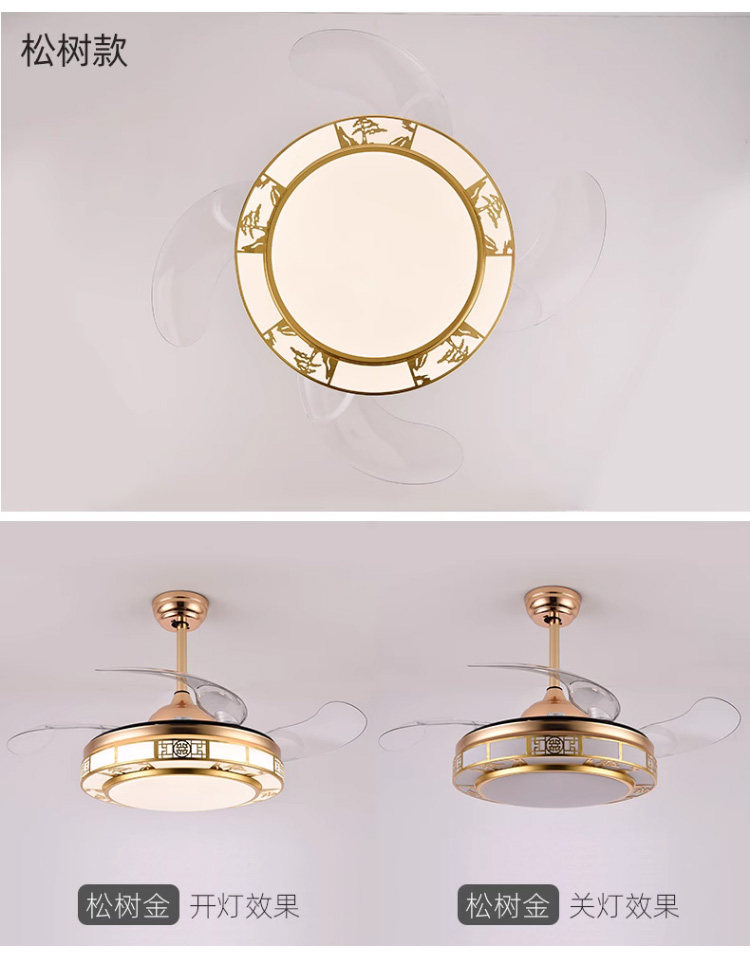 Chigo New Chinese Style Invisible Fan Light Antique Living Room Dining Room Bedroom Tmall Genie Smart Home Electric Fan Chandelier