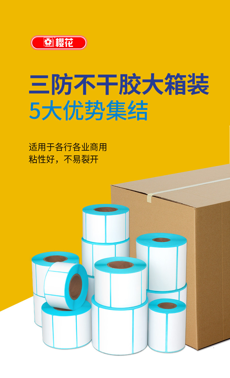 Sakura Three-Proof Thermal Label Paper Printing Paper Full Box Self-Adhesive 40X30 60X40 80X100 Supermarket Weighing Paper Price Electronic Scale Barcode E-Mail Express Sticker Self-Adhesive Barcode Sticker