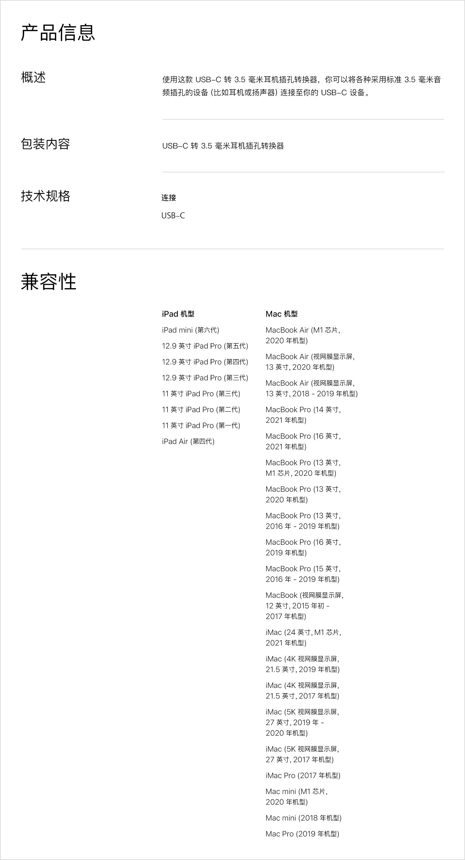 APPLE Original Headphone Adapter Typec Conversion Head Ipadpro11/12.9 Tablet Air4/5Mini6 Usb-C to 3.5mm Headphone Jack Converter U Shield Adapter Cable