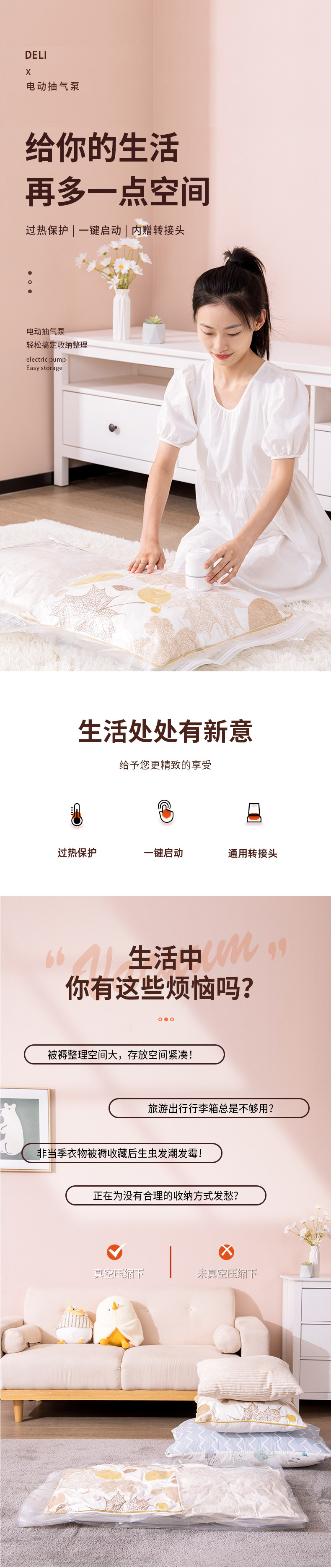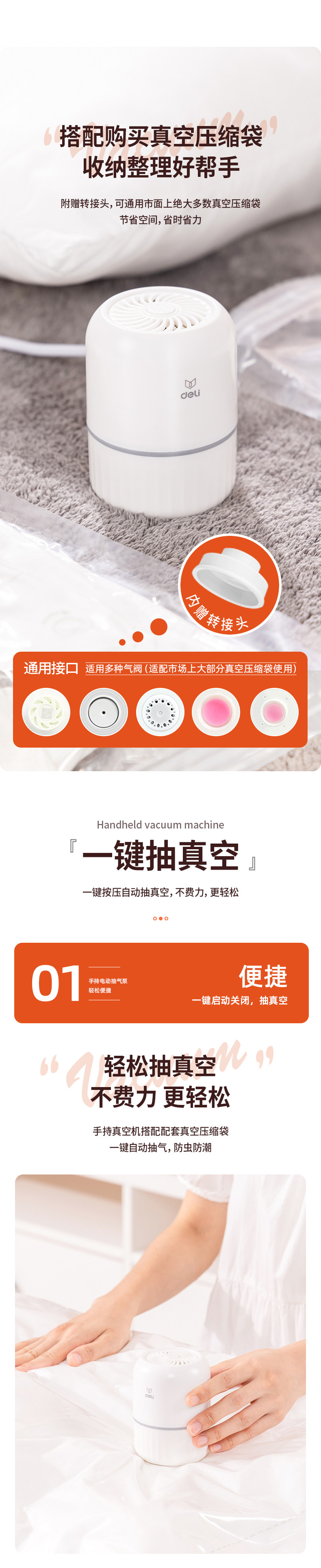 Deli Compression Bag Electric Air Pump Universal Household Clothes Quilt Storage Bag Electric Pump Hand Vacuum Machine Small
