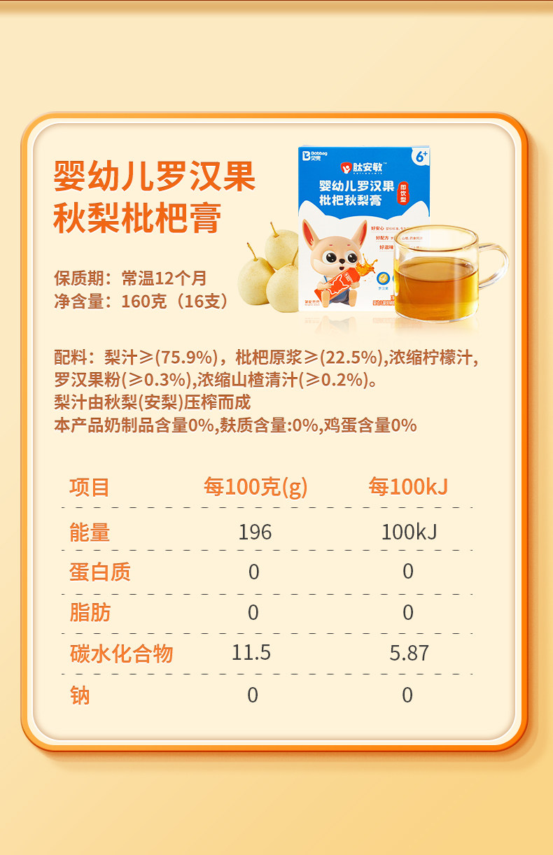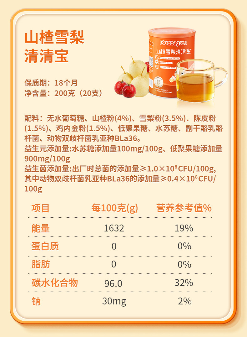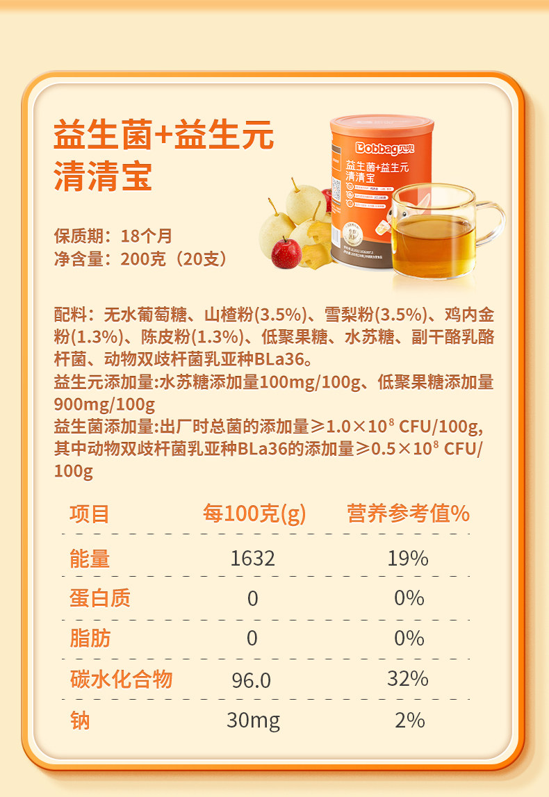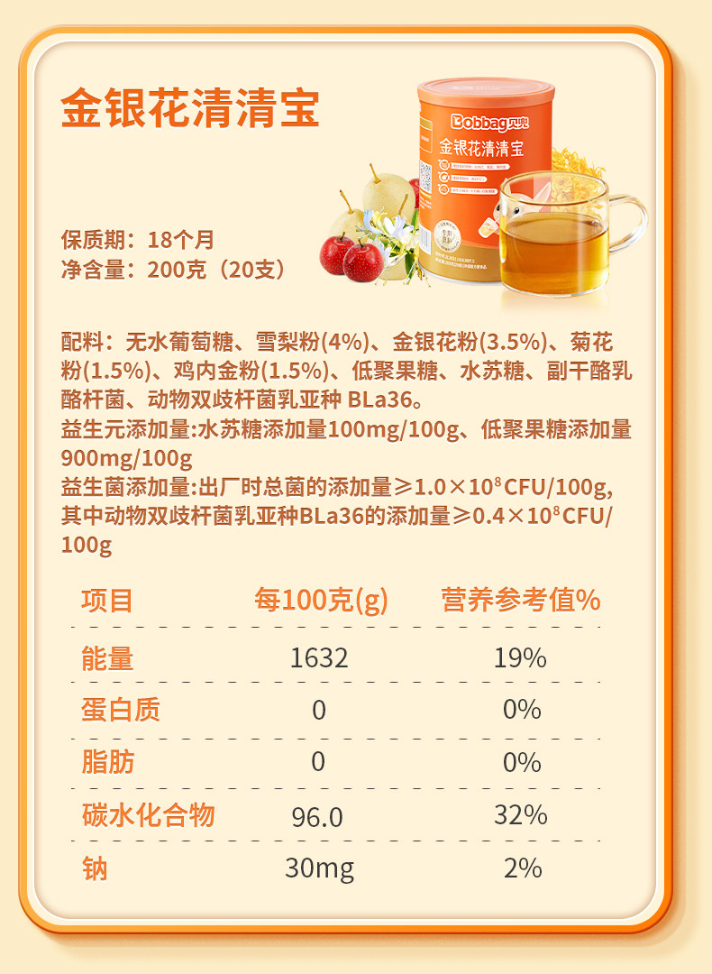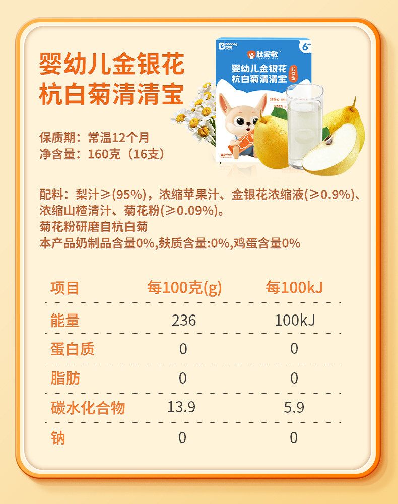 | Taste | Hawthorn Flavor,Honeysuckle Flavor,Probiotics + Prebiotics Qingqingbao,Chicken Gizzard, Tangerine Peel and Four God Soup Powder,【Infant Standard 6 Months+】 Boxed Honeysuckle & Chrysanthemum Flavor (Ready-To-Drink),【Infant Standard 6 Months+】Boxed Autumn Pear Syrup (Ready-To-Drink),【Canned 22 Pieces】Hawthorn and Tangerine Peel Kaibibao,Honeysuckle Qingqingbao Small Box 10g*10,【Infant Standard】 Ready-To-Drink Honeysuckle Qingqingbao Small Box 10g*10,Probiotics + Prebiotics Qingqingbao Small Box 10g*10 |