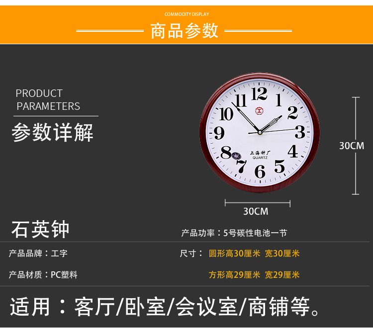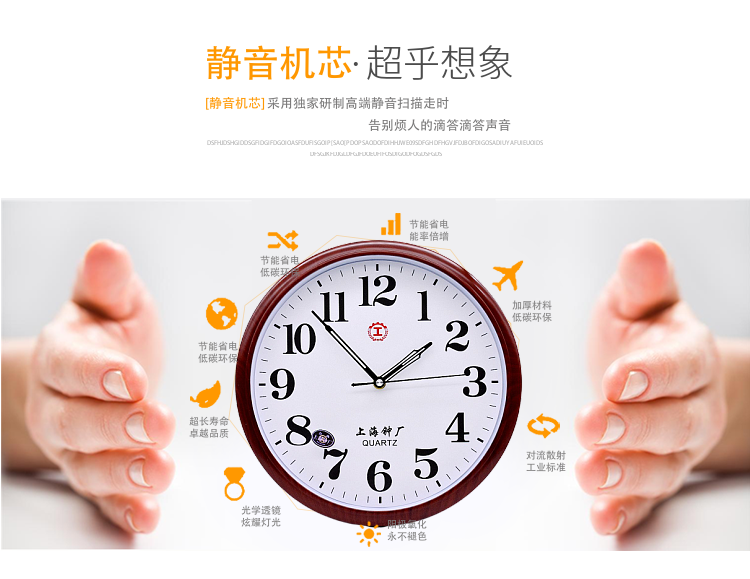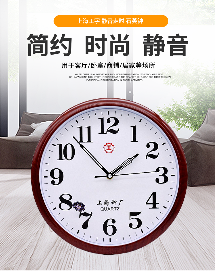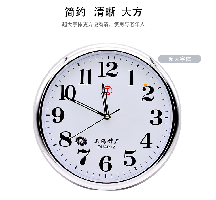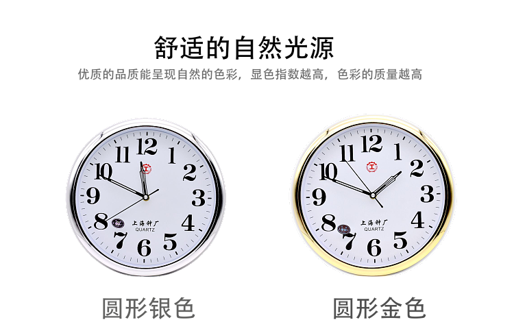 Shanghai I-Shaped Round Clock Silent Energy-Saving Wall Clock Stylish Simple Large Font Quartz Clock for Living Room Bedroom Classroom