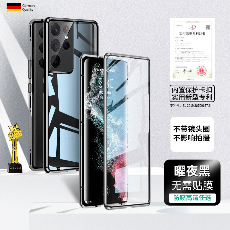S22 Ultra Full-Edge Anti-Peeping Phone Case, S21+ Double-Sided Glass, S23U Anti-Drop, 20Fe Compatible, Samsung Galaxy Cooling Magnetic Protective Case, Transparent Supreme Edition, New Trendy Model for Men and Women