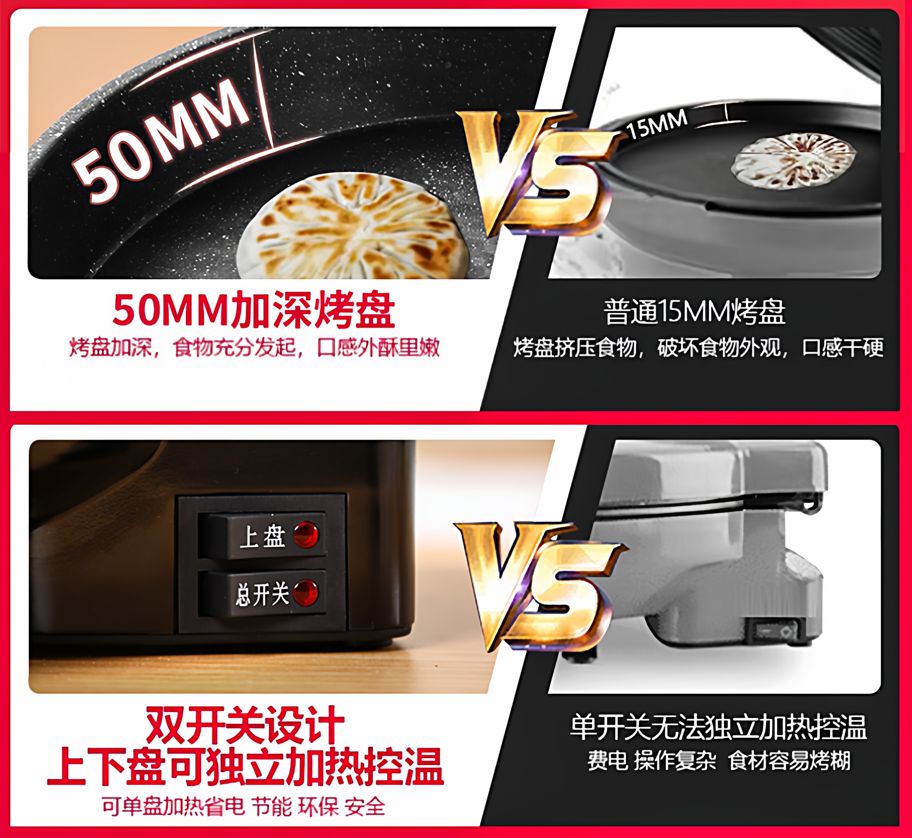 | Electric Baking Pan Heating Surface | Double-Sided Heating |