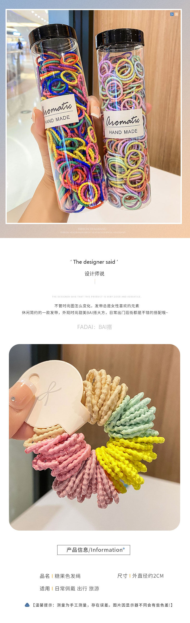 300 Pieces of Canned Children's Hair Ties That Do Not Damage Hair, Small Size for Tying Small Ponytails, Thumb-Sized Hair Bands, Hair Accessories for Girls