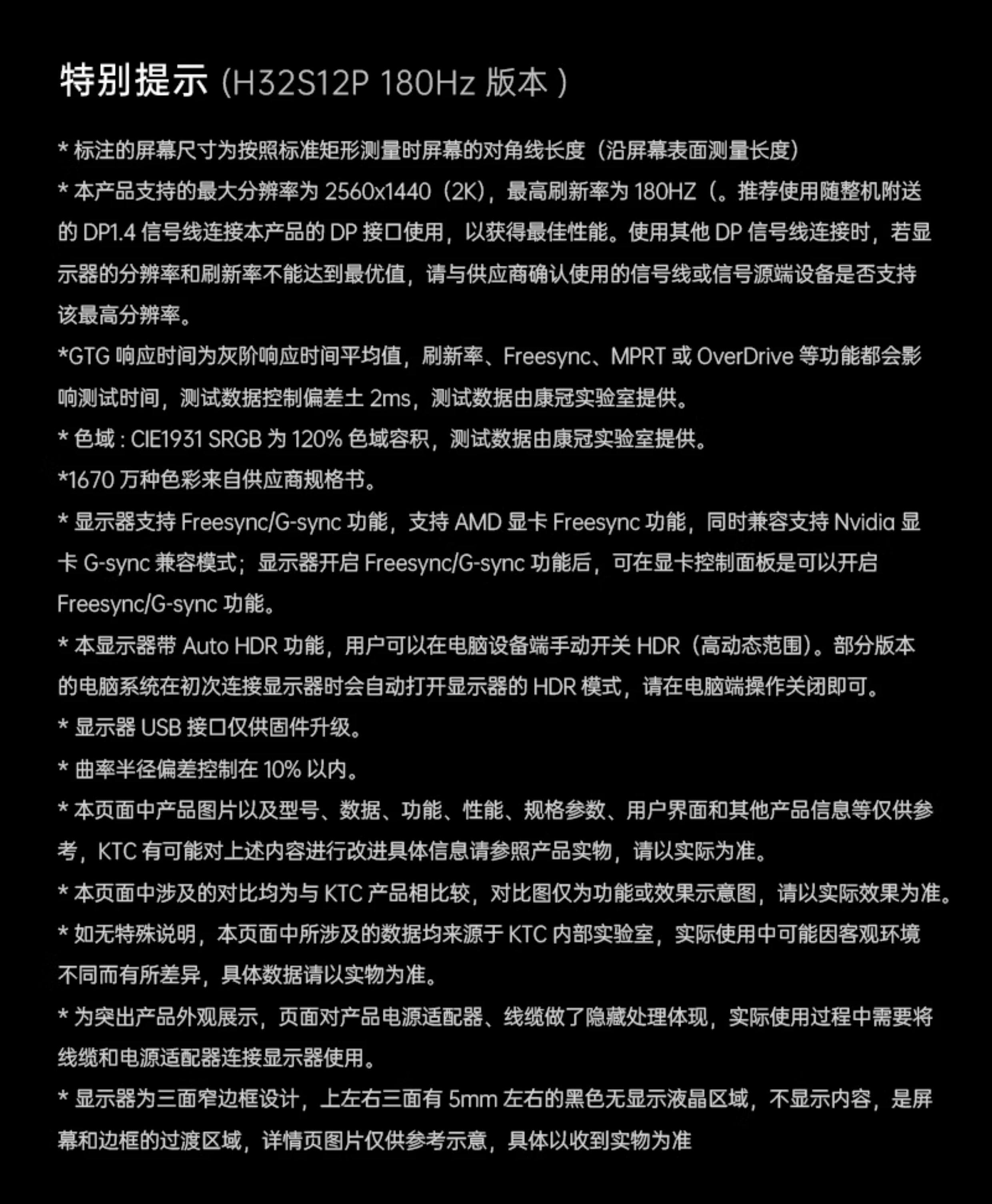 Ktc 32-Inch 2K Monitor 180Hz High Refresh Rate Hva Desktop Eye Protection Computer Gaming Curved Screen H32S12P