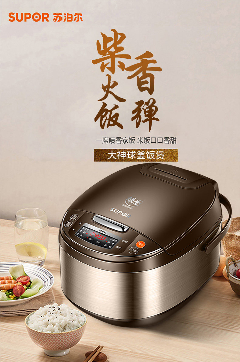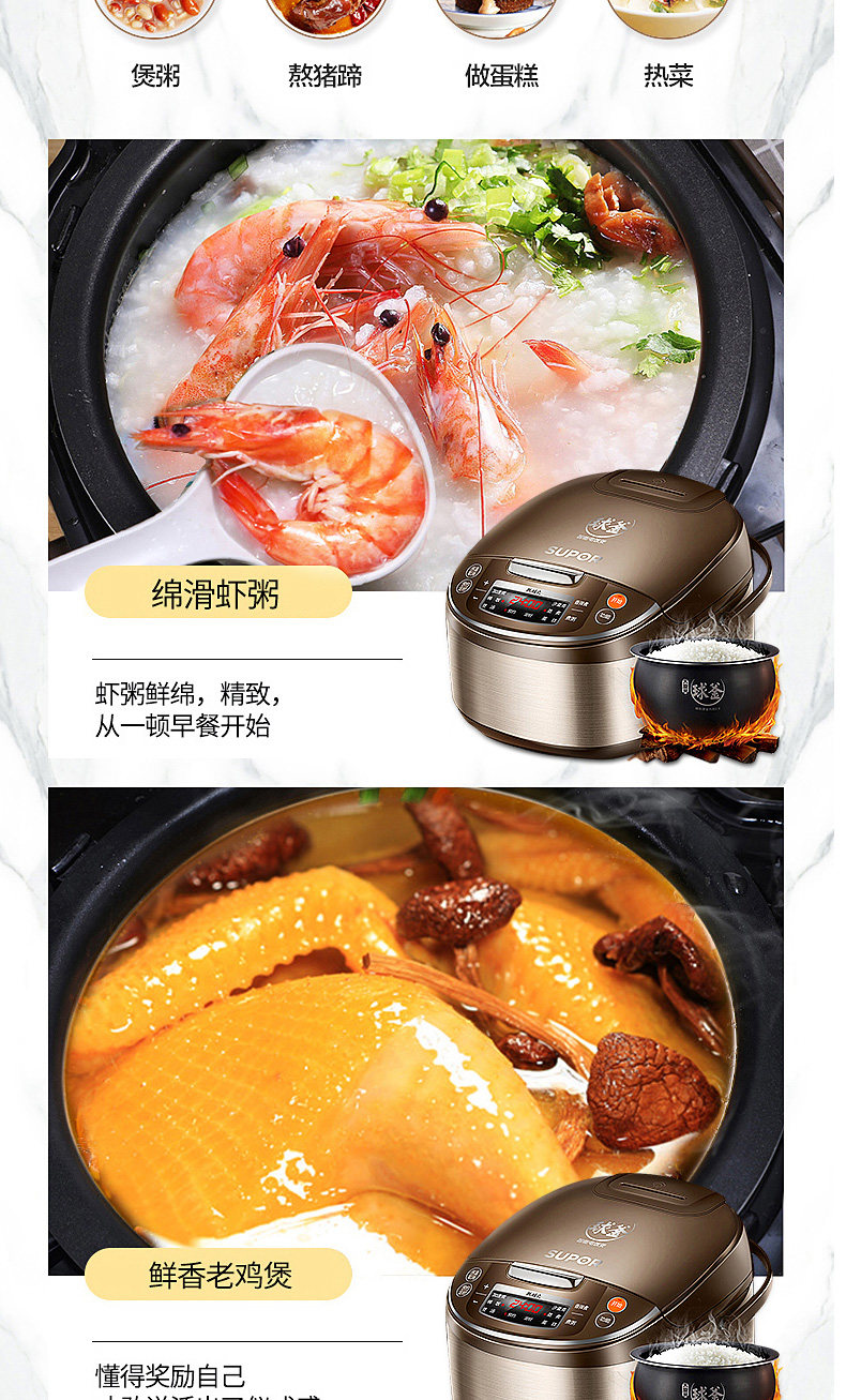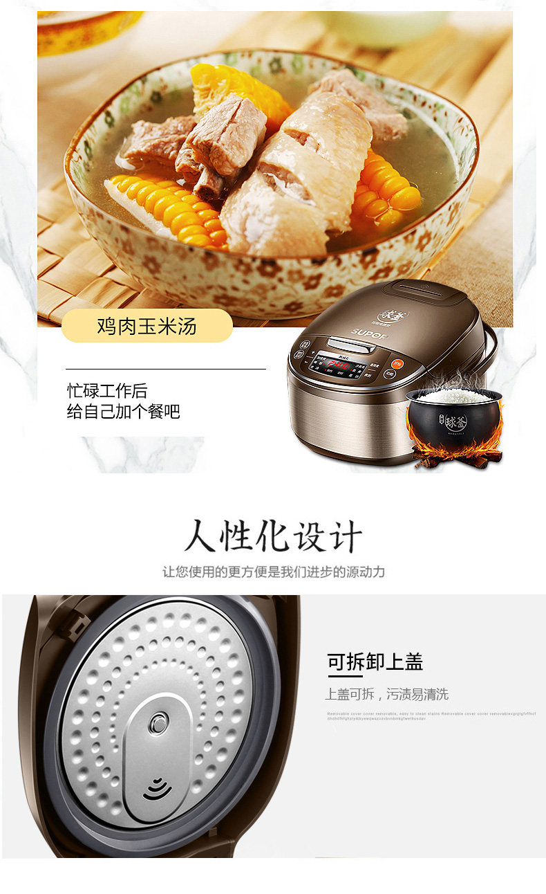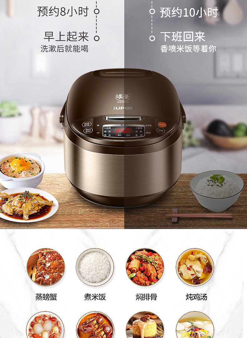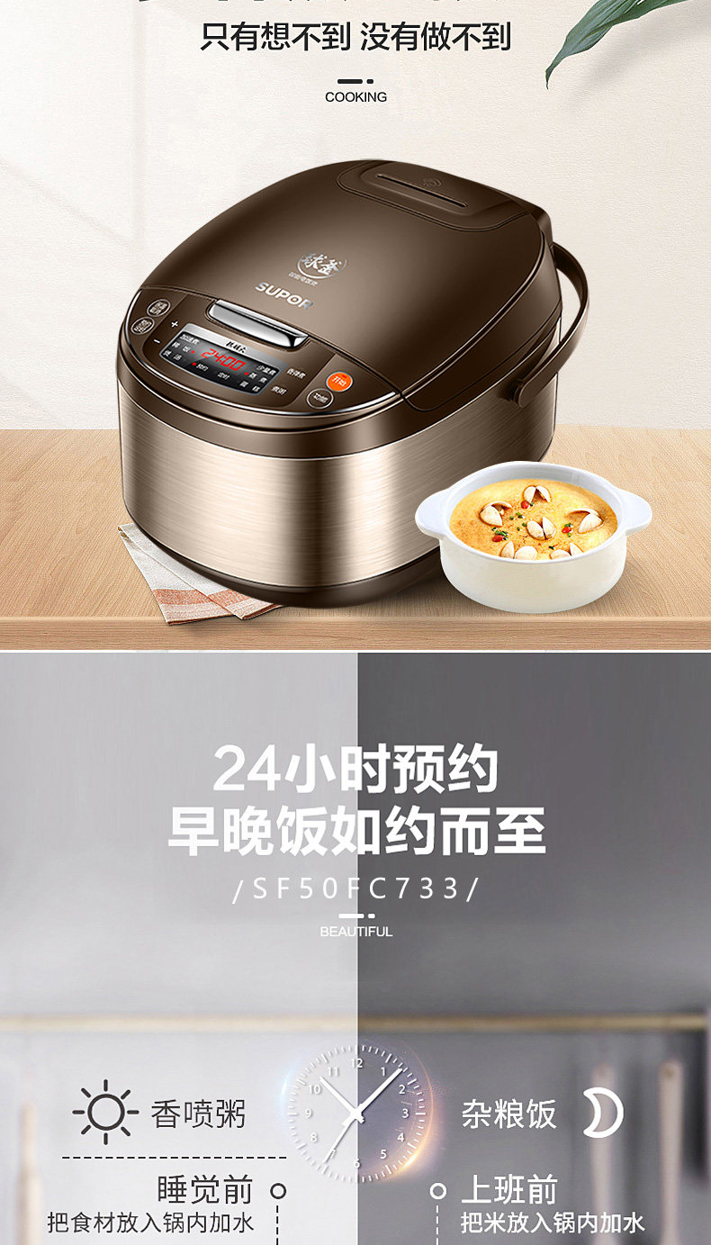 Supor Rice Cooker, Smart Home Multifunctional 5L Large Capacity Rice Cooker, Firewood Rice, for 5-6-8 People, Official