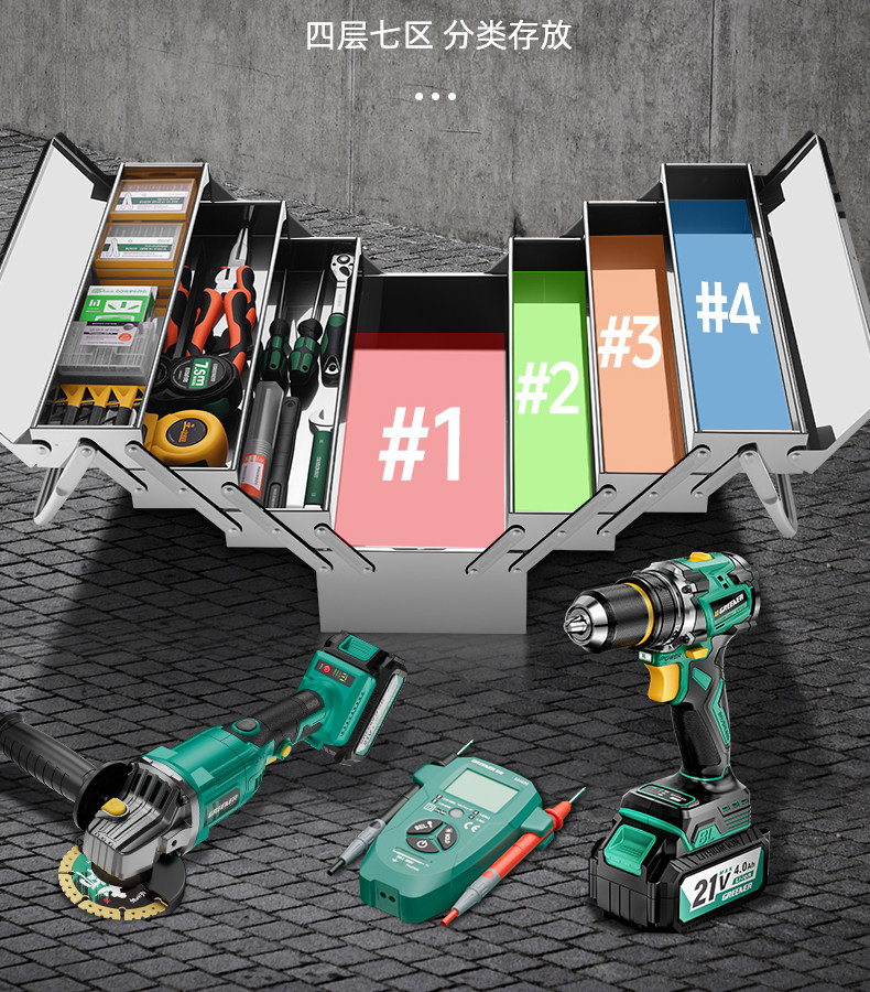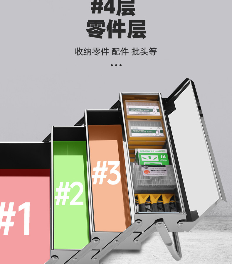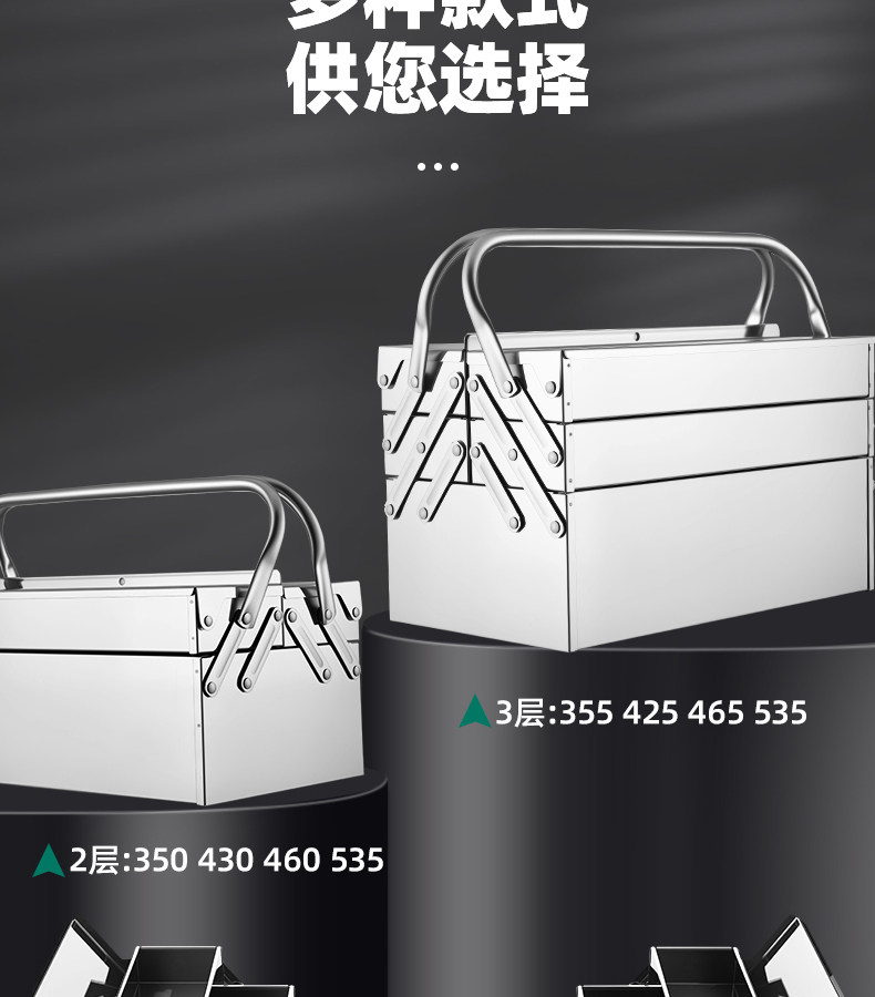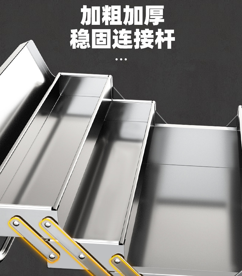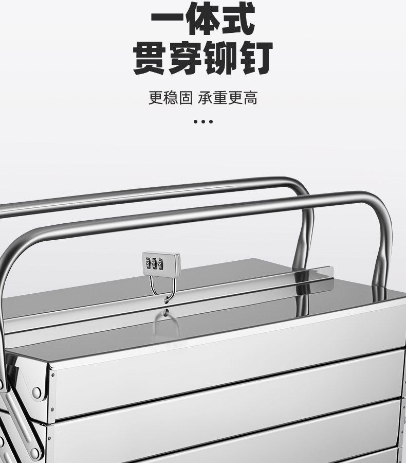 Green Forest Stainless Steel Tool Box, Three-Layer Foldable, Household Thickened Portable Hardware Industrial-Grade Storage Box, Multi-Functional