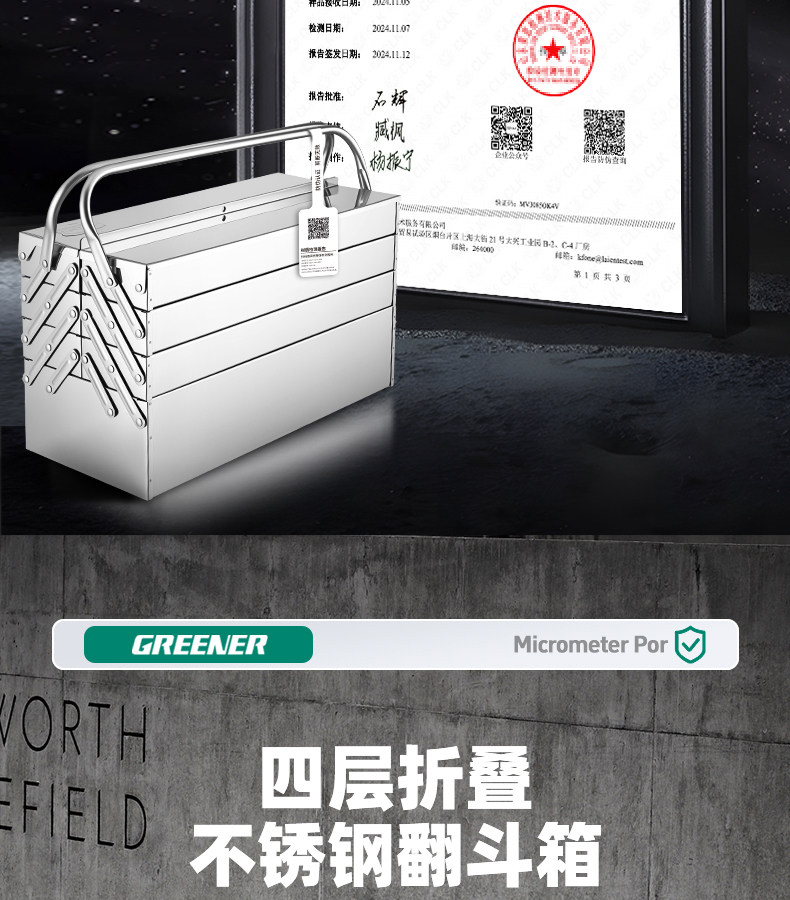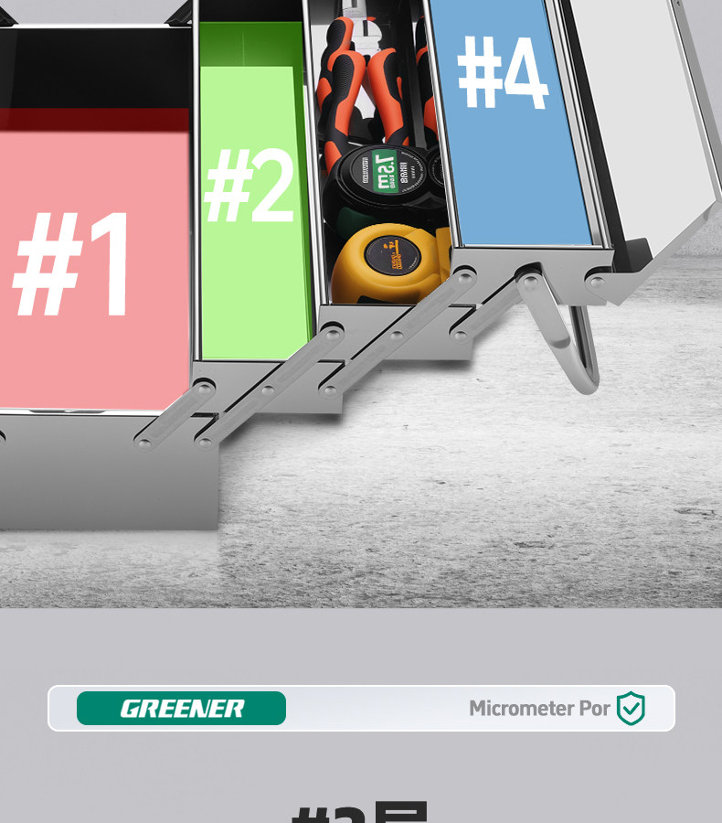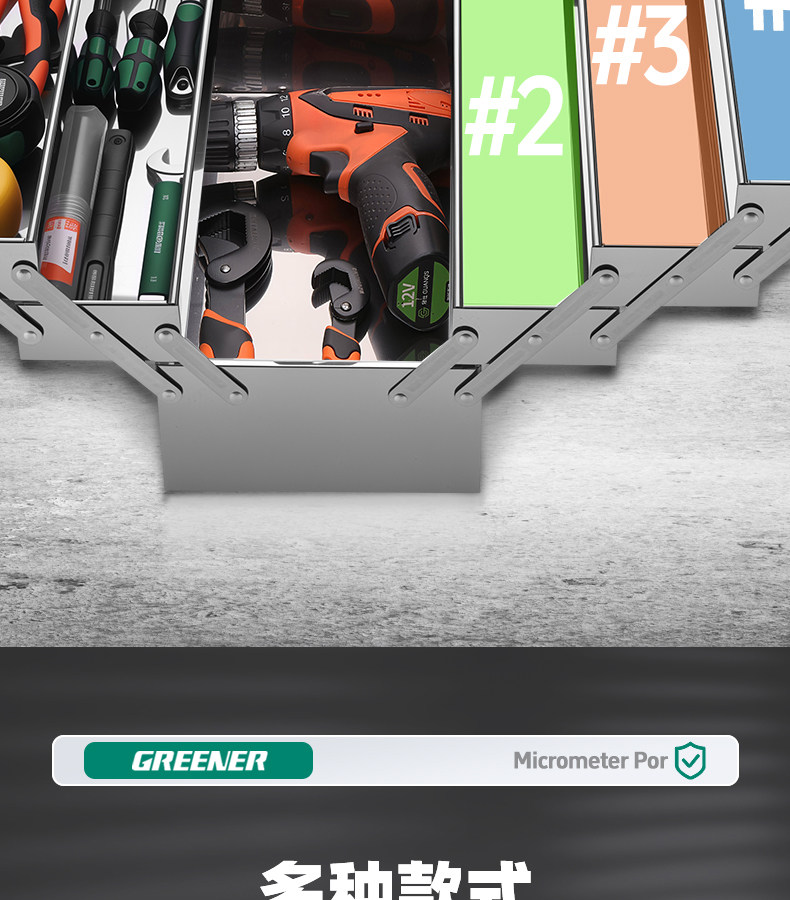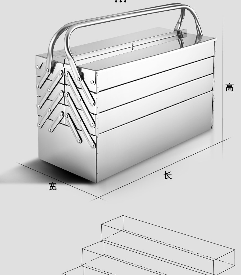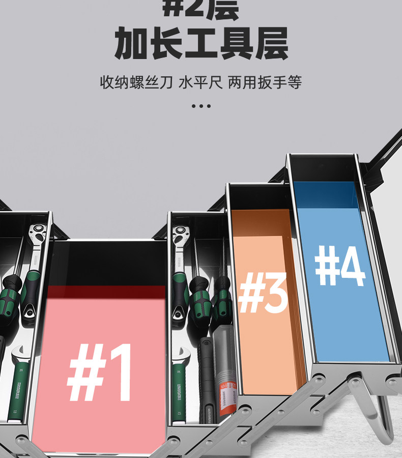 Green Forest Stainless Steel Tool Box, Three-Layer Foldable, Household Thickened Portable Hardware Industrial-Grade Storage Box, Multi-Functional