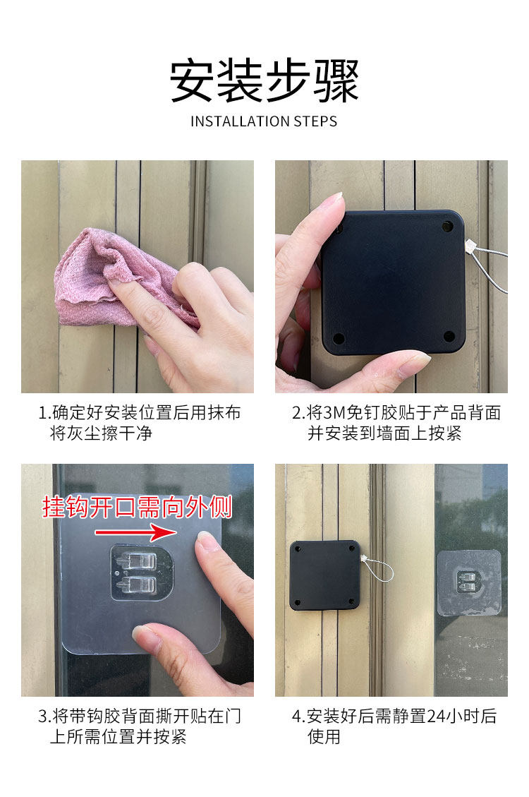 No-Drill Household Buffer Door Closer Automatic Door Closing Device Pull Rope Closure Push-Pull Spring Device for Glass