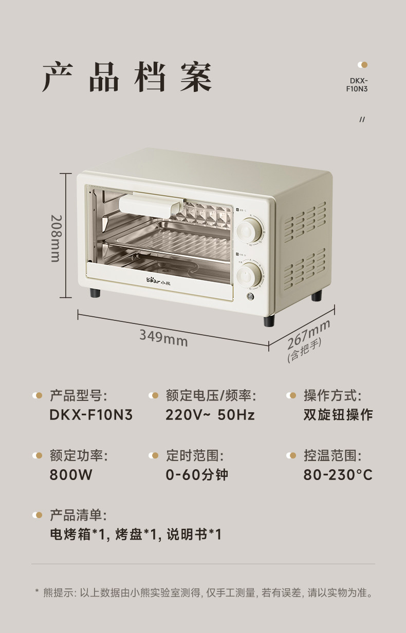 Bear Oven Small Household Oven 10L Baking-Specific Mini Electric Oven All-In-One Multifunctional Official