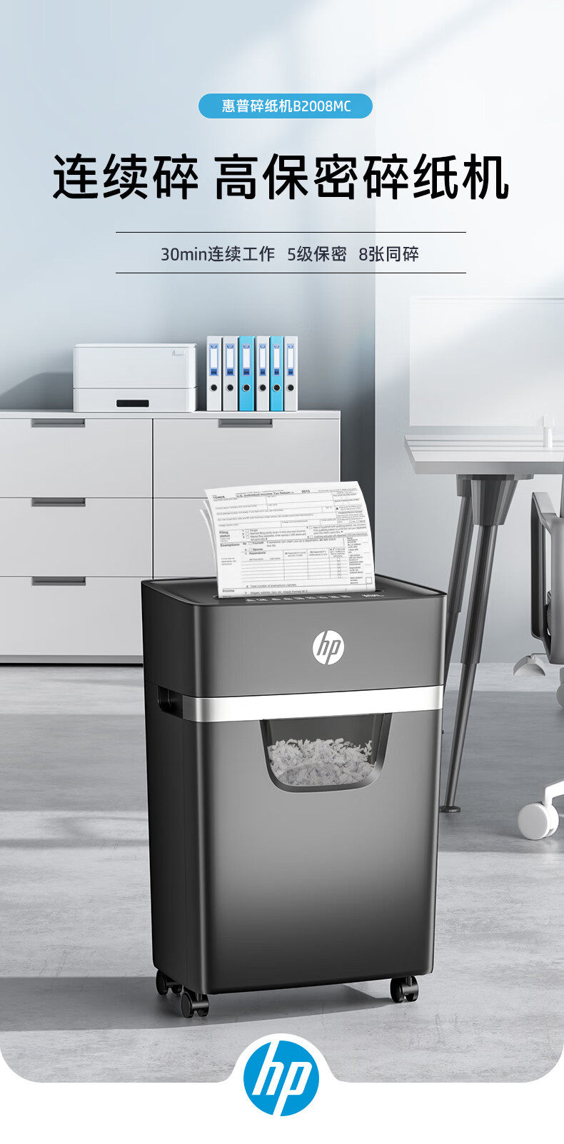 Hp Professional Shredder for Office Use, Fully Automatic Mini Portable Small Shredder, Level 56 Security, Desktop Document Paper Disc Card Shredder, Large Capacity Shredder