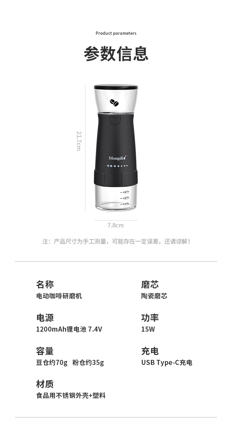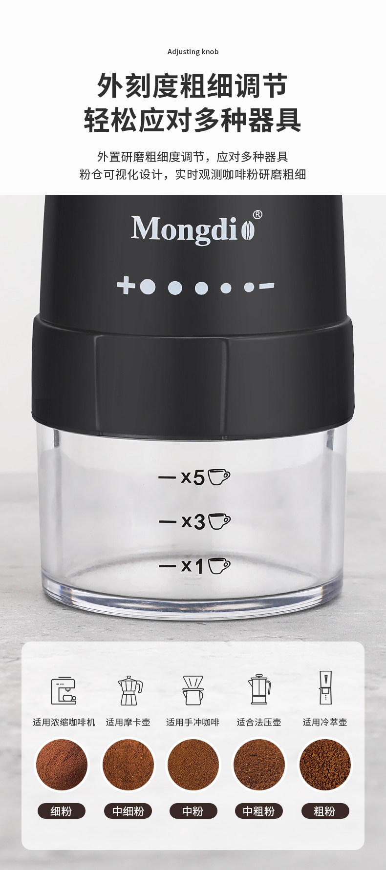 Mongdio Coffee Bean Grinder Electric Grinder Household Coffee Grinding Equipment Small Hand Grinder Coffee Machine
