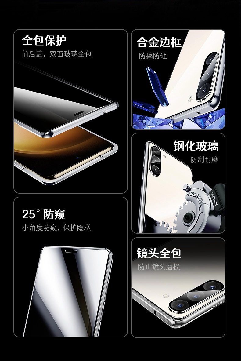 S25U Samsung S22 Double-Sided Full-Cover Phone Case S24 Ultra Anti-Peeping S21+ Double-Sided Glass S23Fe Anti-Drop Note20U Ultra-Thin Protective Heat Dissipation Magnetic Note10Plus for Men and Women