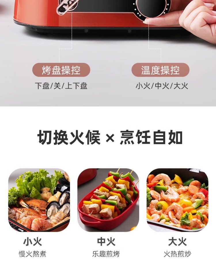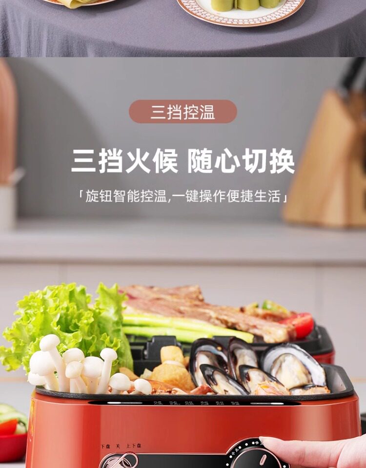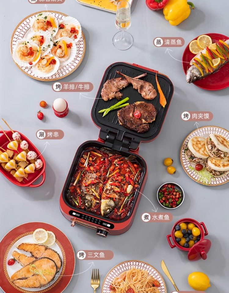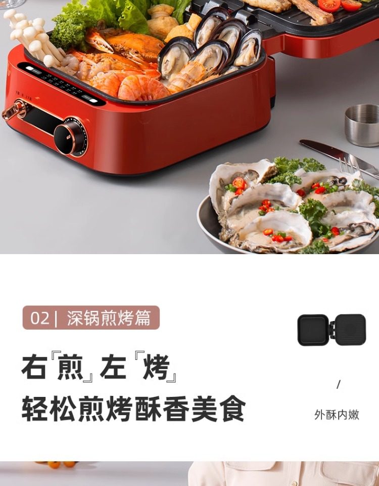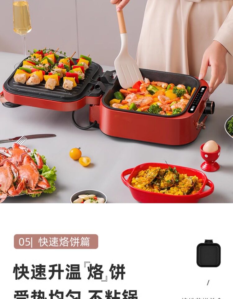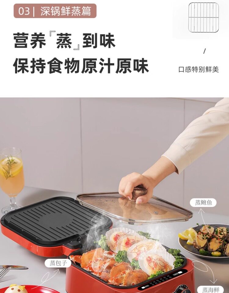Monda Multifunctional Electric Griddle Deepened Electric Hot Pot Barbecue Frying Pan Household Double-Sided Heating Cooking Pot