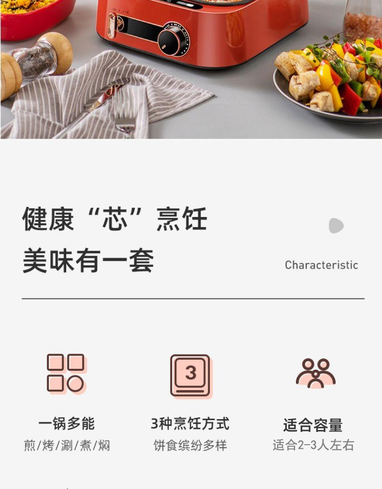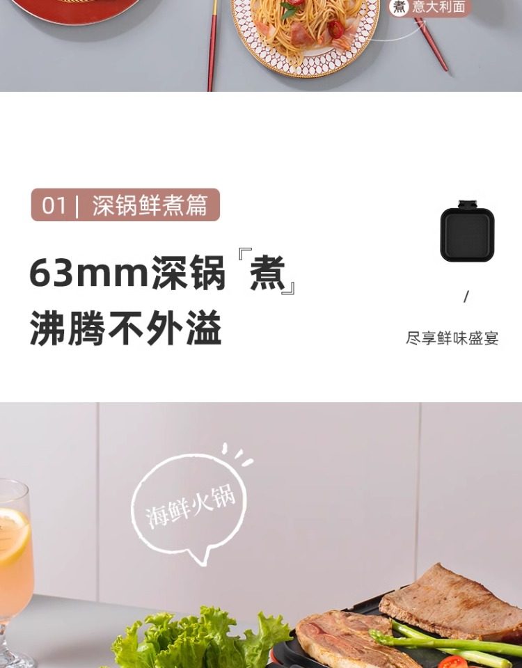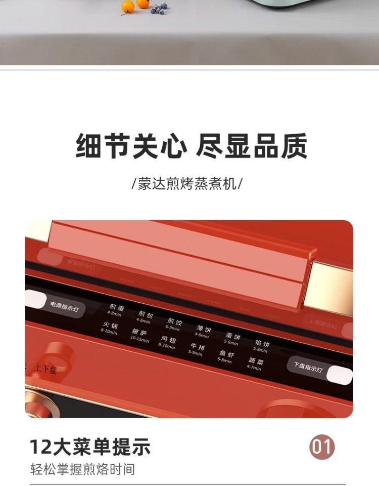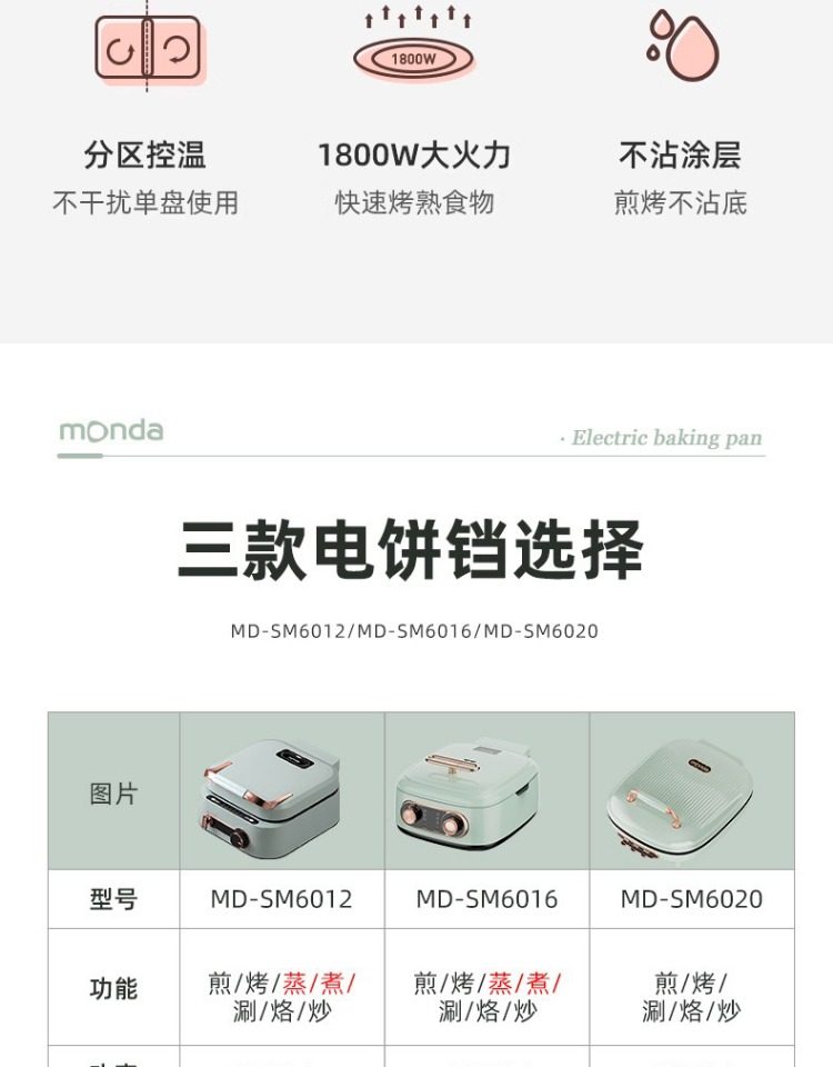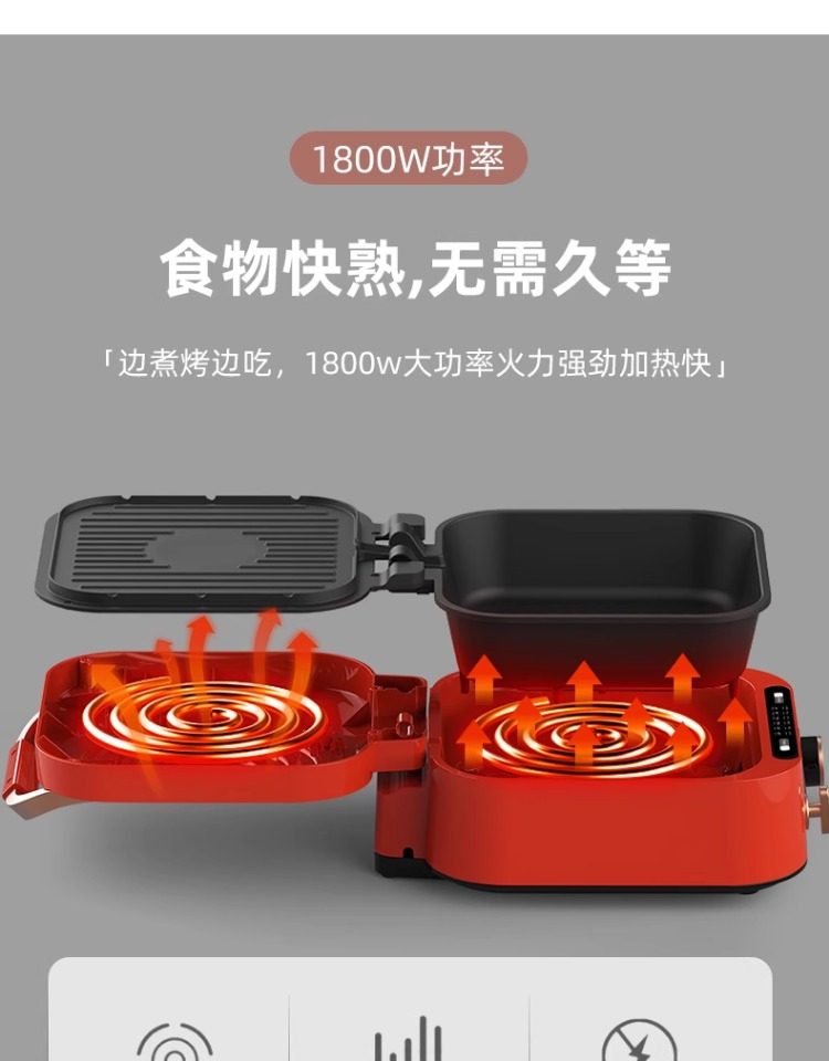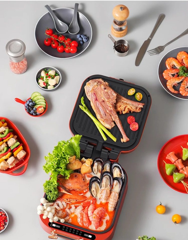 Monda Multifunctional Electric Griddle Deepened Electric Hot Pot Barbecue Frying Pan Household Double-Sided Heating Cooking Pot