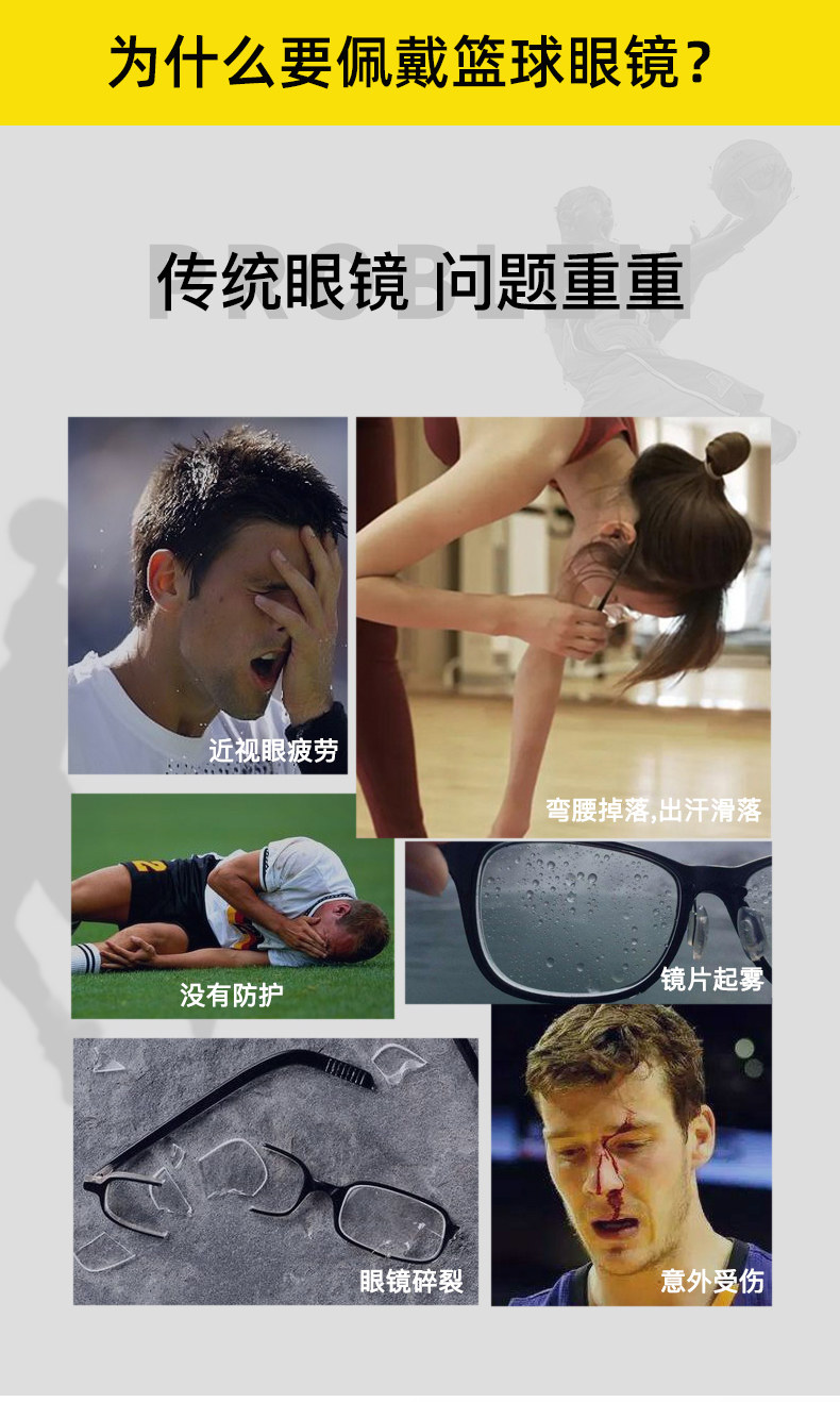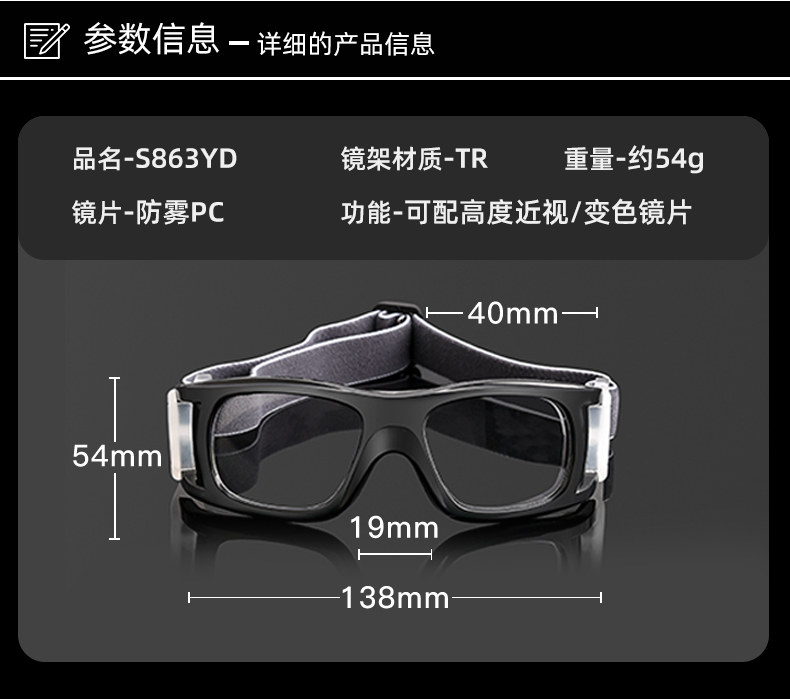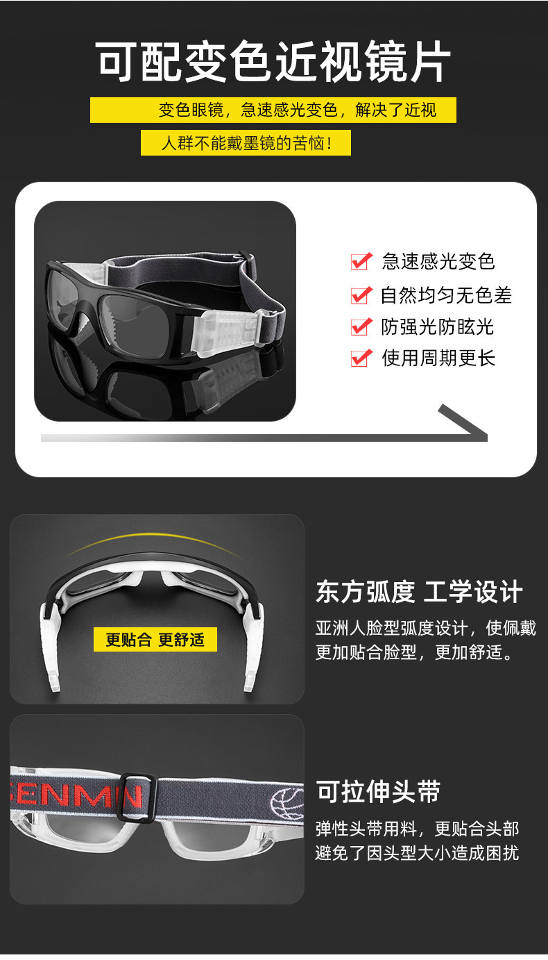 Professional Sports Myopia Glasses for Men, Basketball and Football Goggles, Outdoor Running, Anti-Slip, Anti-Fog Eye Frame