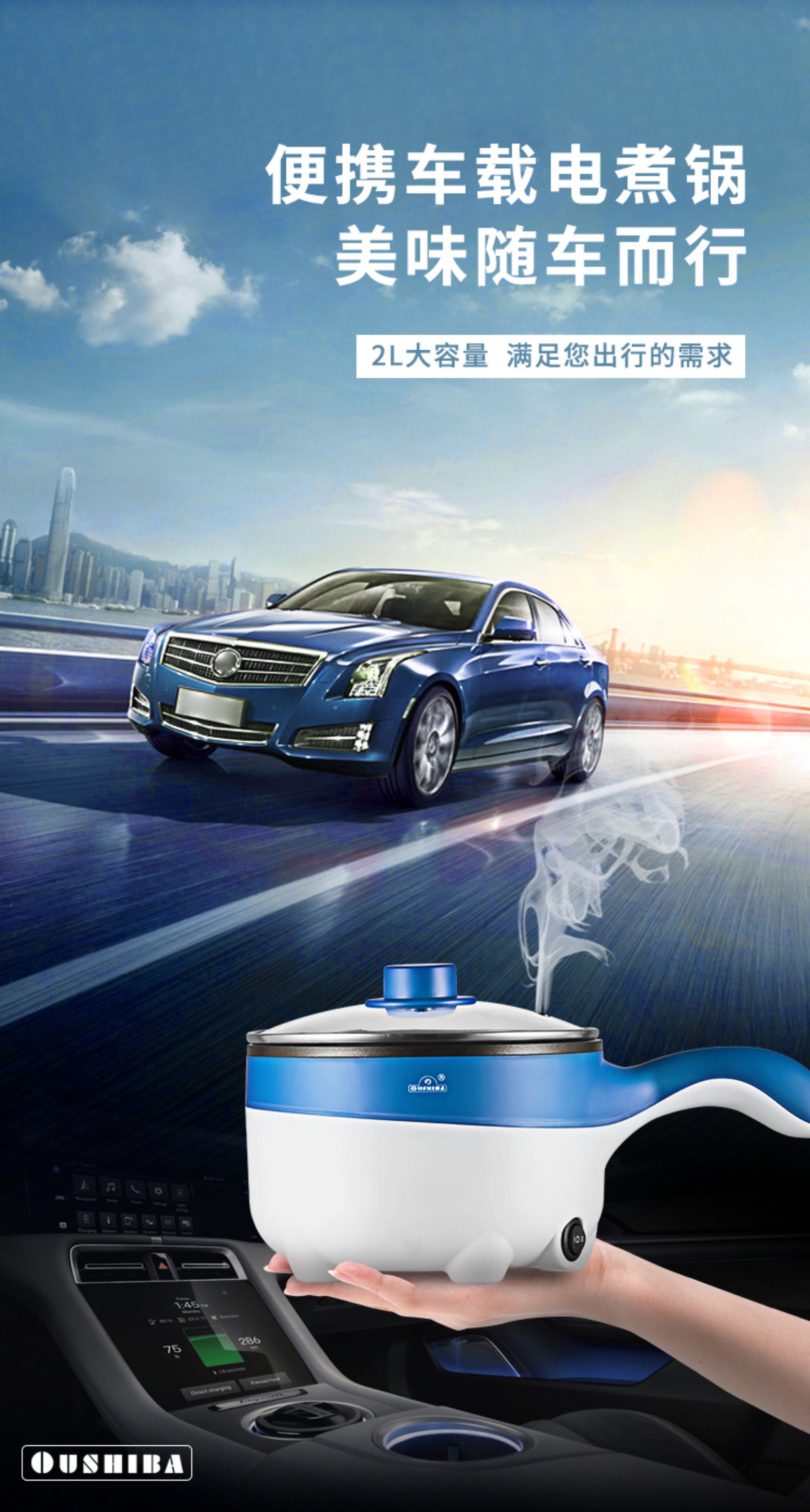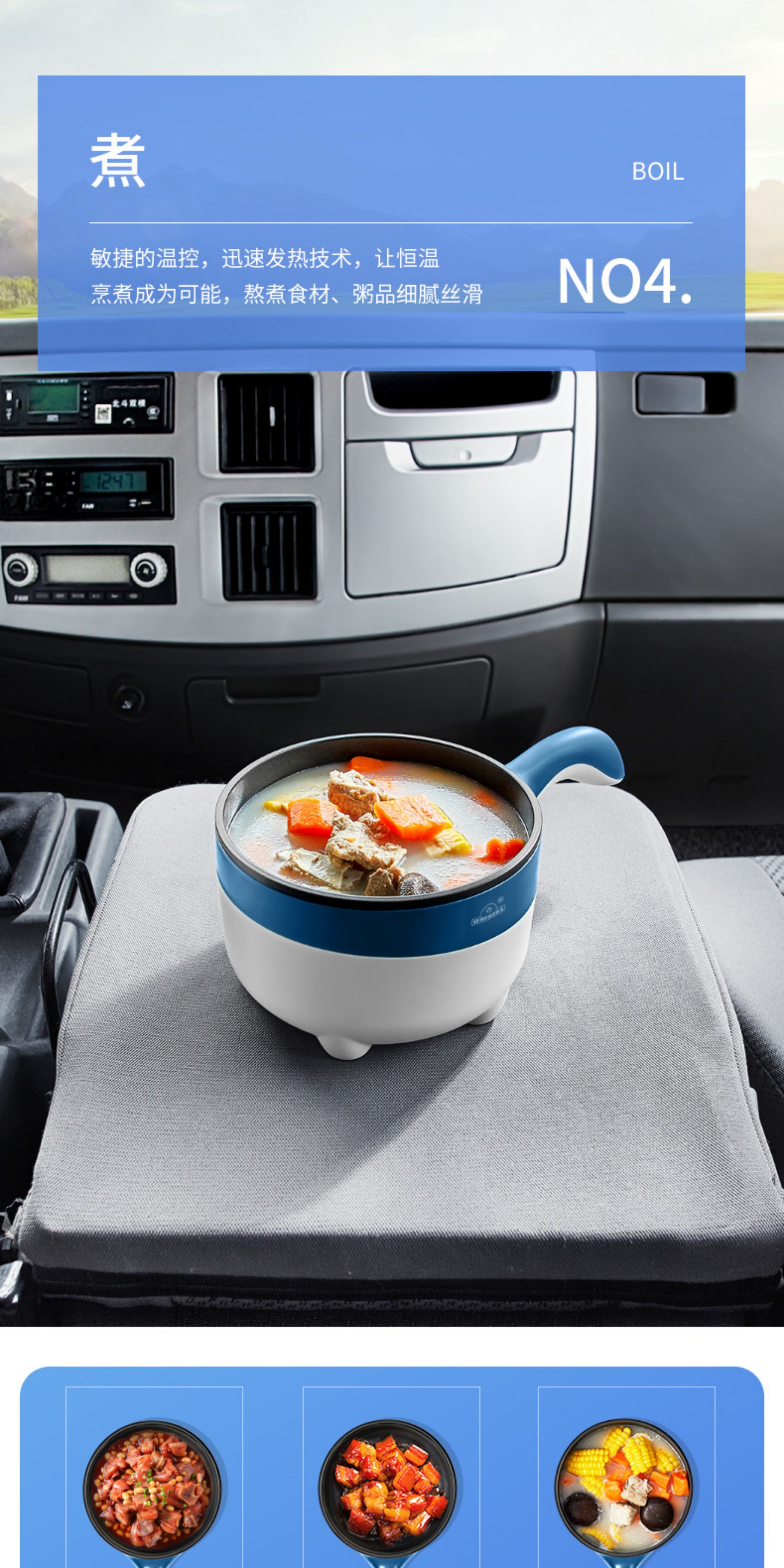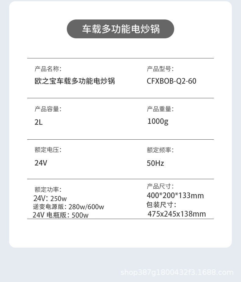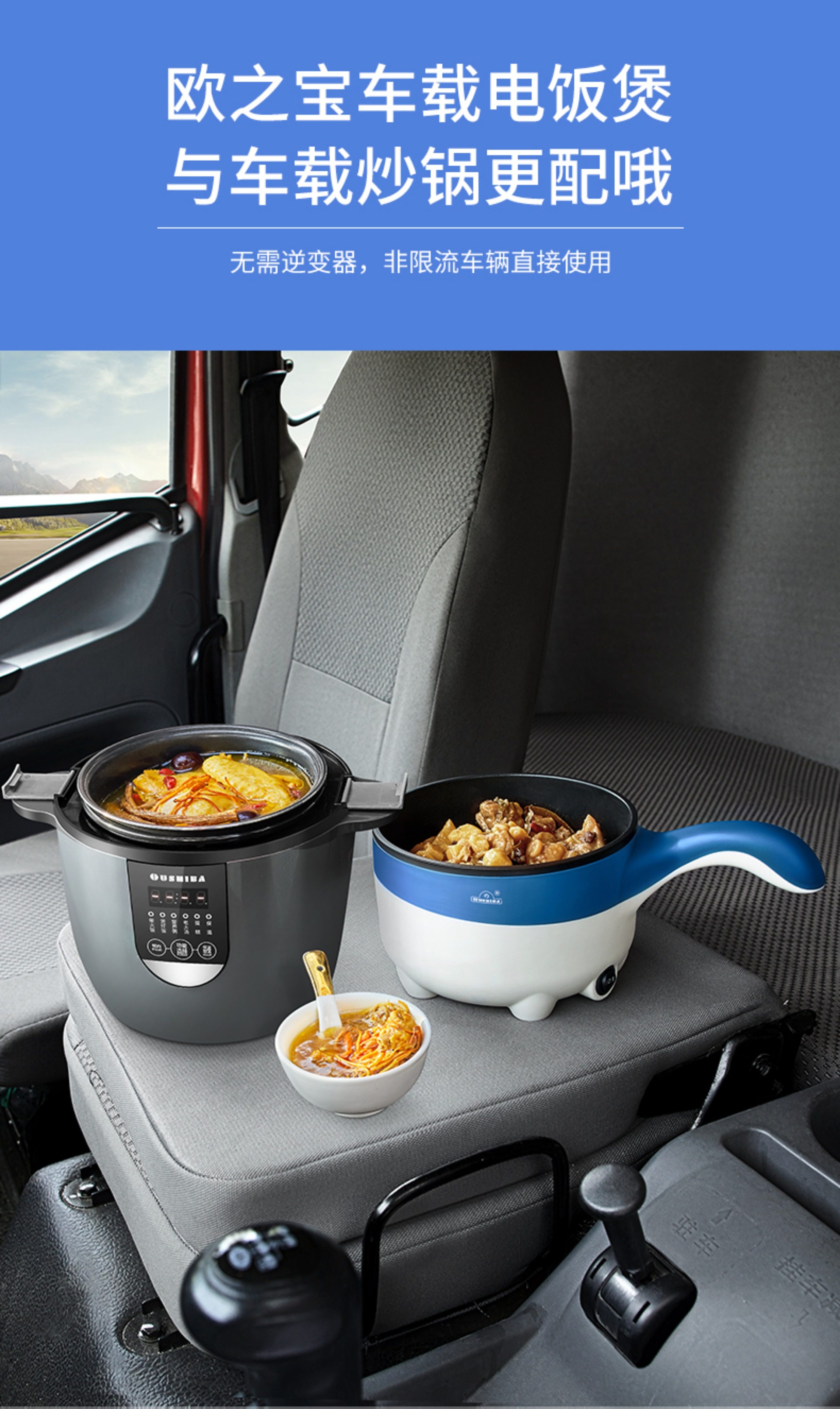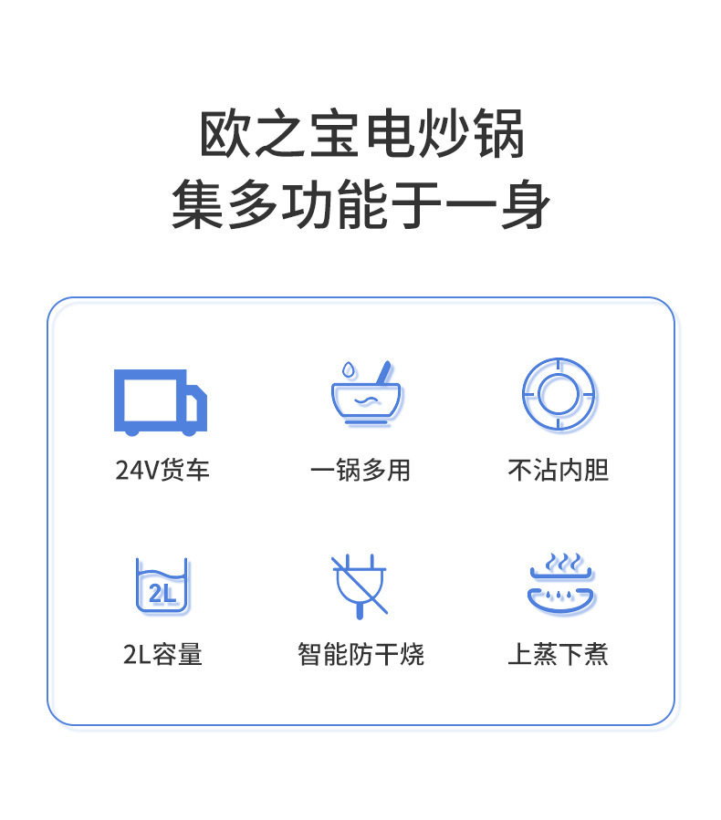 Ouzhibao 24V Car Electric Cooking Pot, Multifunctional Electric Cooker for Trucks, Suitable for Stir-Frying, Cooking Noodles, Steaming, and All-In-One Rice Cooker L