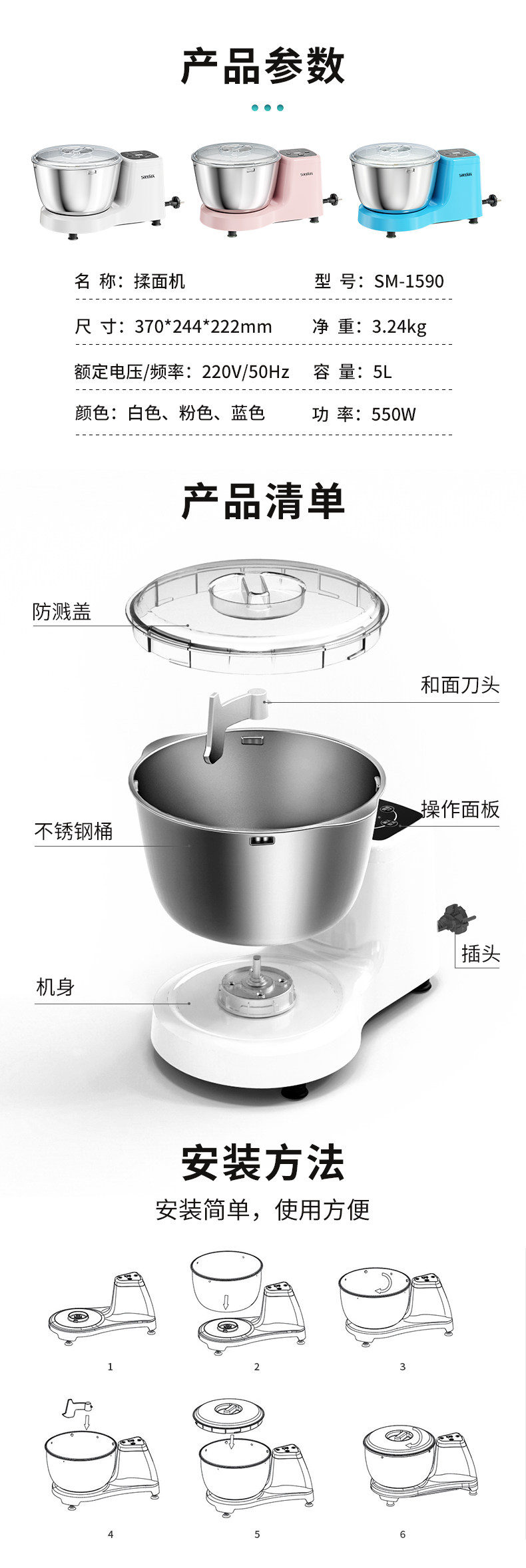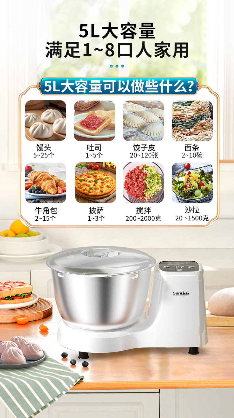 Sanlida Dough Mixer, Small Household Chef Machine, Fully Automatic Dough Kneading Machine, Timed Fermentation, Dough Mixing, Dough Proofing