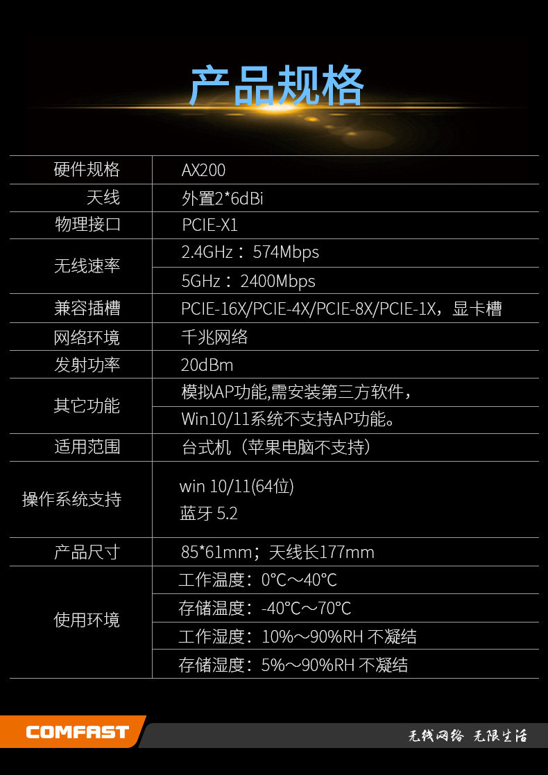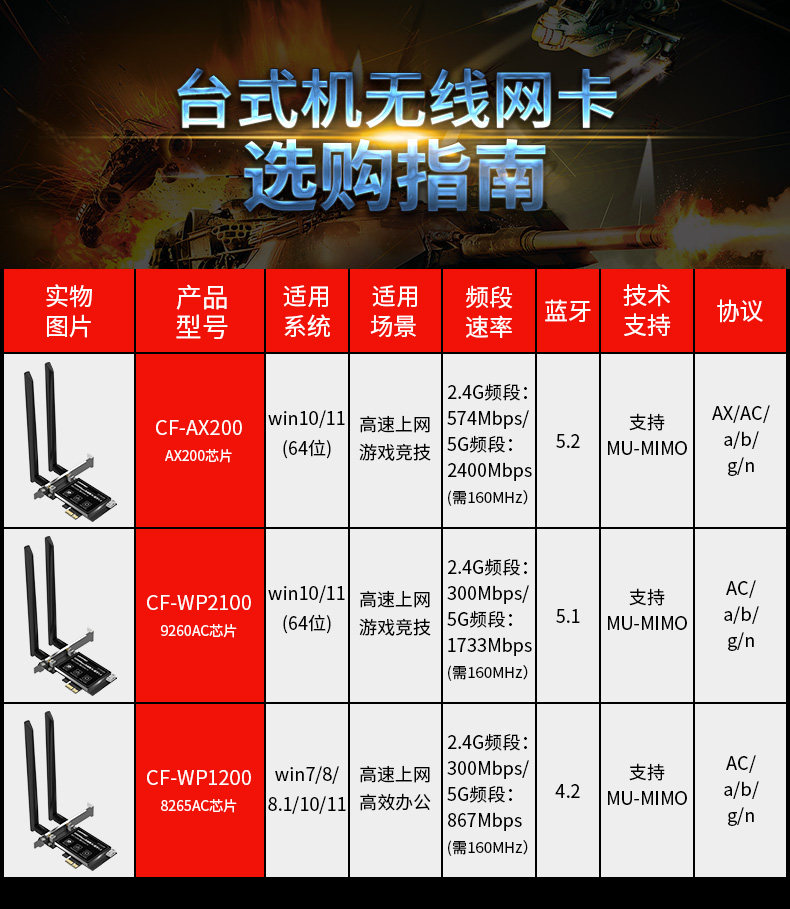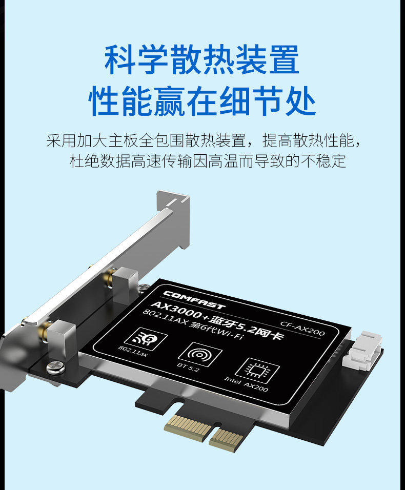 | Color Classification | AX200[3000Mbps+Bluetooth 5.2+ Anti-Interference Shielding],AX200PRO[3000Mbps+Bluetooth 5.2+ Accordion Cooling],AX210PRO[5374Mbps+Bluetooth 5.3+ Accordion Cooling],AX210PLUS[5374Mbps+Bluetooth 5.3+1.2m Magnetic Extension Base] |