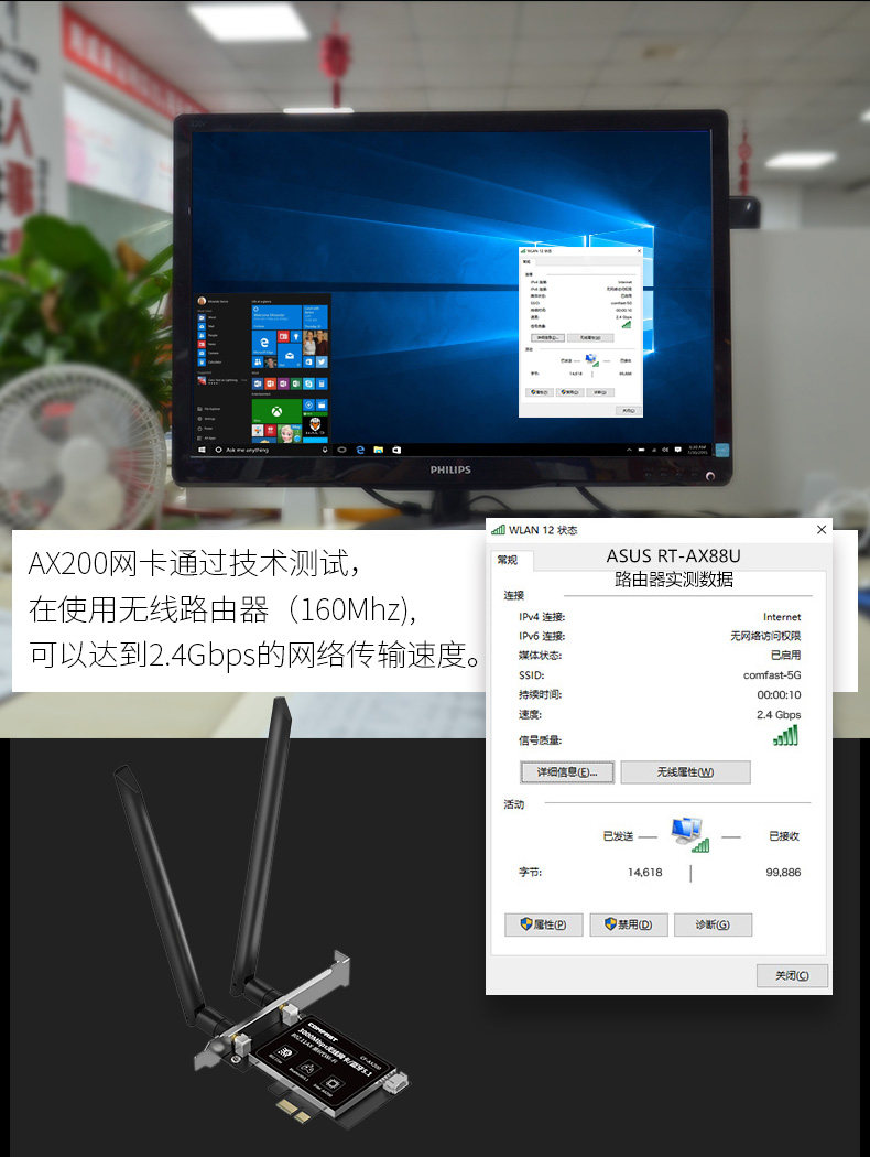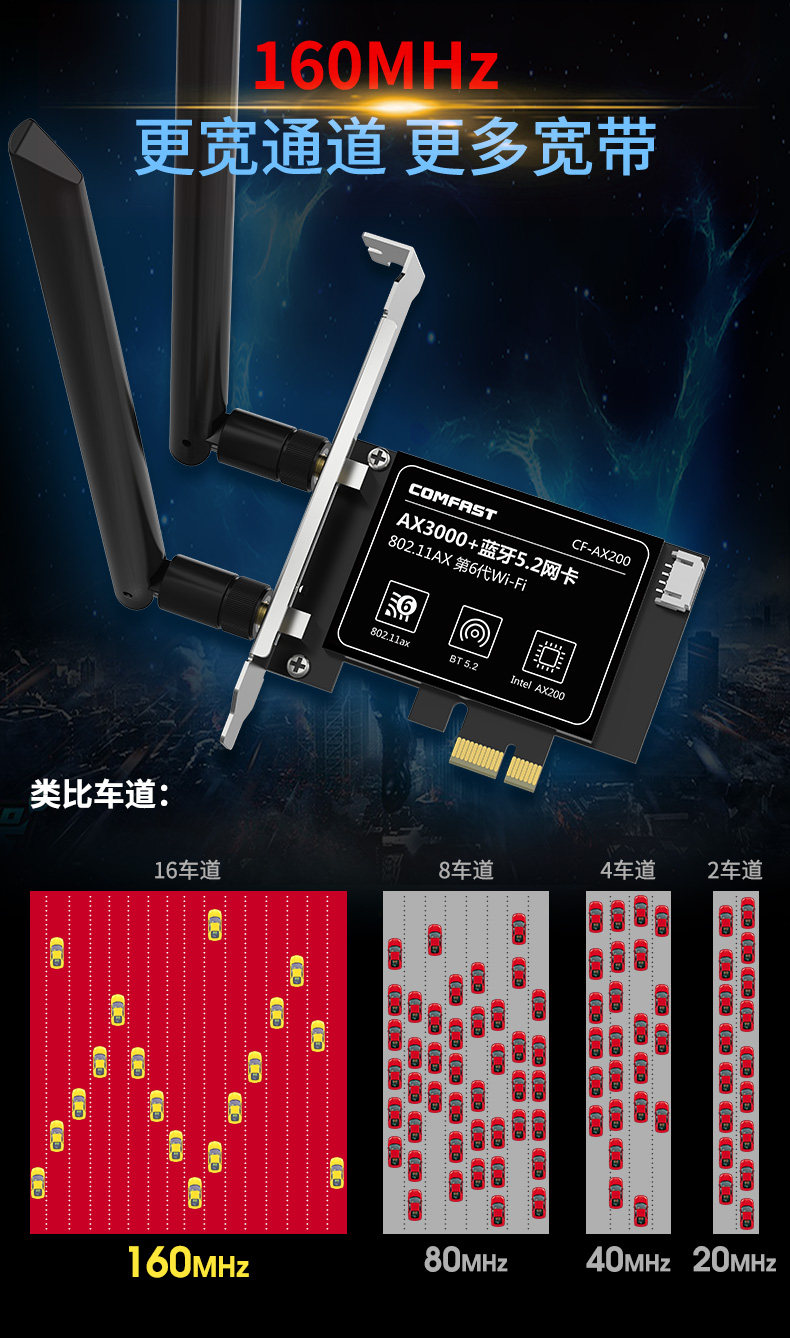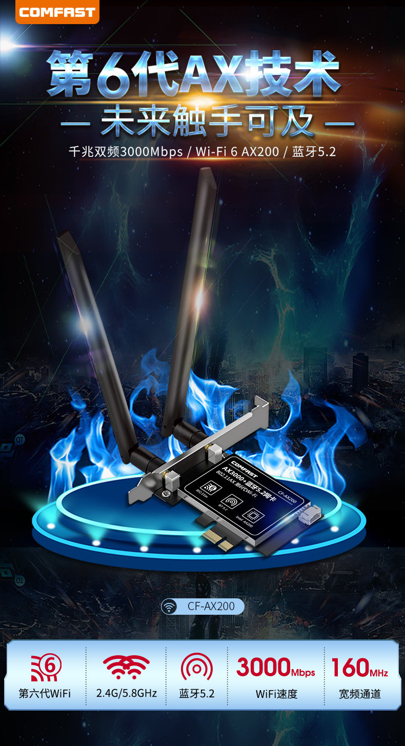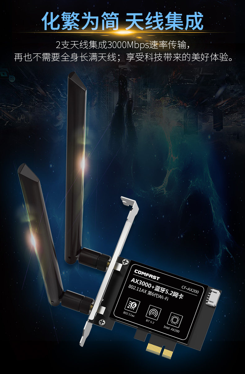 Comfast Ax200/Ax210 Gigabit Wifi6 Wireless Network Card Desktop 5g Dual-Band Wifi Receiver Desktop Built-In Pcie Bluetooth 5.2 Enhanced Network Speed Signal Receiver