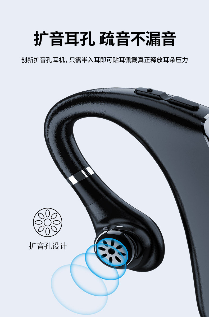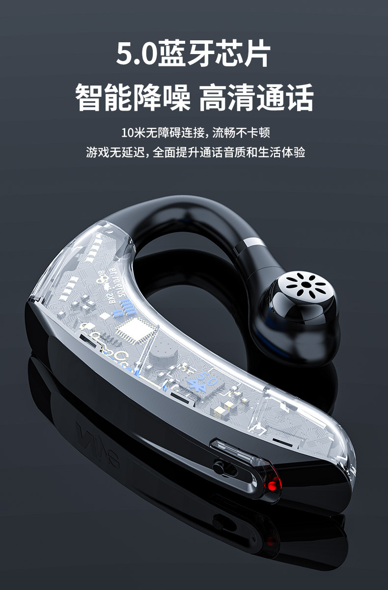 Bone Conduction Bluetooth Headset, Single Ear, Non-In-Ear, Over-Ear Style, Long Battery Life, Suitable for Car Use, Business Use, Sony Compatible