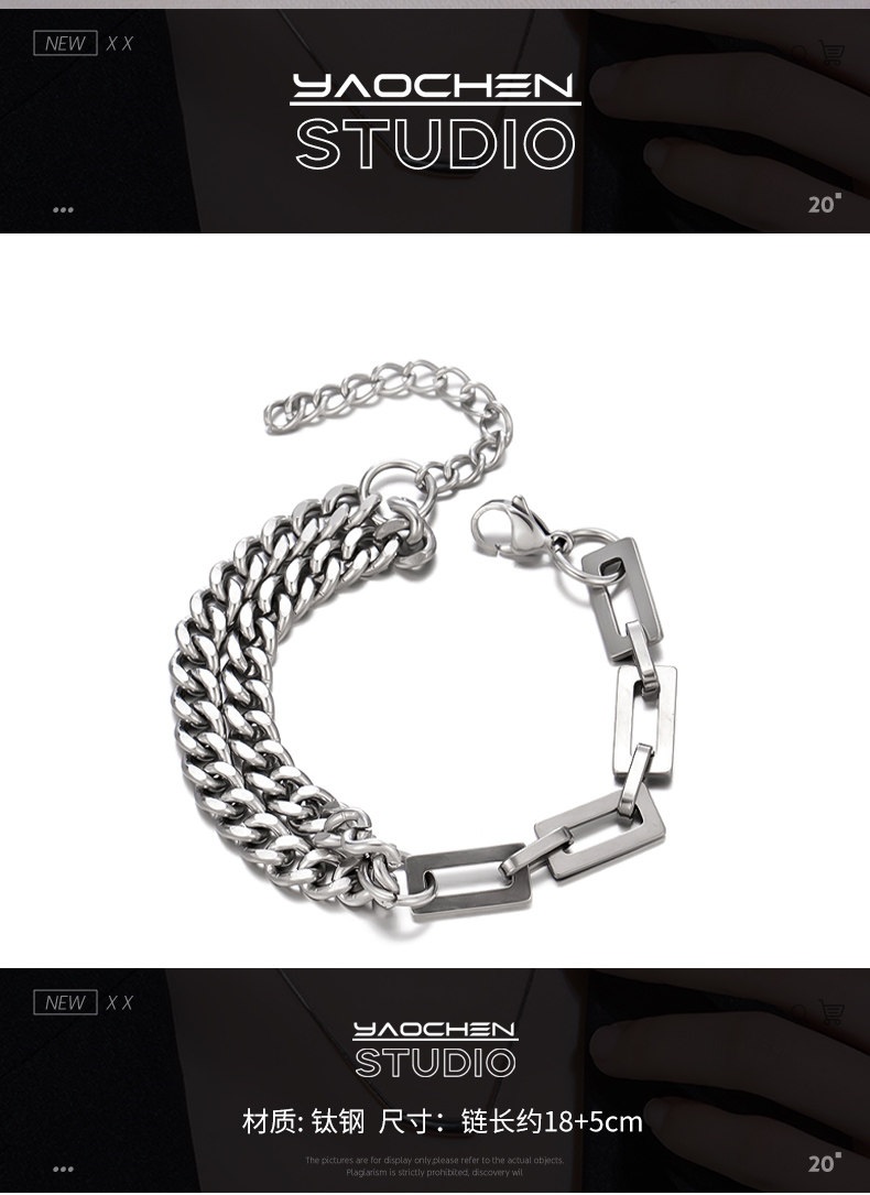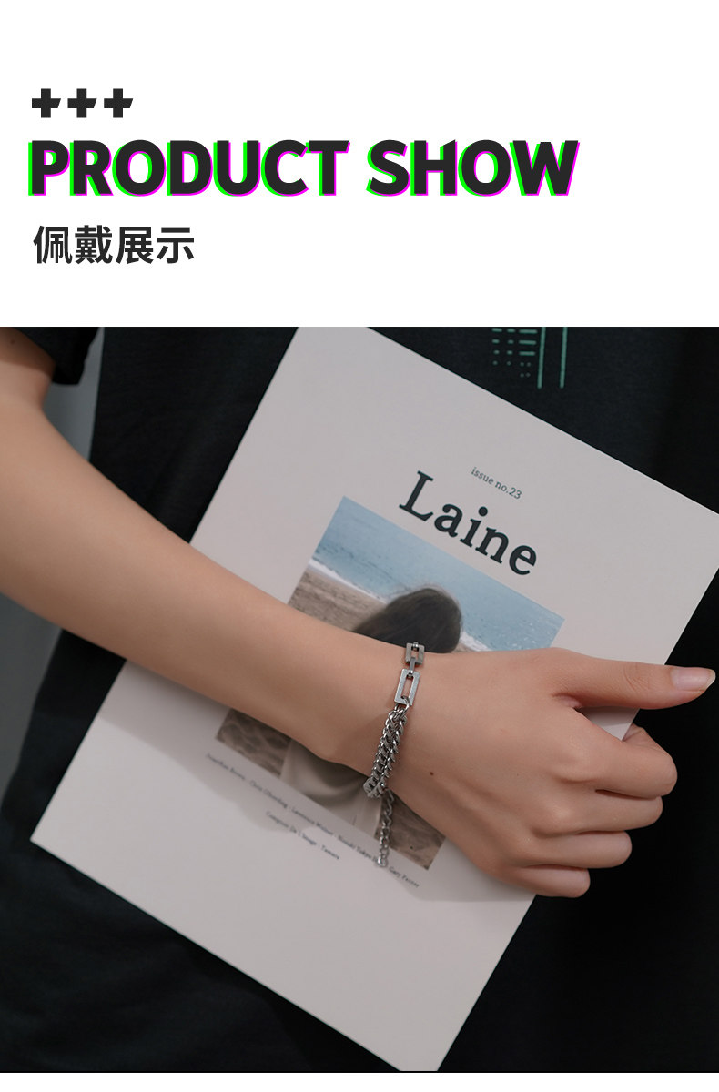 Double-Layered Titanium Steel Bracelet for Men and Women ins High-End Niche Design Hip-Hop Personality Simple Trendy Light Luxury High Street