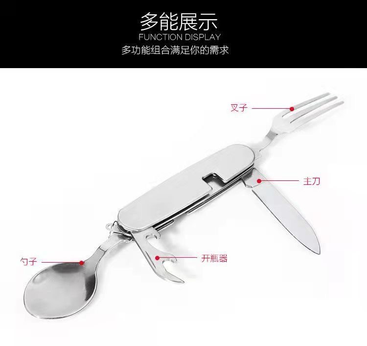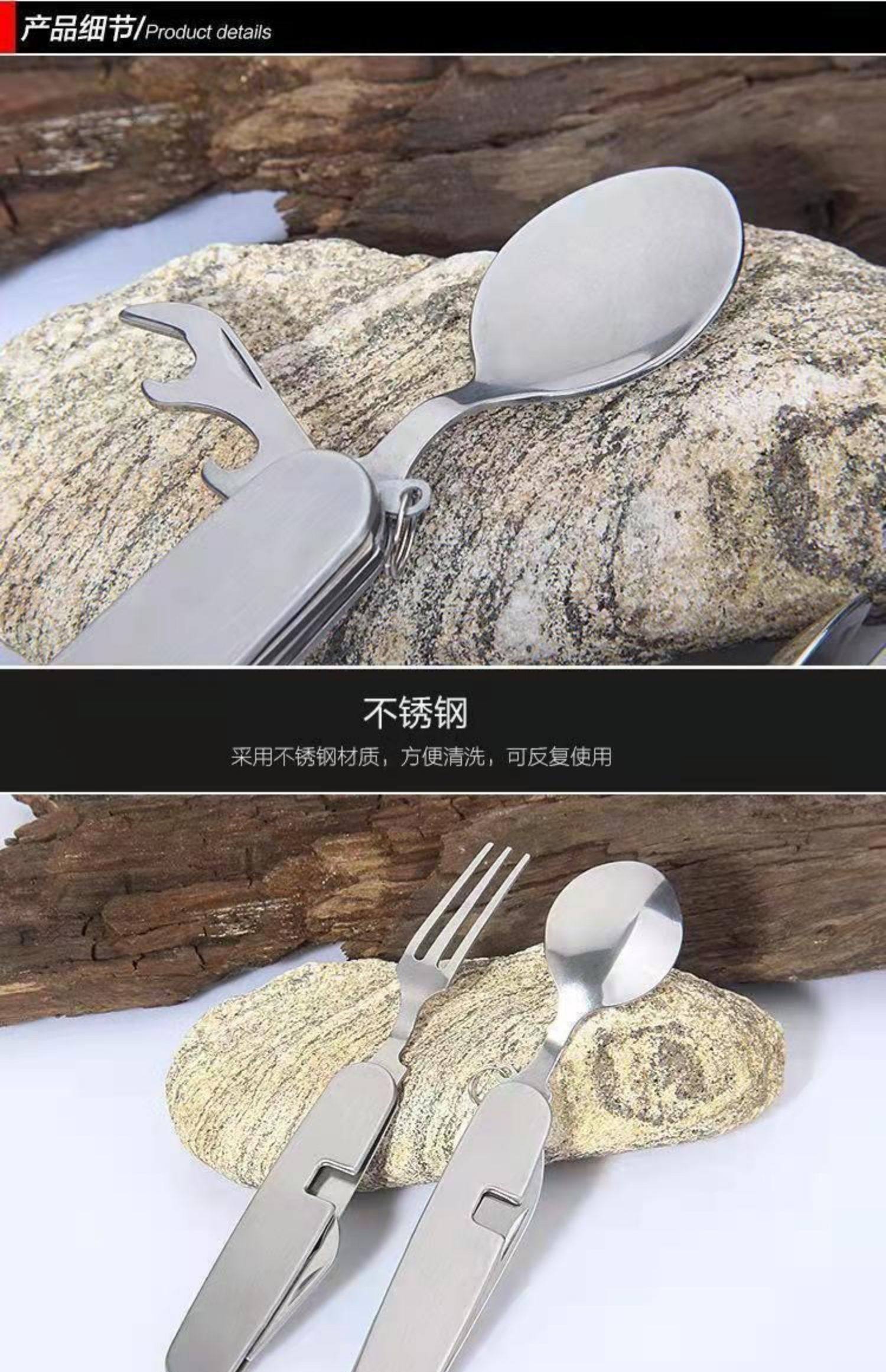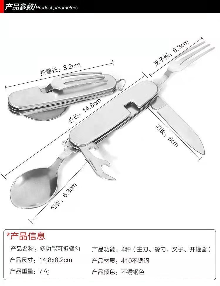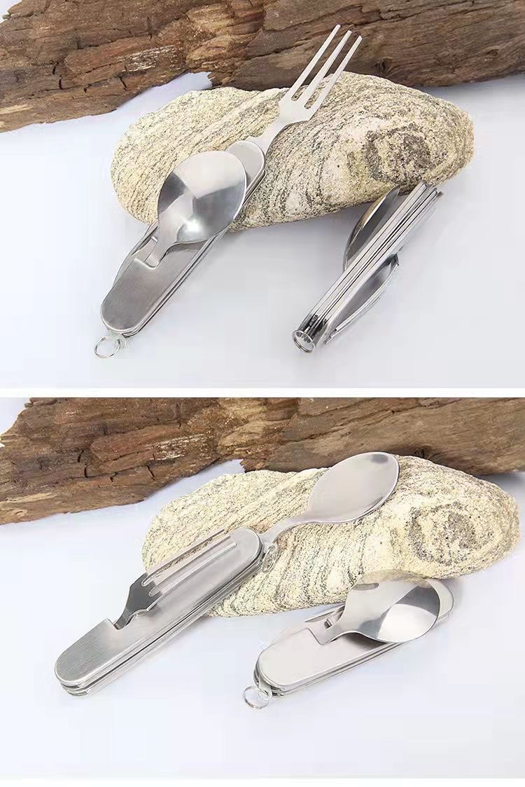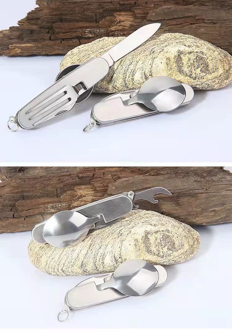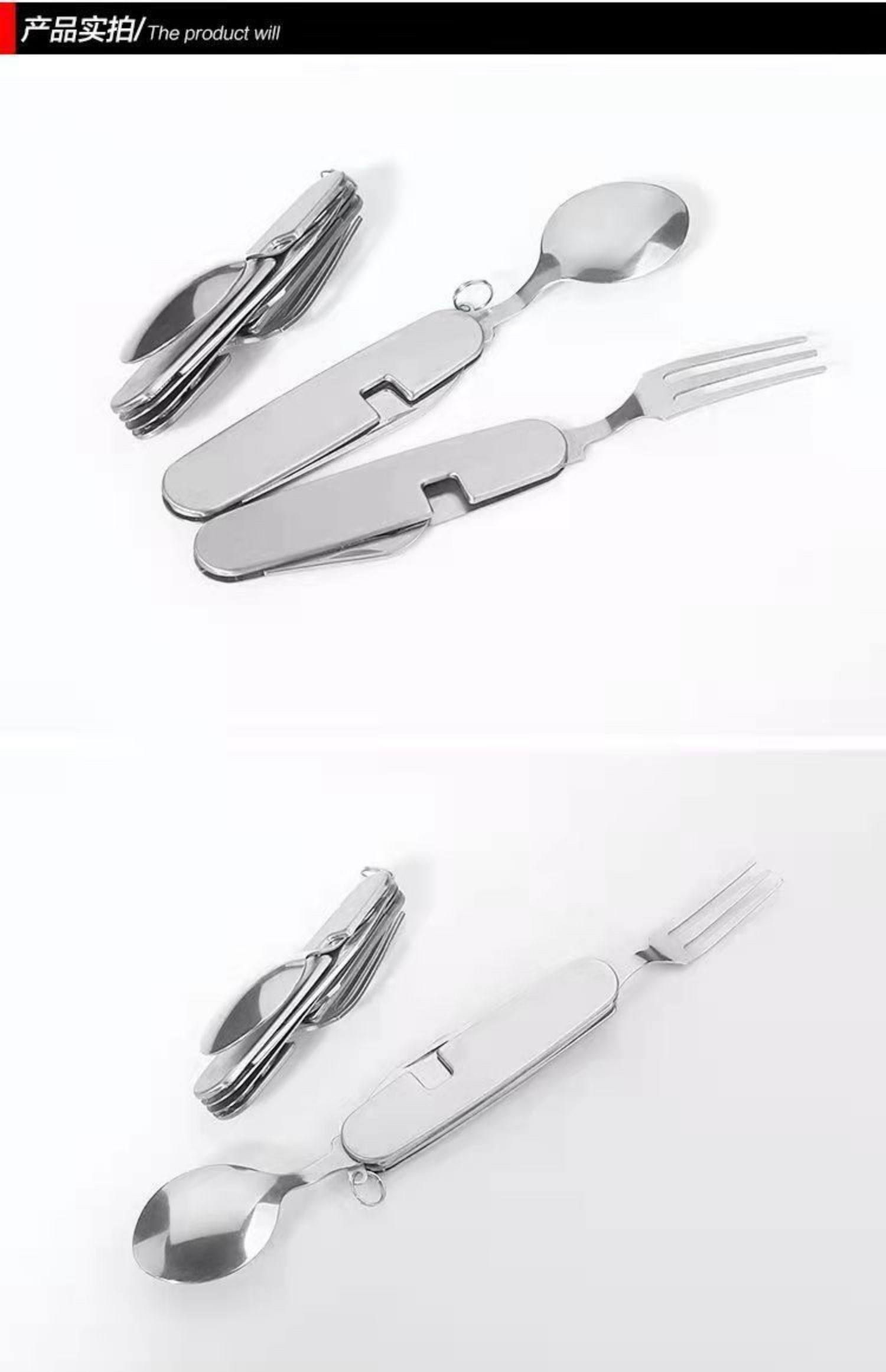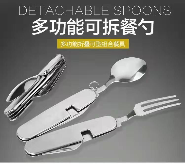 4-in-1 Detachable Multifunctional Outdoor Camping Foldableing Knife, Fork and Spoon Combination Fork Spoon Tableware Stainless Steel Table Spoon