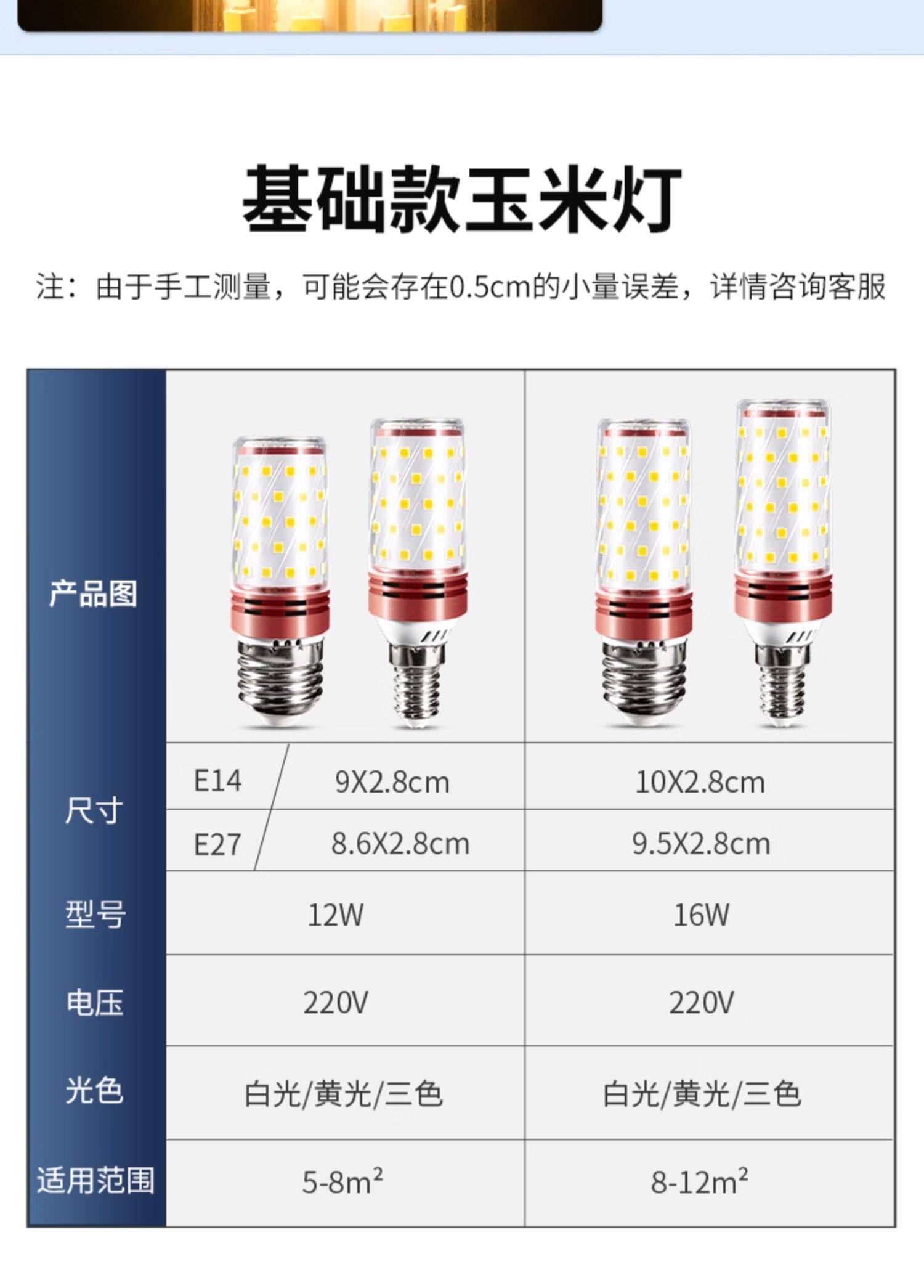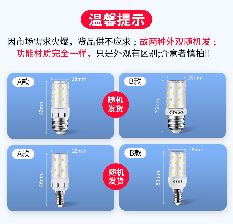 | Color Classification | Loss Momentum-Special Offer [10 Pack] E14 Screw 12W White Light,Loss Momentum-Special Offer [10 Pack] E27 Screw 12W White Light,[Pack of 10] E27 Screw Socket 12W White Light❤Super Bright Without Flicker❤,[Pack of 10] E27 Screw Socket 12W Yellow Light,[Pack of 10] E27 Screw Socket 12W Three-Color Dimming,[Pack of 10] E27 Screw Socket 16W White Light,[Pack of 10] E27 Screw Socket 16W Yellow Light,[Pack of 10] E27 Screw Socket 16W Three-Color Dimming,Newly Upgraded [10 Pieces] E27 Screw Socket 12W White Light❤Suitable for Chandeliers and Crystal Lamps❤,Newly Upgraded [10 Pieces] E27 Screw Socket 12W Yellow Light,Newly Upgraded [Pack of 10] E27 Screw Socket 12W Three-Color Dimming,Newly Upgraded [10 Pieces] E27 Screw Socket 16W White Light,Newly Upgraded [10 Pieces] E27 Screw Socket 16W Yellow Light,Newly Upgraded [10 Pieces] E27 Screw Port 16W Three-Color Dimming,Newly Upgraded [10 Pieces] E27 Screw Port 20W White Light,Newly Upgraded [Pack of 10] E27 Screw Socket 20W Yellow Light,Newly Upgraded [Pack of 10] E27 Screw Socket 20W Three-Color Dimming,Newly Upgraded [10 Pieces] E14 Screw Socket 12W White Light❤Refined Aluminum Is More Durable.❤,Newly Upgraded [10 Pieces] E14 Screw Socket 12W Yellow Light,Newly Upgraded [Pack of 10] E14 Screw Socket 12W Three-Color Dimming,Newly Upgraded [10 Pieces] E14 Screw Port 16W White Light,Newly Upgraded [Pack of 10] E14 Screw Socket 16W Yellow Light,Newly Upgraded [Pack of 10] E14 Screw Socket 16W Three-Color Dimming,Newly Upgraded [10 Pieces] E14 Screw Port 20W White Light,Newly Upgraded [Pack of 10] E14 Screw Socket 20W Yellow Light,Newly Upgraded [Pack of 10] E14 Screw Socket 20W Three-Color Dimming |