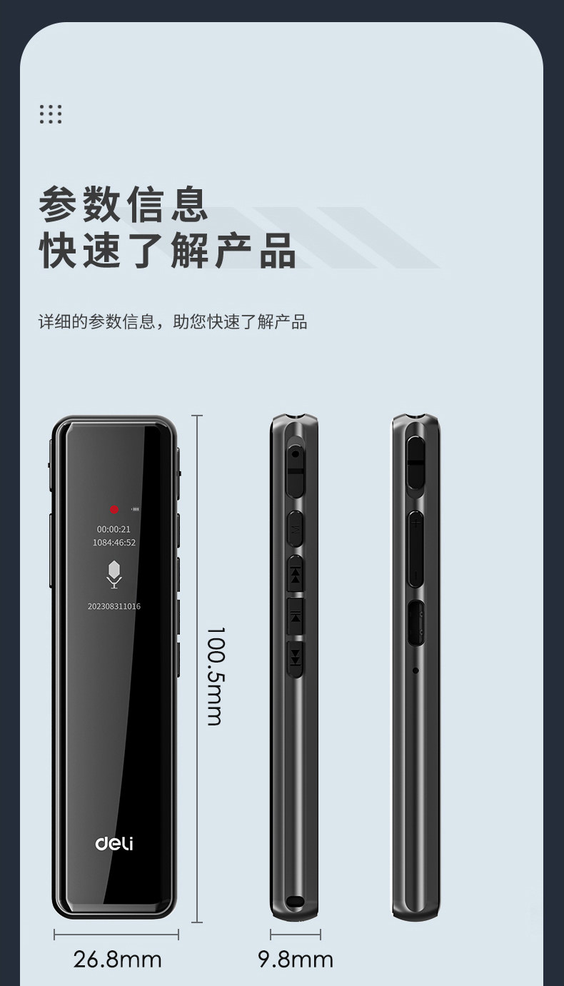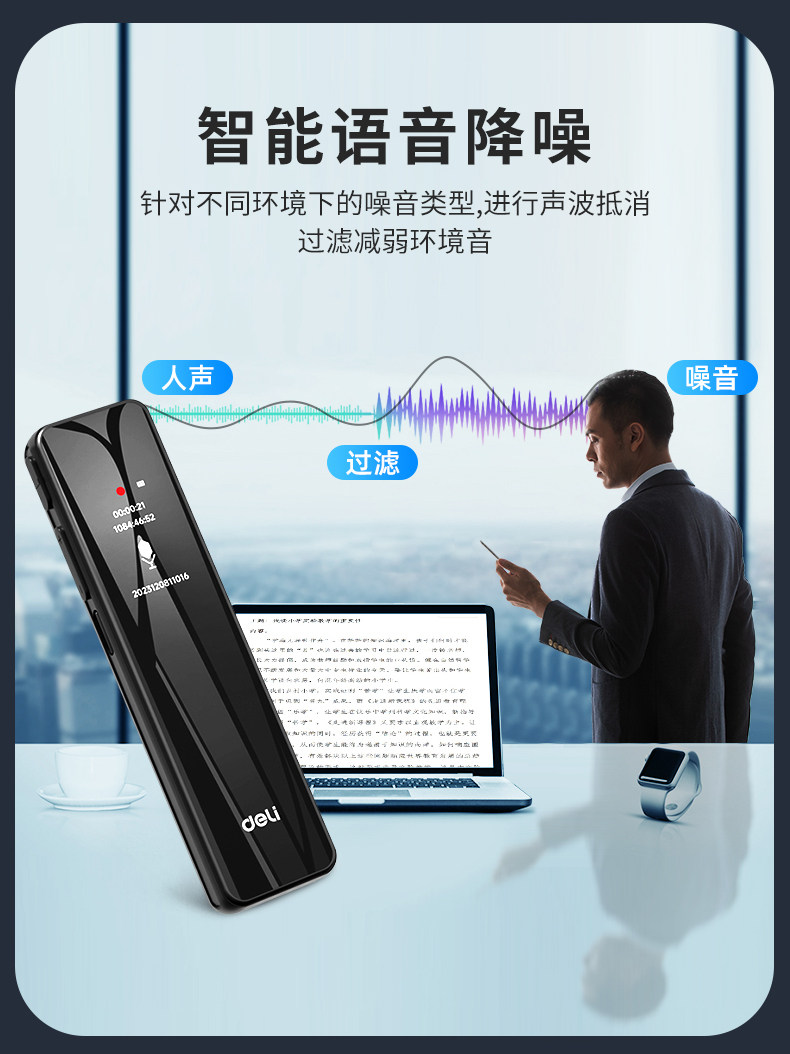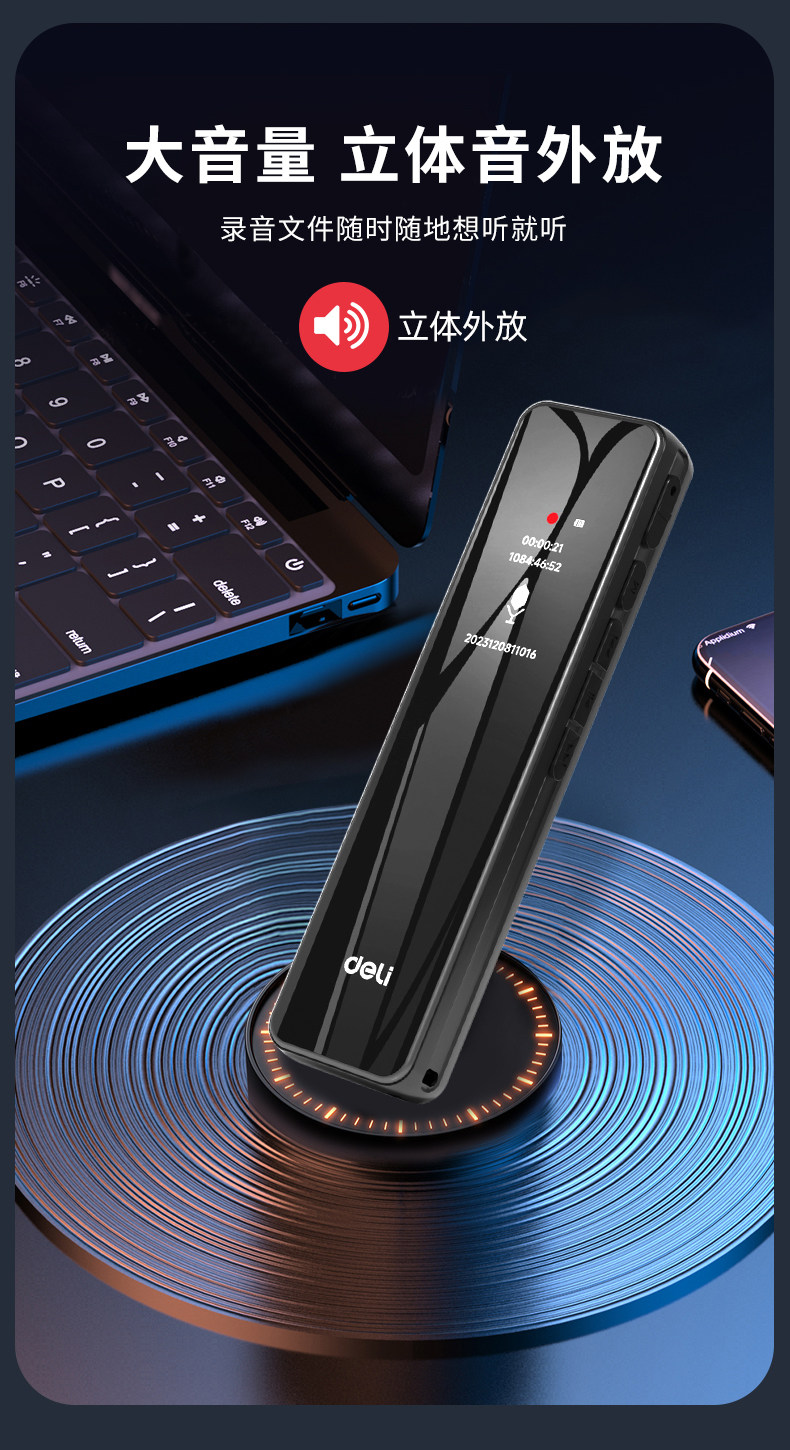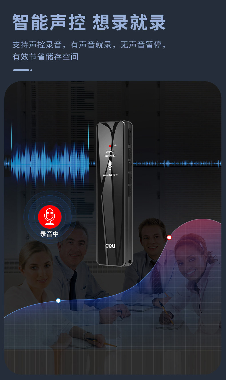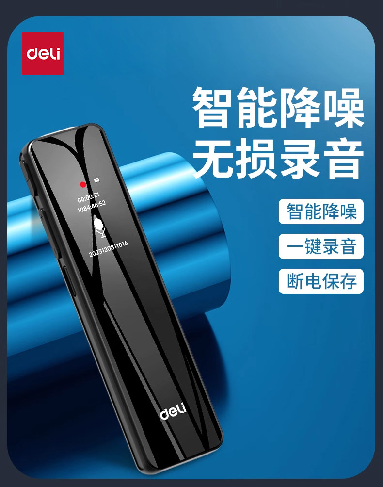 Deli Voice Recorder, Small and Portable, Professional High-Definition Noise Reduction, Long Standby, Suitable for Students to Use in Class, Converts Speech to Text Recording Device