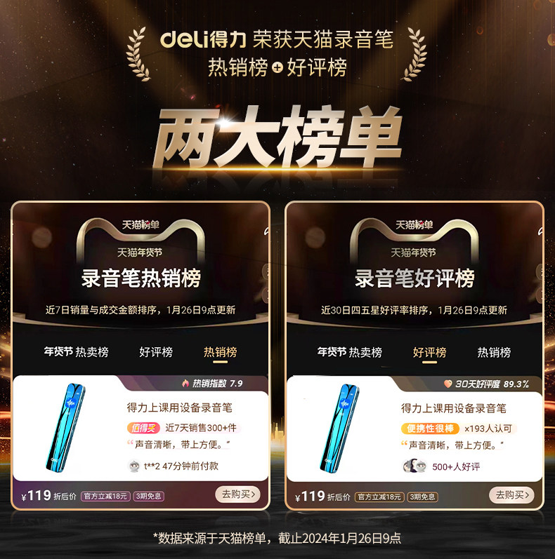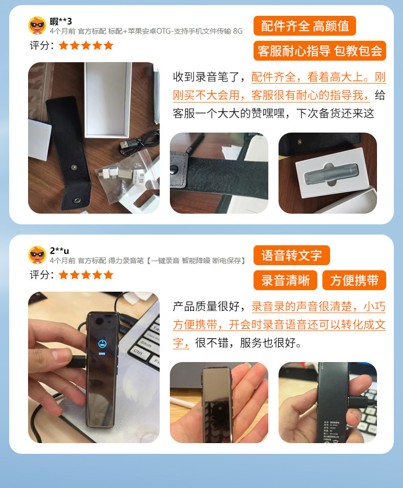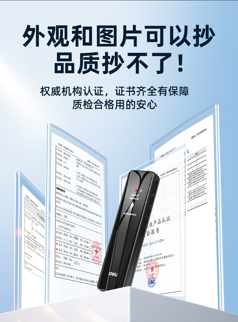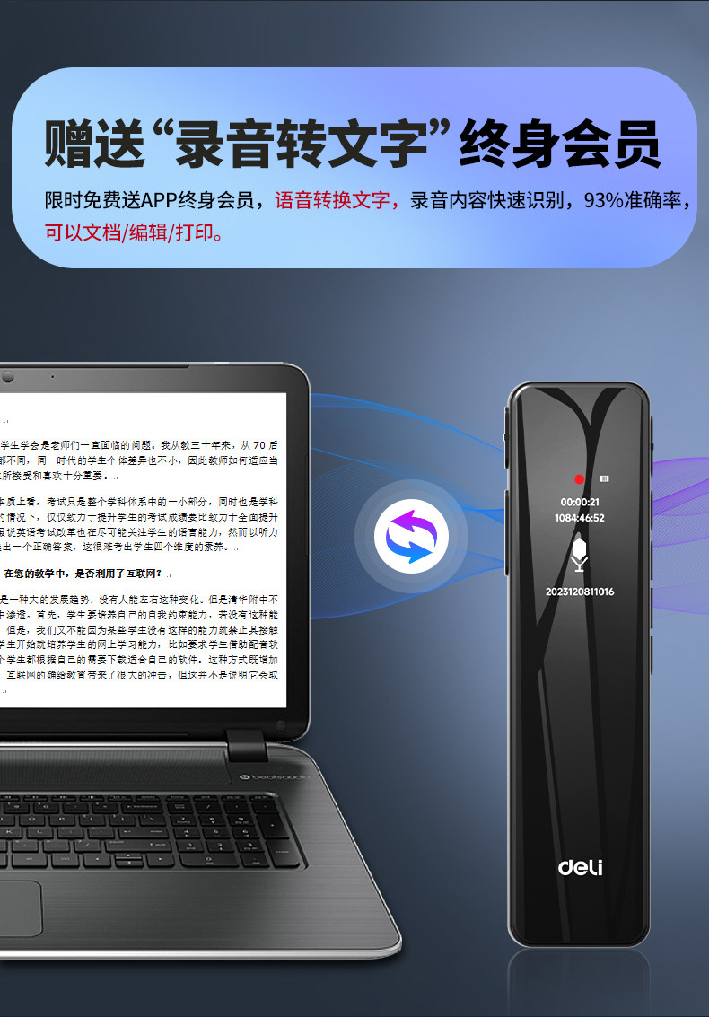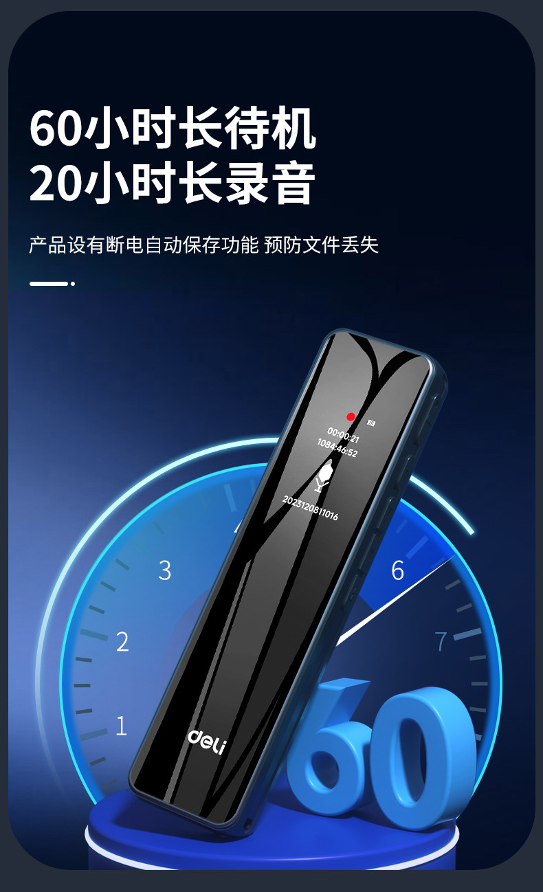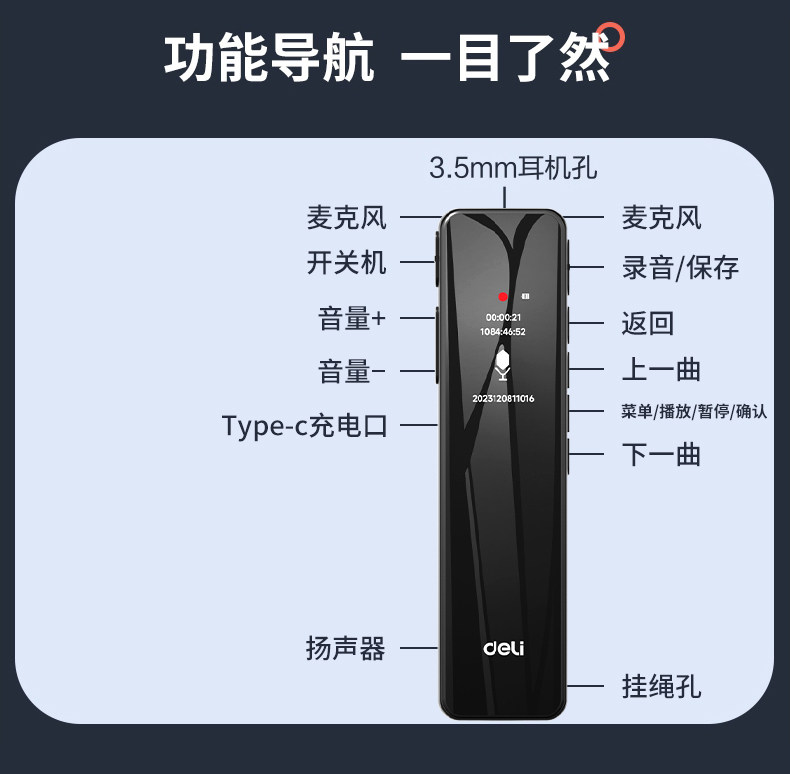 Deli Voice Recorder, Small and Portable, Professional High-Definition Noise Reduction, Long Standby, Suitable for Students to Use in Class, Converts Speech to Text Recording Device