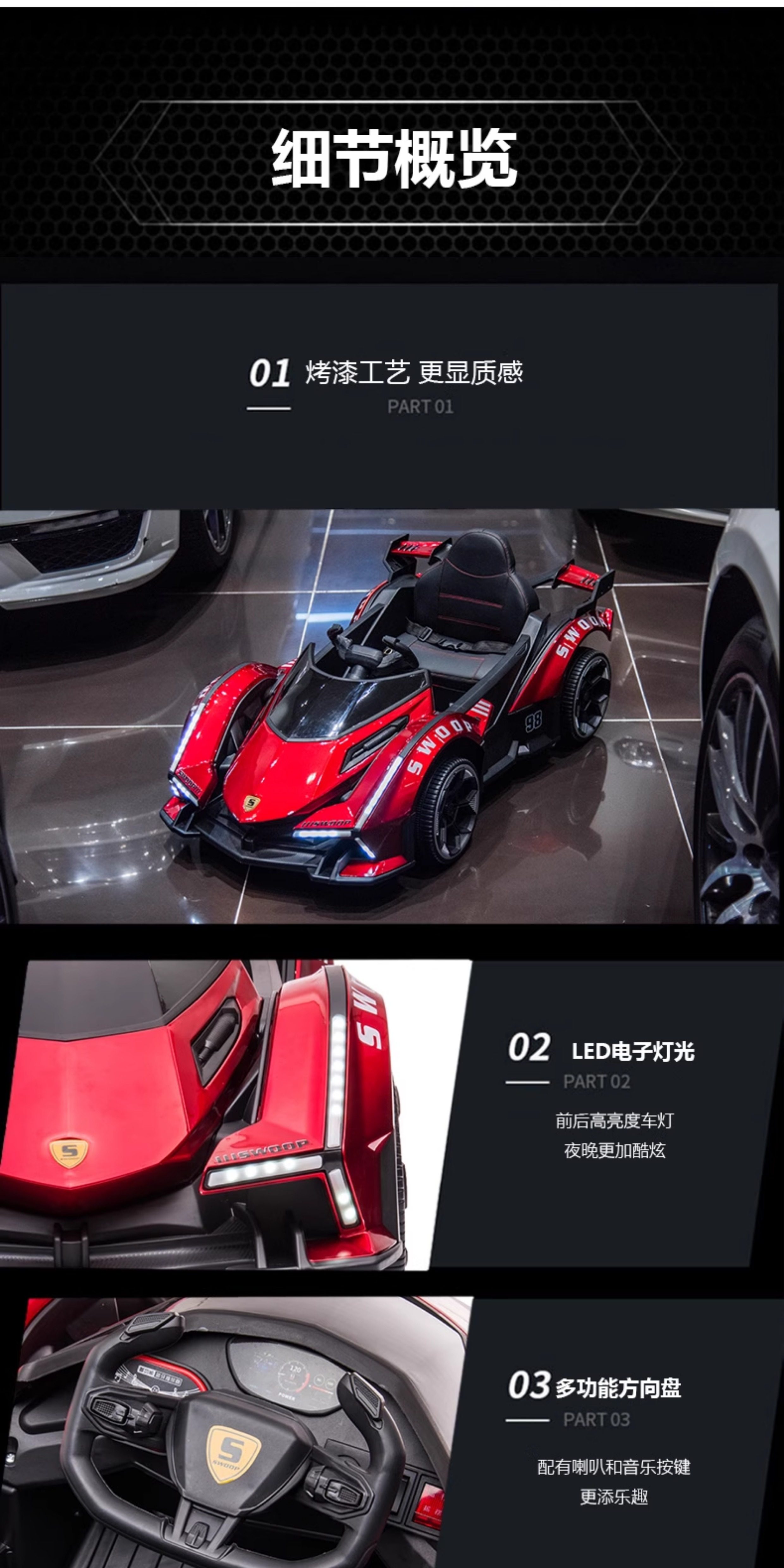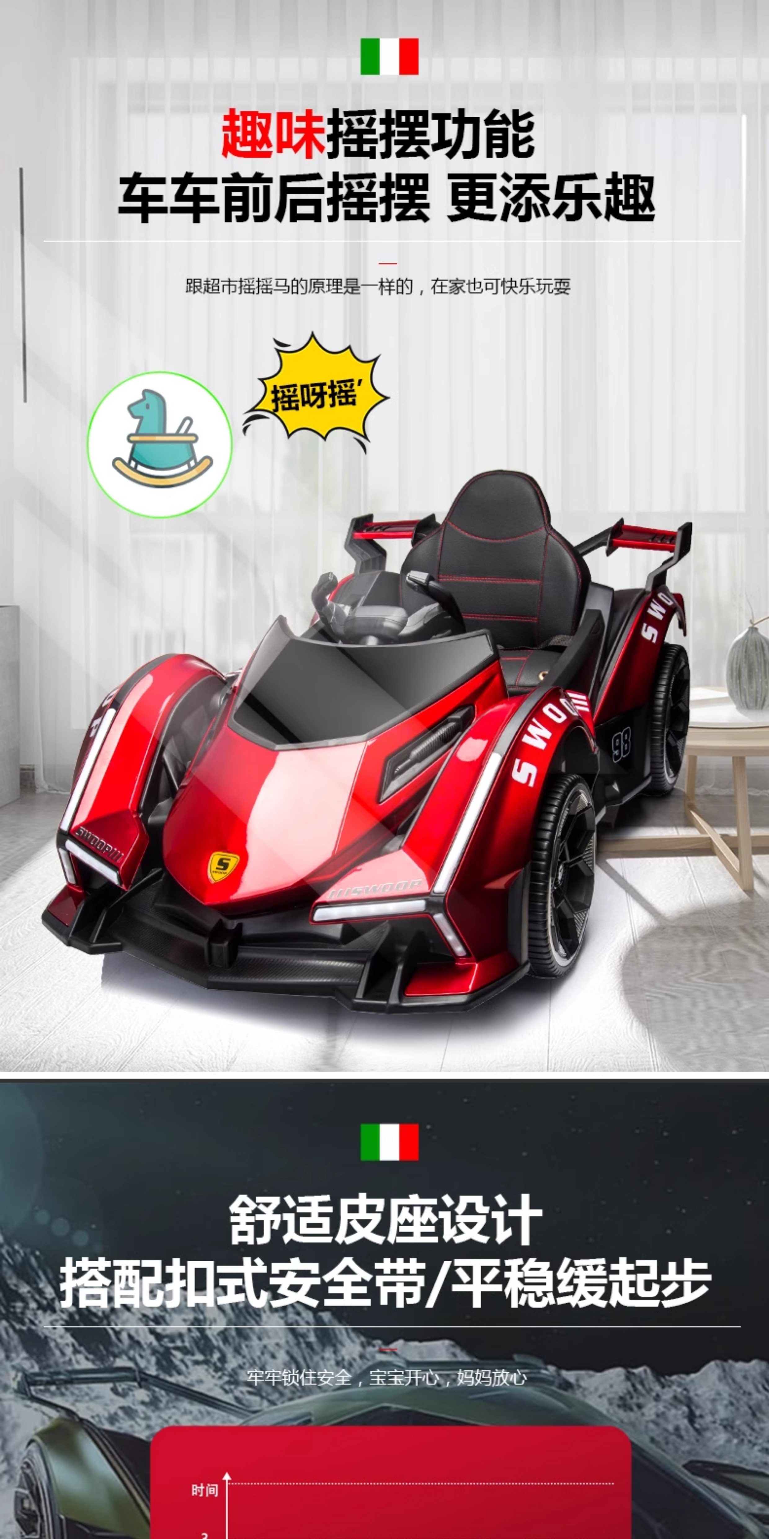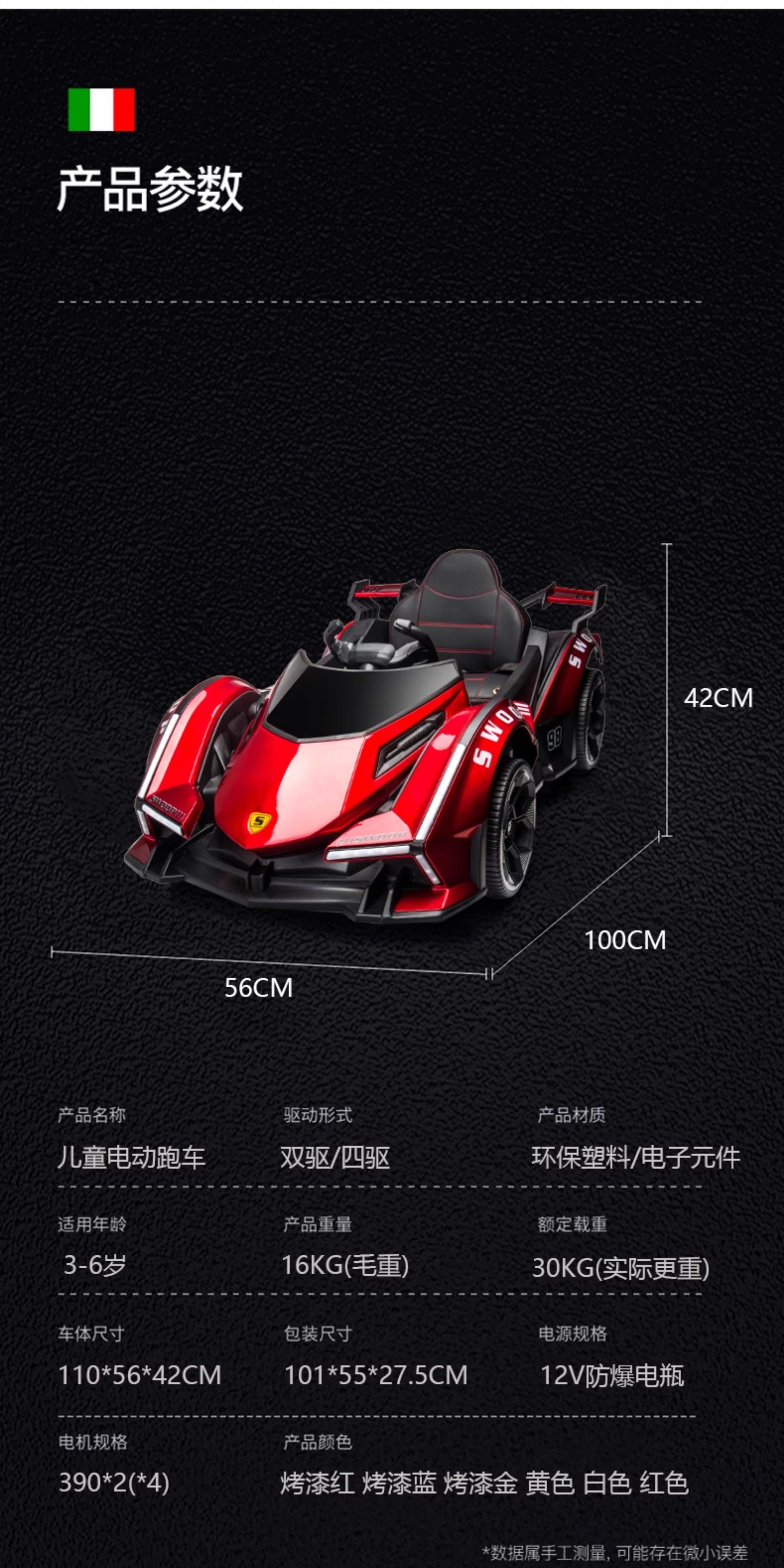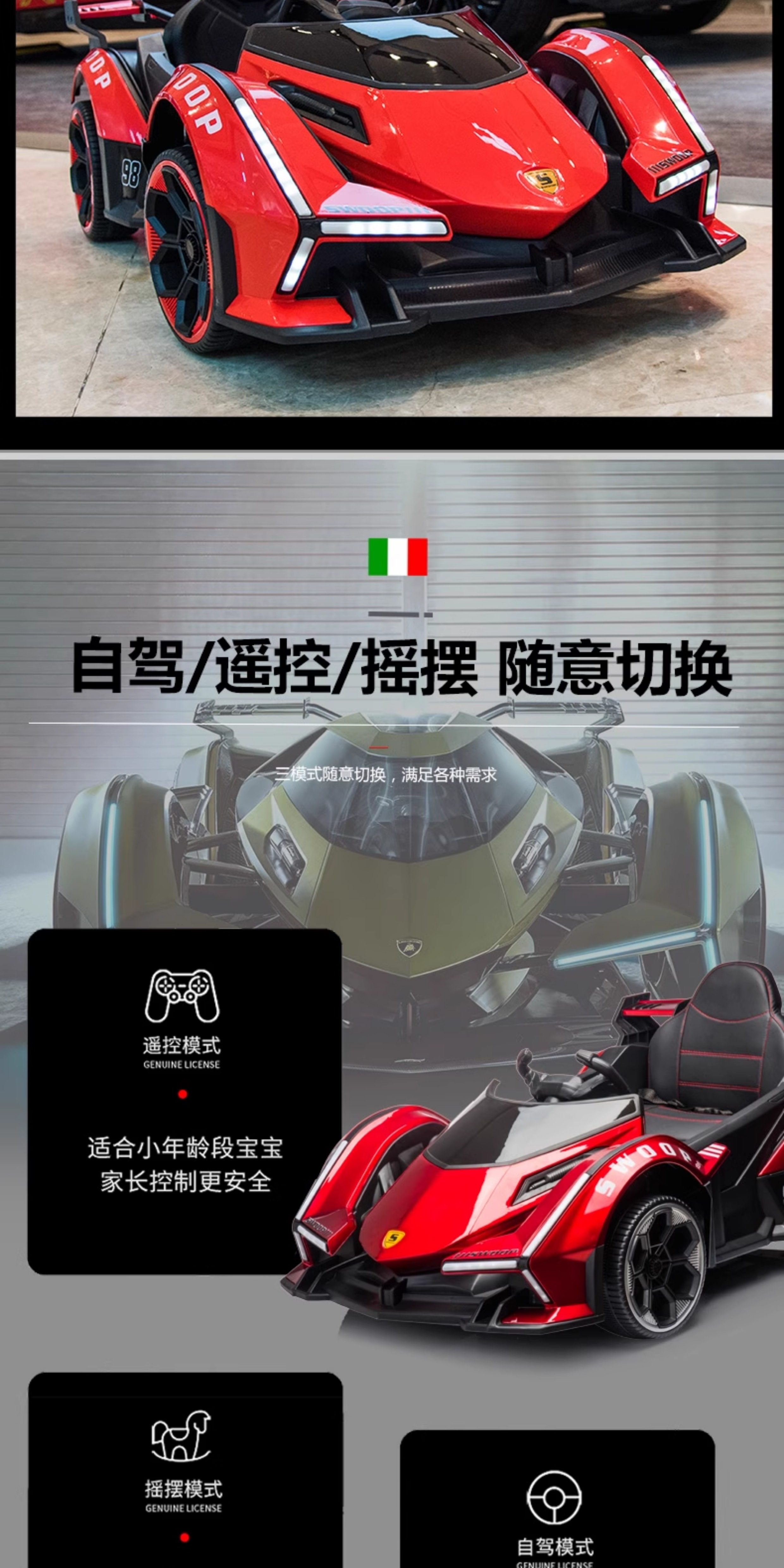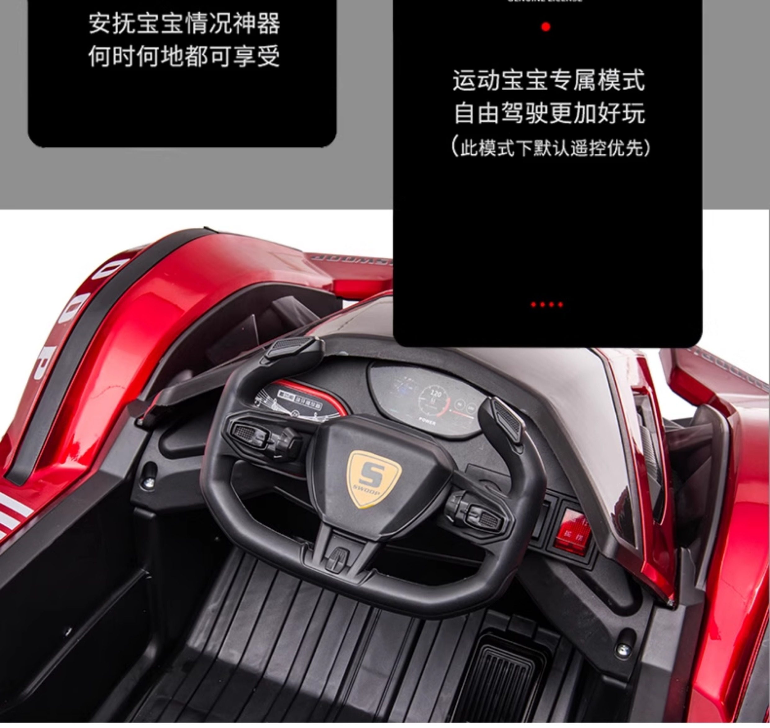 | Color Classification | [Painted Red] Four-Wheel Drive + 12V Large Battery + Remote Control Self-Driving + Swing + Bluetooth + Leather Seat.,【Painted Blue】Four-Wheel Drive + 12V High-Capacity Battery + Remote Control Self-Driving + Rocking Function + Bluetooth + Leather Seat,【Red】Four-Wheel Drive + 12V High-Capacity Battery + Remote Control Self-Driving + Rocking Function + Bluetooth + Leather Seat,【White】Four-Wheel Drive + 12V High-Capacity Battery + Remote Control Self-Driving + Rocking Function + Bluetooth + Leather Seat,【Yellow】Four-Wheel Drive + 12V High-Capacity Battery + Remote Control Self-Driving + Rocking Function + Bluetooth + Leather Seat,【Painted Red】Dual Drive + 12V Battery + Remote Control Self-Driving + Rocking Function + Bluetooth + Leather Seat,【Painted Blue】Dual Drive + 12V Battery + Remote Control Self-Driving + Rocking Function + Bluetooth + Leather Seat,【Red】Dual Drive + 12V Battery + Remote Control Self-Driving + Rocking Function + Bluetooth + Leather Seat,[White] Dual Drive + 12V Battery + Remote Control Self-Driving + Swing + Bluetooth + Leather Seat.,【Yellow】Dual Drive + 12V Battery + Remote Control Self-Driving + Rocking Function + Bluetooth + Leather Seat,[Red] Dual Drive + 12V Battery + Remote Control Self-Driving + Bluetooth + Hard Seat.,【White】Dual Drive + 12V Battery + Remote Control Self-Driving + Bluetooth + Hard Seat,【Yellow】Dual Drive + 12V Battery + Remote Control Self-Driving + Bluetooth + Hard Seat,[Red] Single Motor - Single Drive (No Remote Control) |