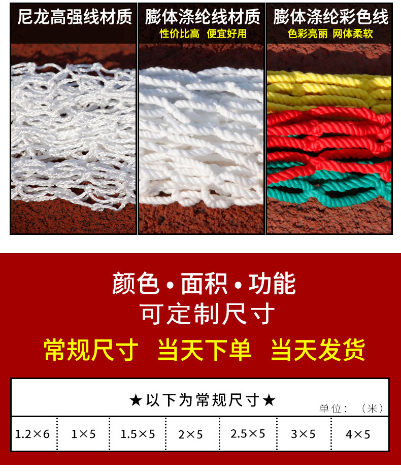 | Color Classification | 0.5m Wide and 6m Long [Protective Net],0.5m Wide and 8m Long [Protective Net],0.5m Wide and 10m Long [Protective Net],1m Wide and 3m Long [Protective Net],1m Wide and 4m Long [Protective Net],1m Wide and 5m Long [Protective Net],1m Wide and 6m Long [Protective Net],1m Wide and 7m Long [Protective Net],1m Wide and 8m Long [Protective Net],1m Wide and 9m Long [Protective Net],1m Wide 10m Long [Protective Net],1.2m Wide and 6m Long [Protective Net],1.2m Wide and 7m Long [Protective Net],1.2m Wide and 8m Long [Protective Net],1.2m Wide and 9m Long [Protective Net],1.2m Wide and 10m Long [Protective Net],1.5m Wide and 3m Long [Protective Net],1.5m Wide and 4m Long [Protective Net],1.5m Wide and 5m Long [Protective Net],1.5m Wide and 6m Long [Protective Net],1.5m Wide and 7m Long [Protective Net],1.5m Wide and 8m Long [Protective Net],1.5m Wide and 9m Long [Protective Net],1.5m Wide and 10m Long [Protective Net],2.5m Wide and 6m Long [Protective Net],2m Wide 2m Long [Protective Net],2m Wide and 3m Long [Protective Net],2m Wide and 4m Long [Protective Net],2m Wide and 5m Long [Protective Net],2m Wide and 6m Long [Protective Net],For a Width of 8m, Order the Corresponding Number of Units for the Length in Meters You Need. [Protective Netting],2m Wide and 7m Long [Protective Net],2m Wide and 8m Long [Protective Net],2m Wide and 9m Long [Protective Net],2m Wide 10m Long [Protective Net],3m Wide 3m Long [Protective Net],3m Wide and 4m Long [Protective Net],3m Wide and 5m Long [Protective Net],3m Wide and 6m Long [Protective Net],3m Wide and 7m Long [Protective Net],3m Wide and 8m Long [Protective Net],3m Wide and 9m Long [Protective Net],3m Wide 10m Long [Protective Net],4m Wide 4m Long [Protective Net],4m Wide and 5m Long [Protective Net],4m Wide and 6m Long [Protective Net],4m Wide and 7m Long [Protective Net],4m Wide and 8m Long [Protective Net],4m Wide and 9m Long [Protective Net],4m Wide 10m Long [Protective Net],5m Wide 5m Long [Protective Net],5m Wide and 6m Long [Protective Net],5m Wide and 7m Long [Protective Net],5m Wide and 8m Long [Protective Net],5m Wide and 9m Long [Protective Net],6m Wide 6m Long [Protective Net],6m Wide and 7m Long [Protective Net],6m Wide and 8m Long [Protective Net],For a Width of 7m, Order the Corresponding Number of Units for the Length in Meters You Need. [Protective Netting],For a Width of 9m, Order the Corresponding Number of Units for the Length in Meters You Need. [Protective Netting],For a Width of 10m, Order the Corresponding Number of Units for the Length in Meters You Need. [Protective Netting],Customized Size Factory Direct Sales [Protective Net],3*6 National Standard Security Net 8cm Mesh |