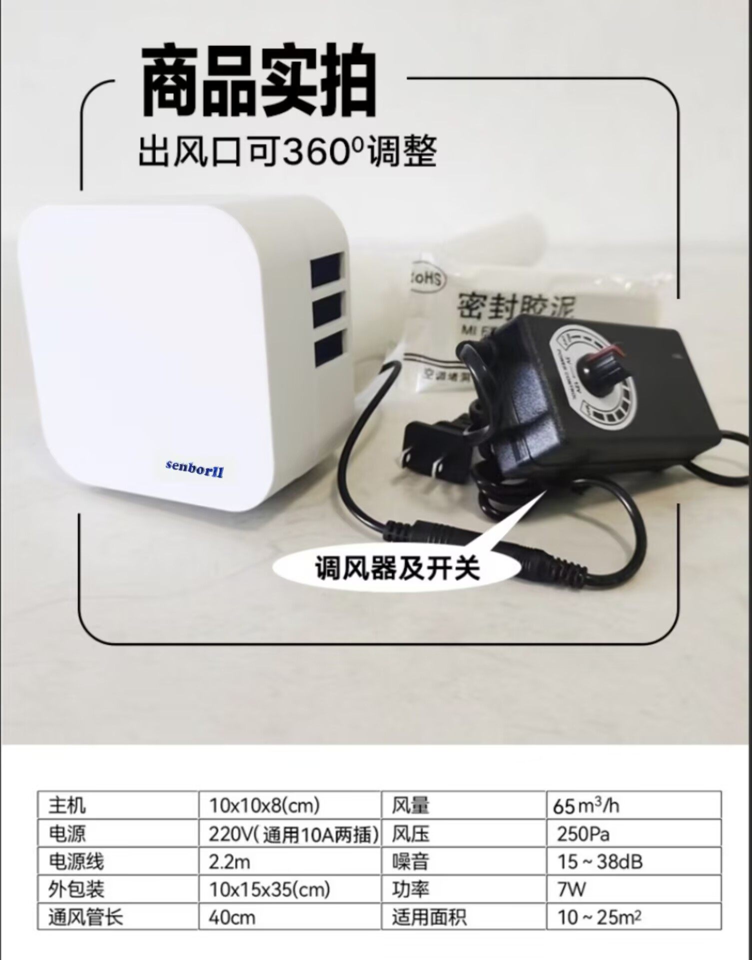 No-Drill Air Conditioning Hole Fresh Air Fan for Bedroom Ventilation, Air Purifier, Oxygenation, Formaldehyde Removal, Odor Removal, Practical