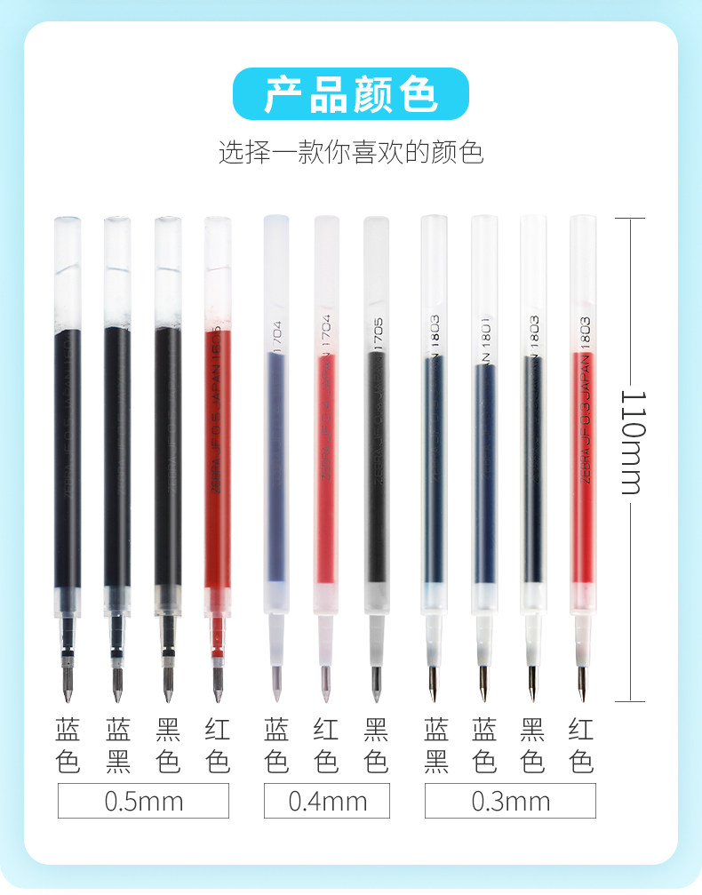 Free Original Pen Japanese Zebra Pen Refill Quick-Drying Retractable Gel Pen Refill Non-Smudge Mjf/Jlv/Jf-0.5 Black Student Use Jj15 Retro Pen Jj77 Bullet Tip Replacement Refill