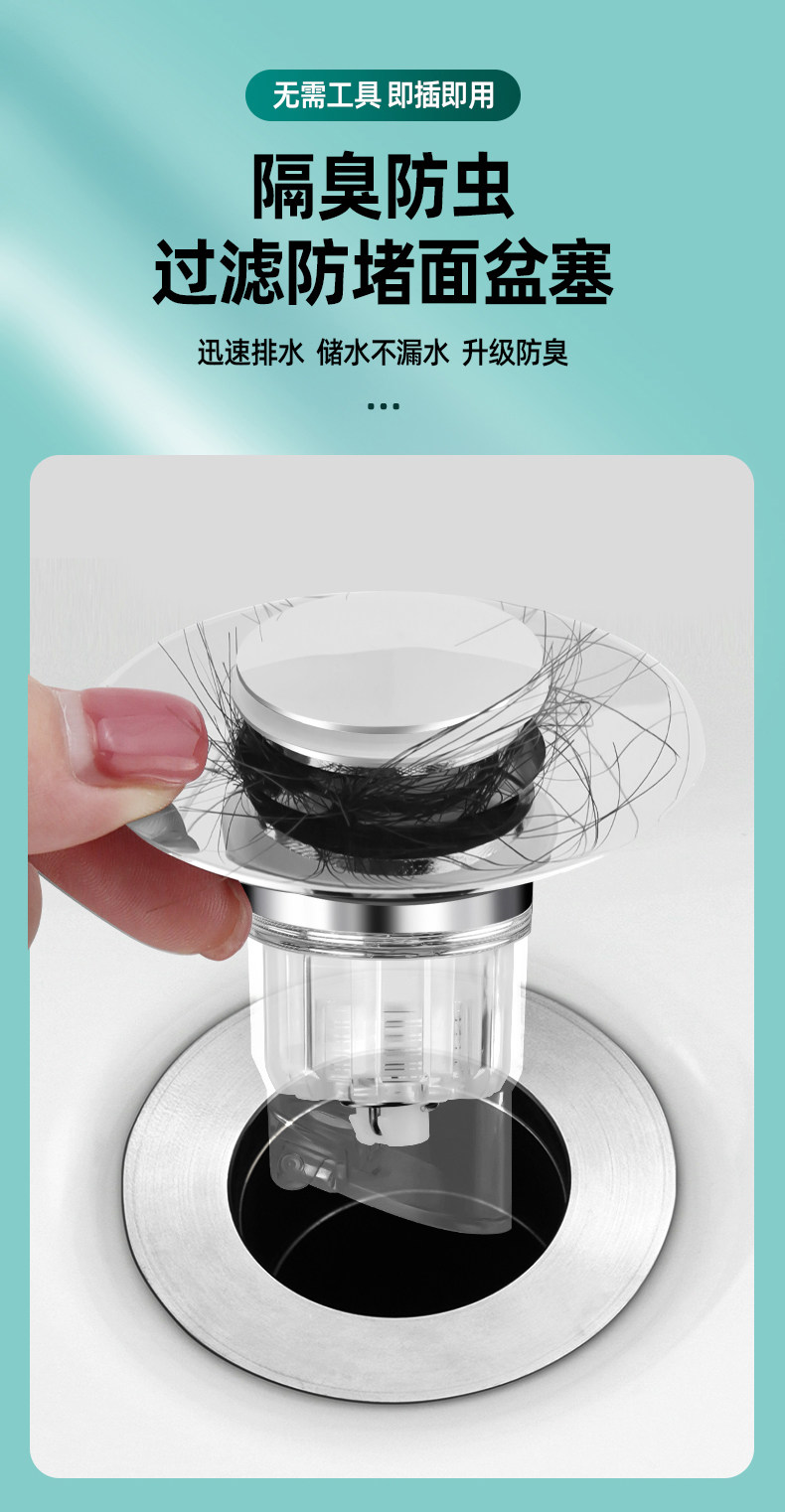 Washbasin Leak Plug Filter Push-Type Pool Pop-Up Tank Bathtub Drain Plug Wash Basin Plug Hole Accessories