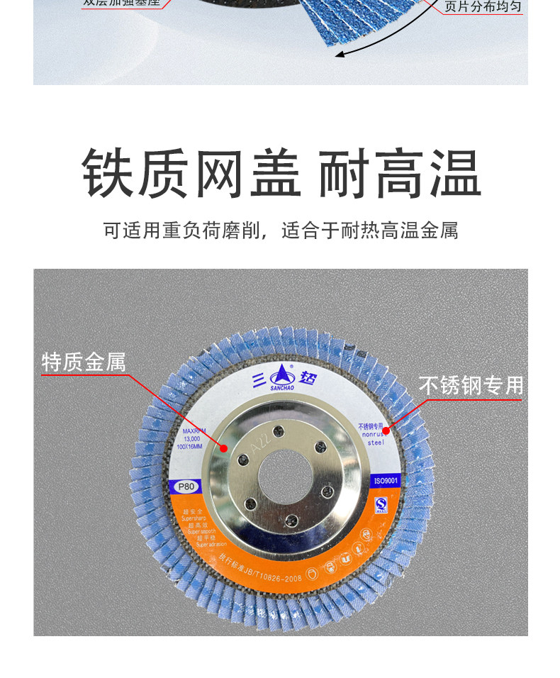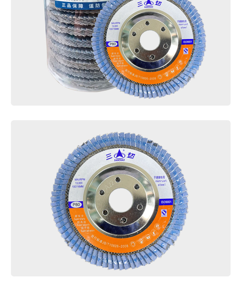 Genuine San Chao Polishing Disc for Polishing Stainless Steel Metal, Thickened Sanding Cloth Wheel for Angle Grinder, Polishing Flap Disc 100*16