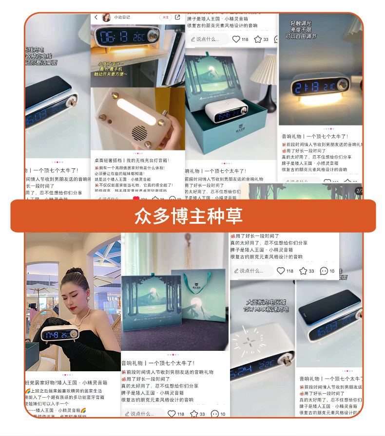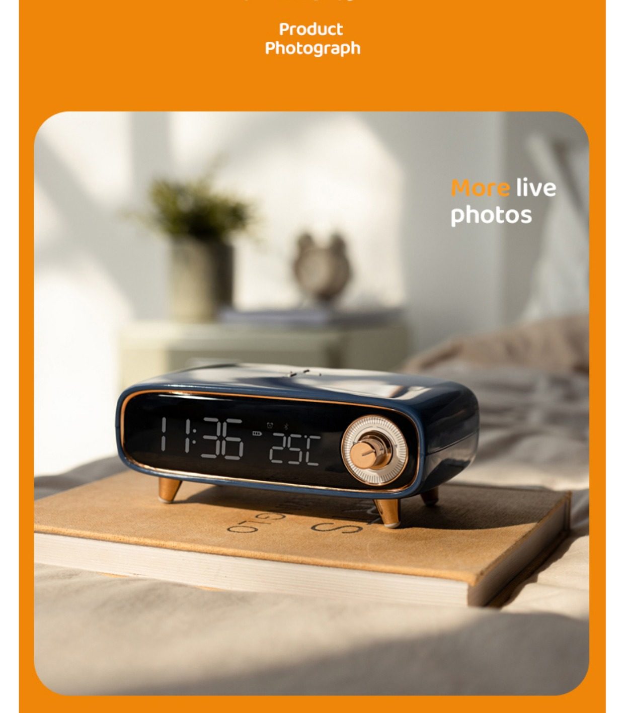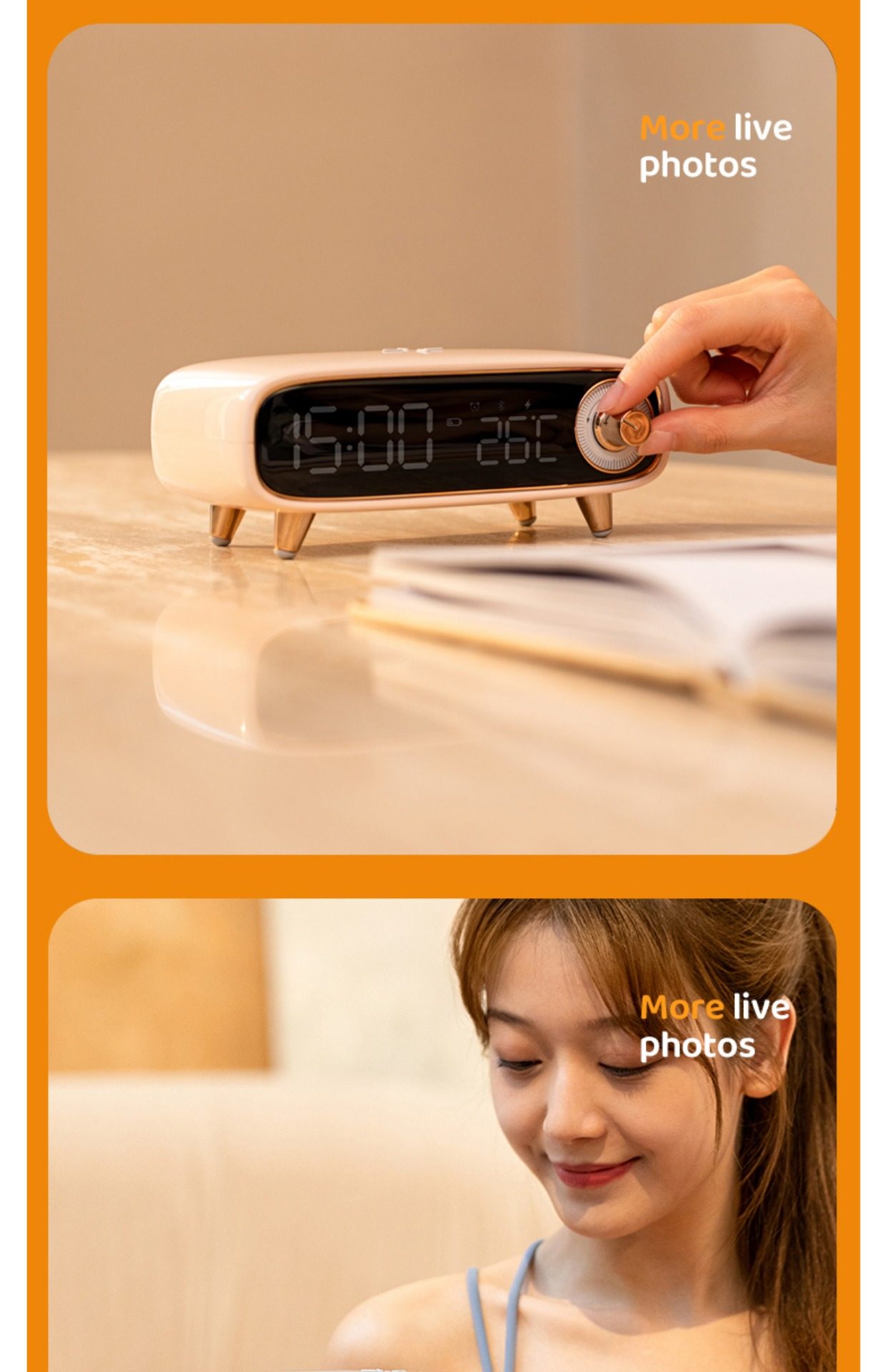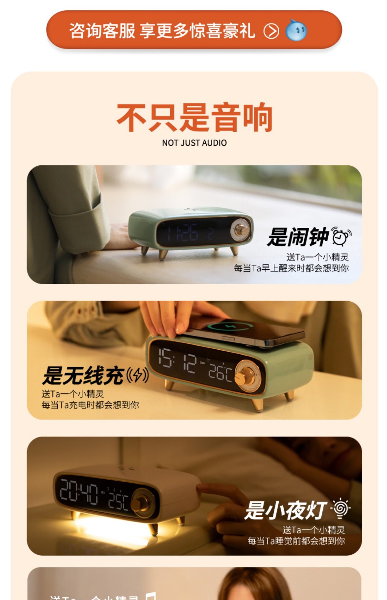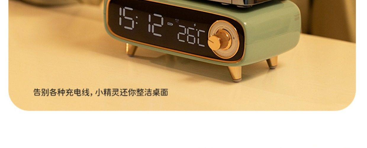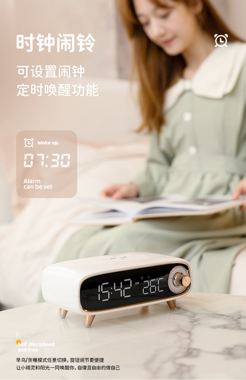 2024 New Smart Bedside Desktop Bluetooth Speaker Alarm Clock Mobile Phone Wireless Charging Small Speaker Night Light