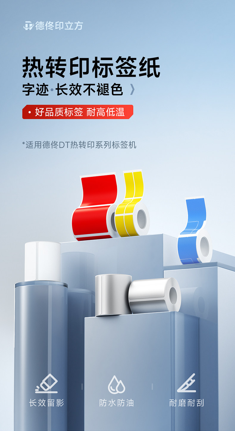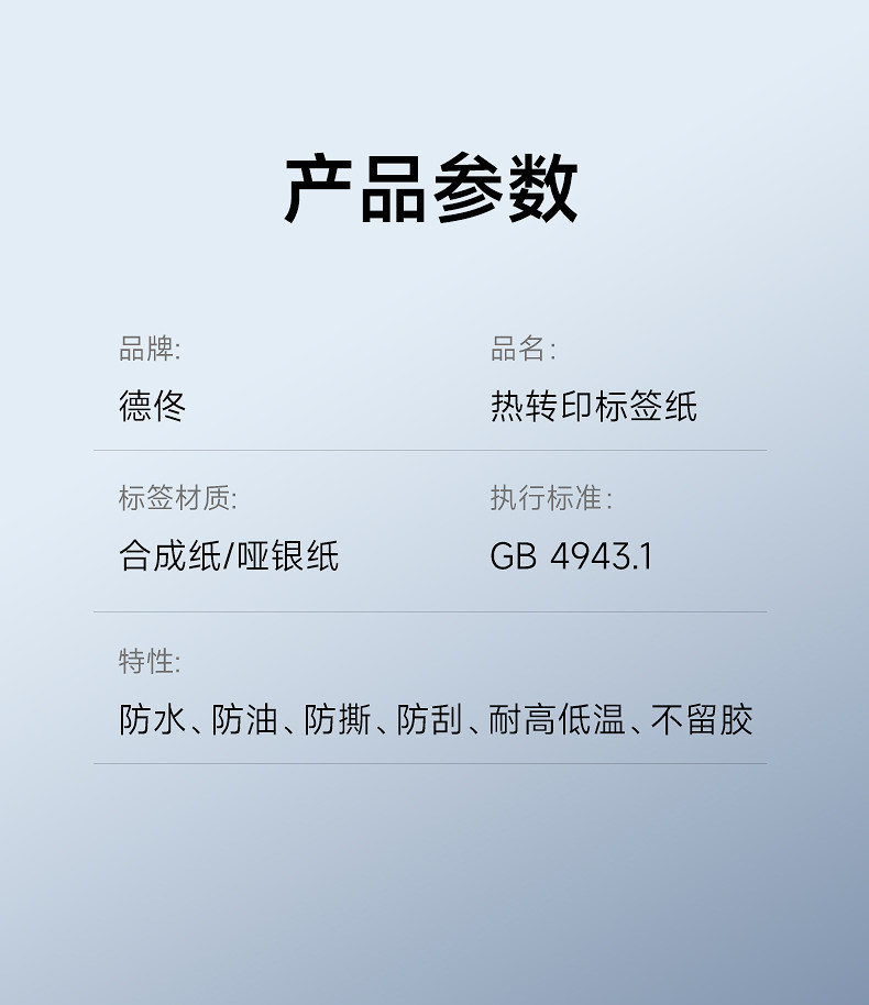 De Tong Yin Cube Dt270/280 Matte Silver Paper Fixed Asset Flatbed Equipment Silver Label Paper Thermal Transfer Waterproof Pet Silver-White Adhesive Label Sticker Colorful Barcode Printing Paper