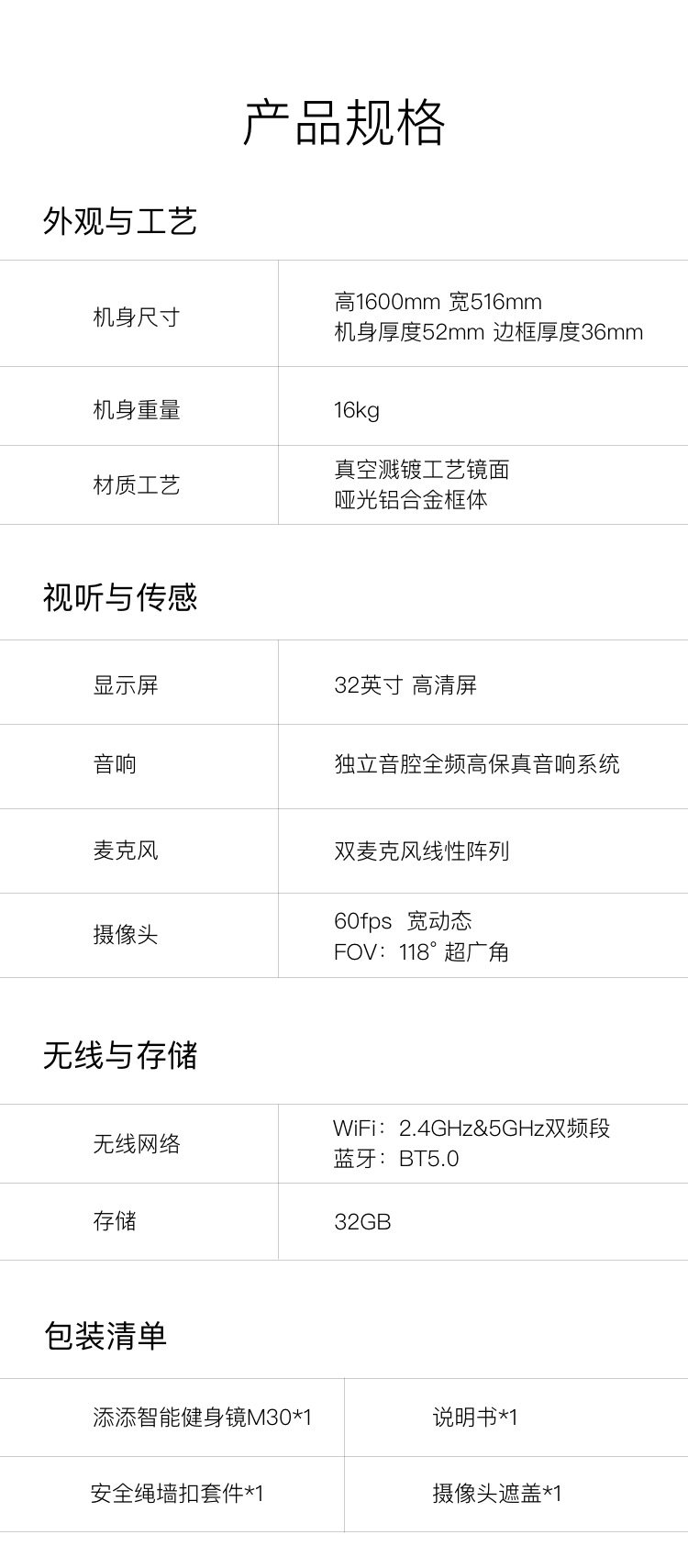 | Item Number | Fitness Mirror M30 |